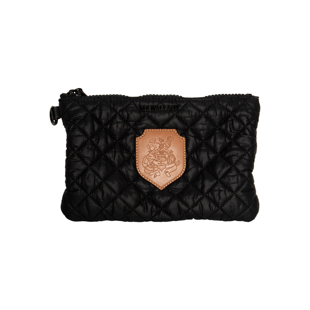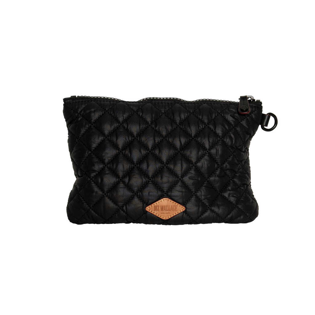 MZ Wallace Quilted Pouch features zip closure, purple lining on inside, inside zip pocket.
