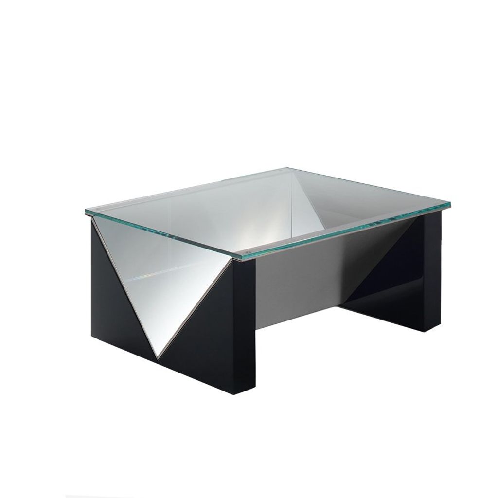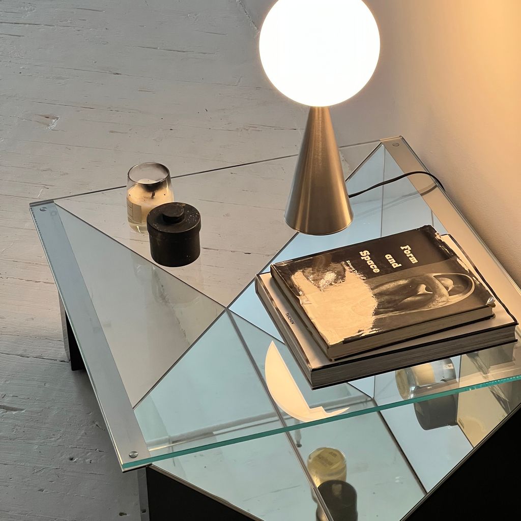 At the 15th Milan Triennale in 1973, Claudio Salocchi launched the Napoleone family of tables, coffee tables and display units, an extremely synthetic interpretation of geometries combined with materials that were anything but usual for traditional home furnishings at that time. The fascinating effects of reflections and transparencies allows those sitting down to see their own image, with interesting ‘introspective’ implications. The current re-edition respects the original design and keeps its aesthetic appearance unchanged in two coffee tables from the Napoleone system enhanced by distinctive polyester lacquering.