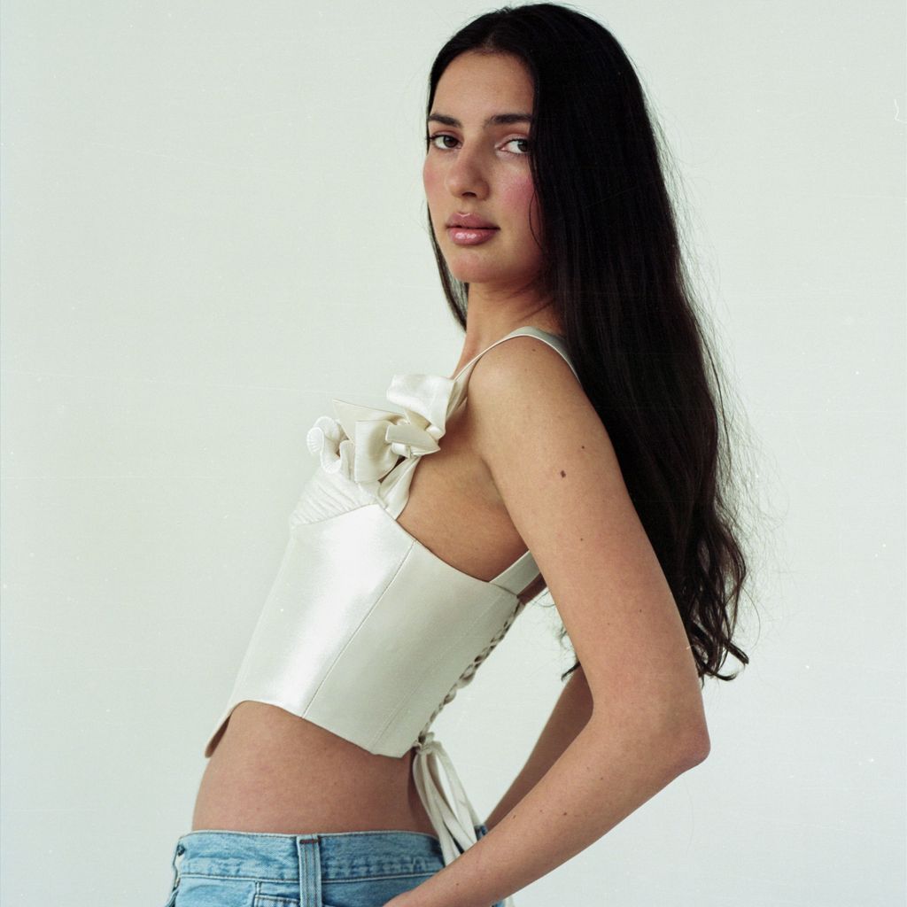 Permium silk/wool blend, silk velvet and chiffon fabric. Professional dry clean only. Made in Italy.