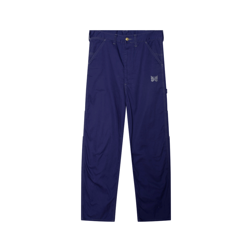 Needles Purple Carpenter Pants features front zip closure, 7 pocket styling, buckle detail on back, and silver embroidered butterfly design on left leg.