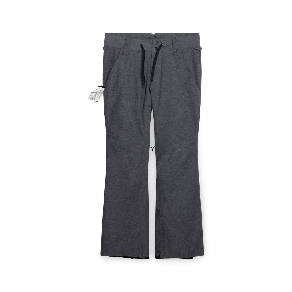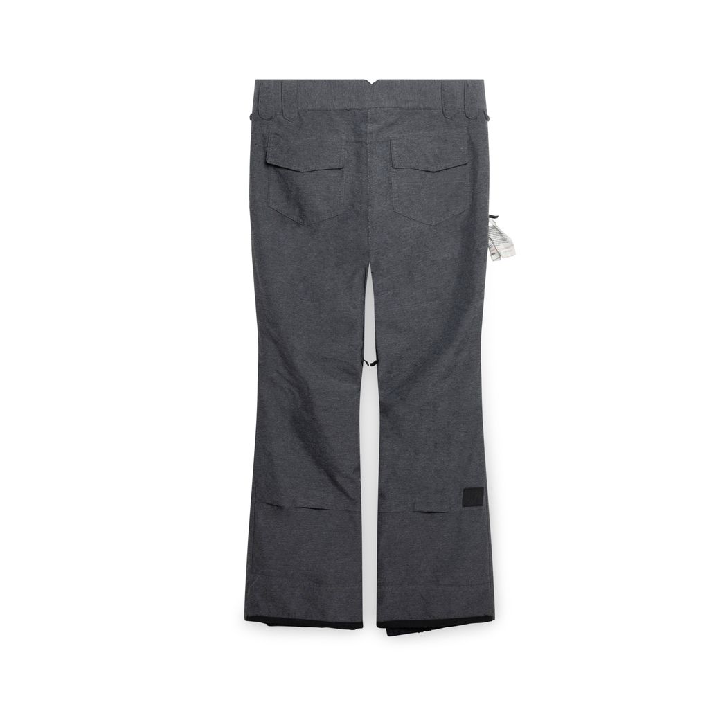 Neff Grey Ski Pants features front zip closure with drawstring waistband, zippered pockets, zippers along inner legs, and flared fit.