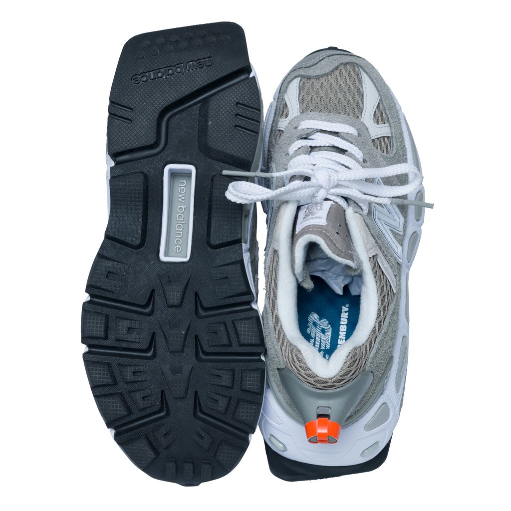 New Balance 574 Yurt x Salehe Bembury features plush suede interlays, chunky soles, and a whistle attached to the back ankle.