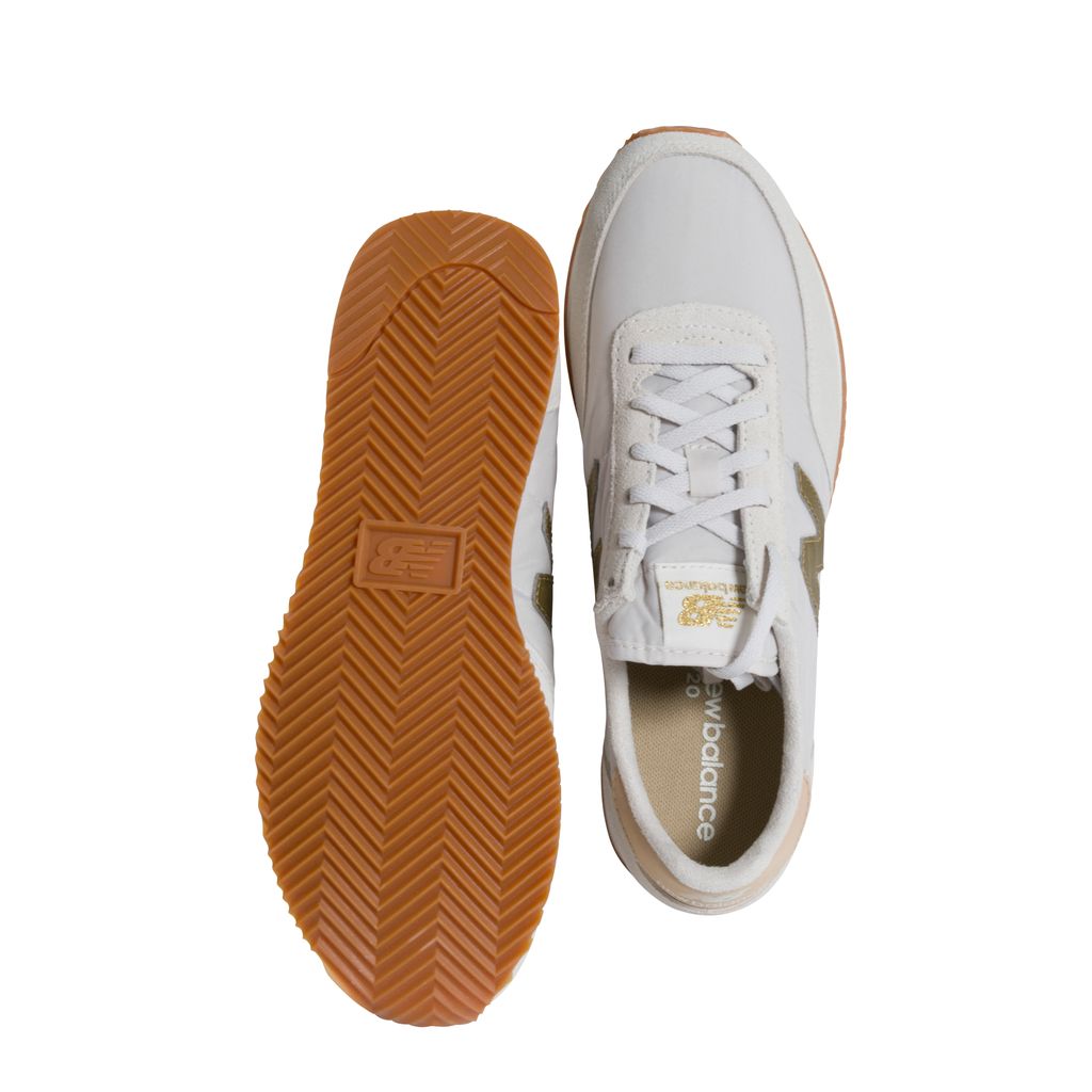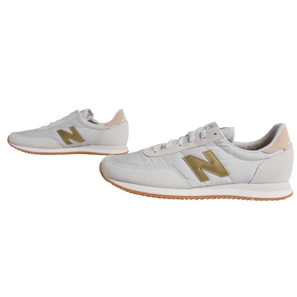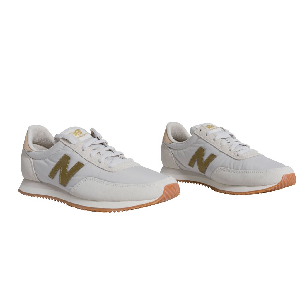 The 720 Sneaker from New Balance is designed with a retro, low profile silhouette with suede and nylon uppers. Finished with eye-catching gold N logo and tongue embroidery. Gently worn, in good condition.