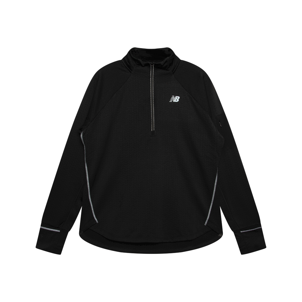 New Balance Heat Half Zip Fleece features half zip closure, turtleneck collar,