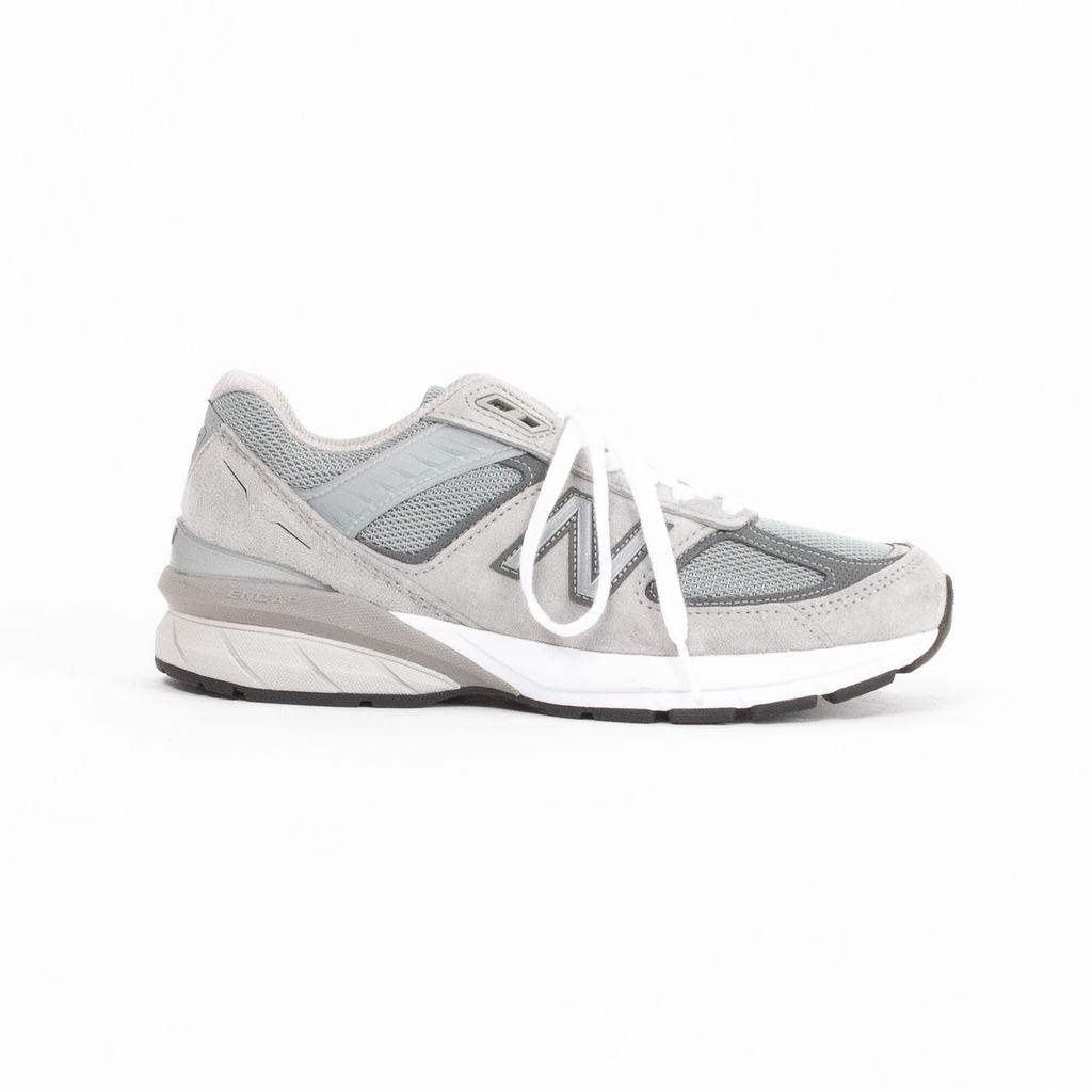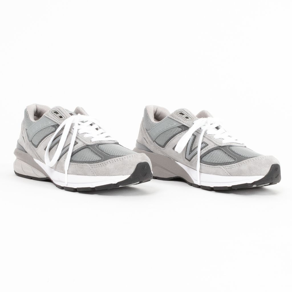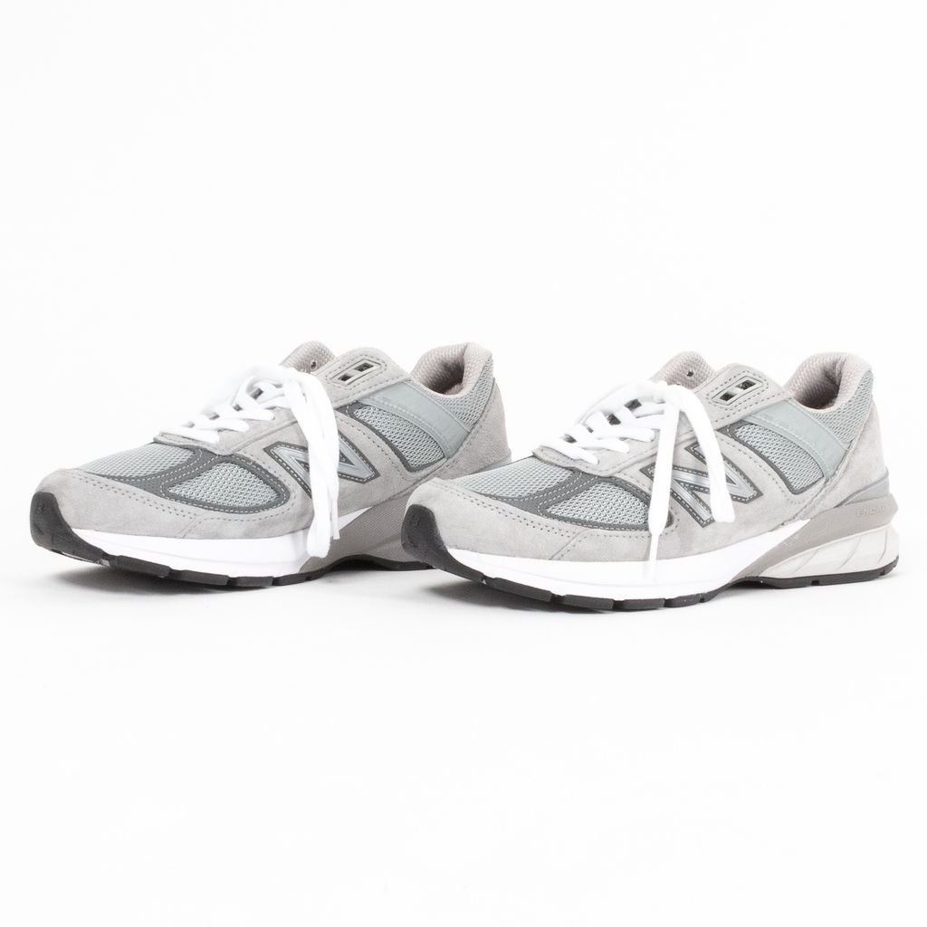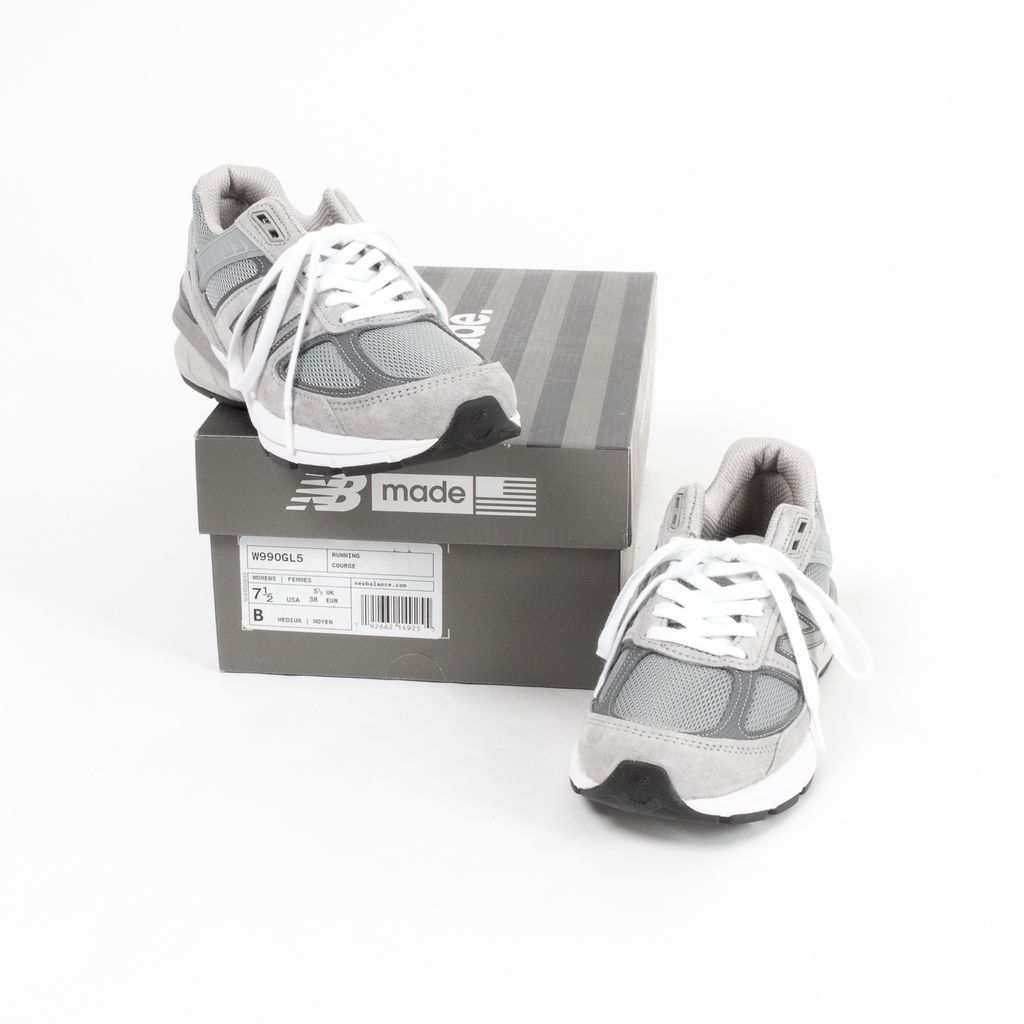 Maybe the most versatile sneaker in fashion history, these pair of 990v5 sneakers are made in the US by New Balance and are designed to be athletic with a fashionable edge. Features mesh and leather body fabrication, tricolor New Balance N logo on shoe sides, contrast color padded neck, and Made in US 990v5 branding on shoe heel and tongue.