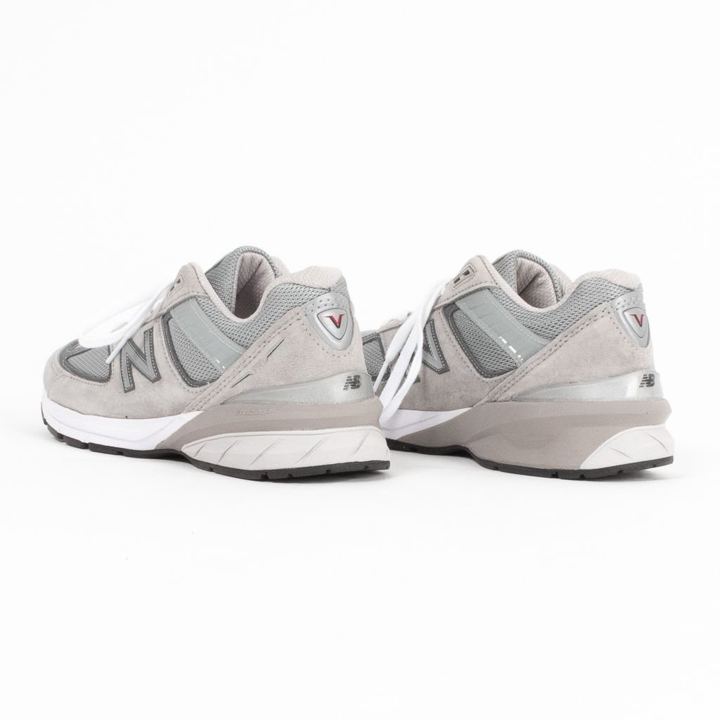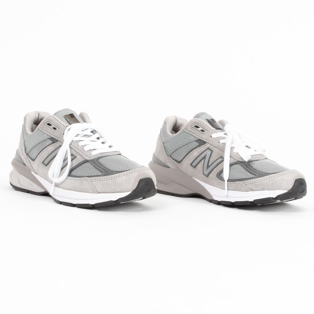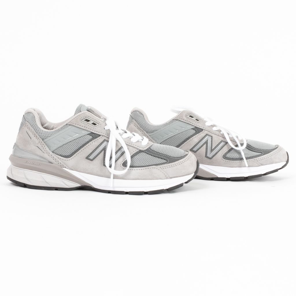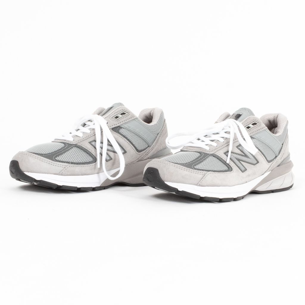 Maybe the most versatile sneaker in fashion history, these pair of 990v5 sneakers are made in the US by New Balance and are designed to be athletic with a fashionable edge. Features mesh and leather body fabrication, tricolor New Balance N logo on shoe sides, contrast color padded neck, and Made in US 990v5 branding on shoe heel and tongue.