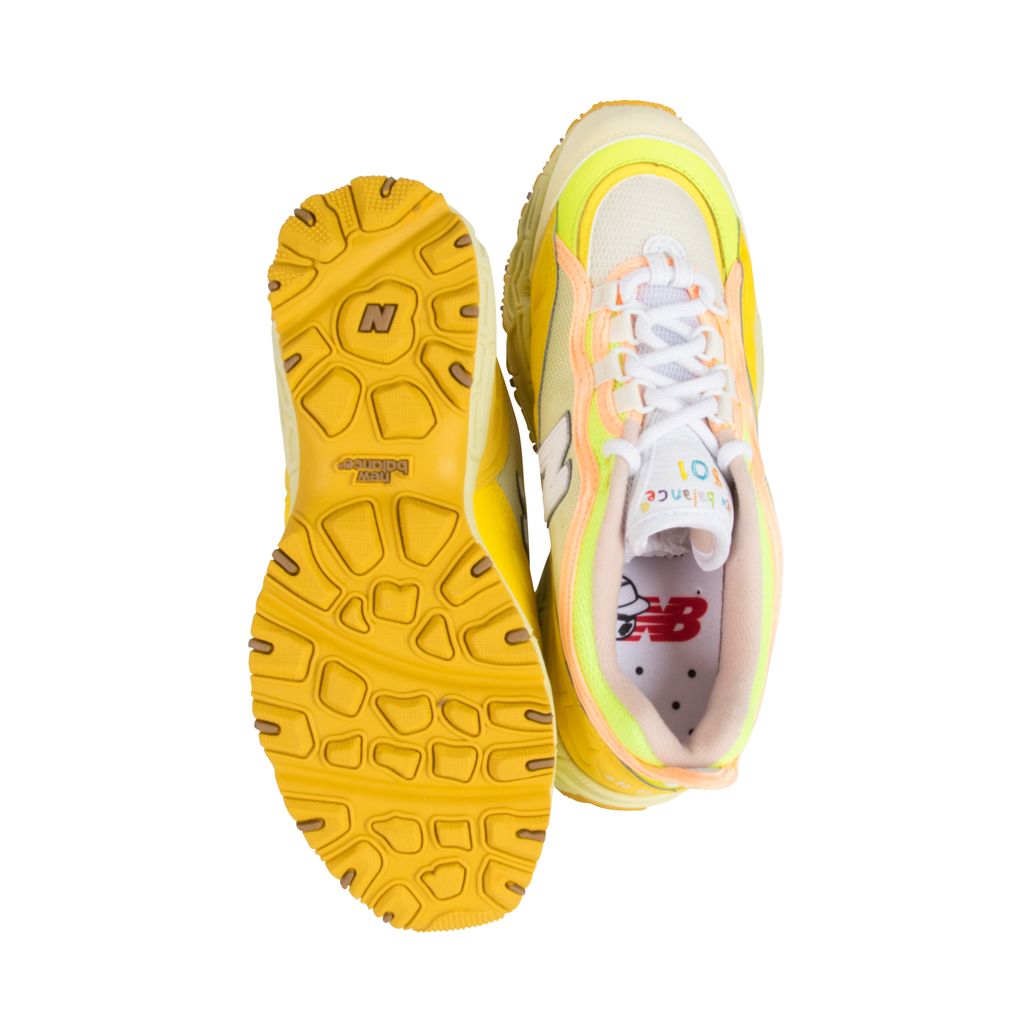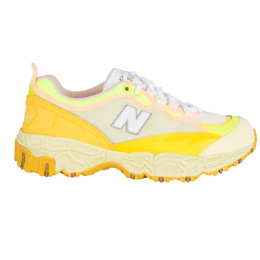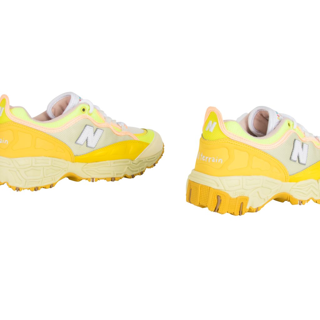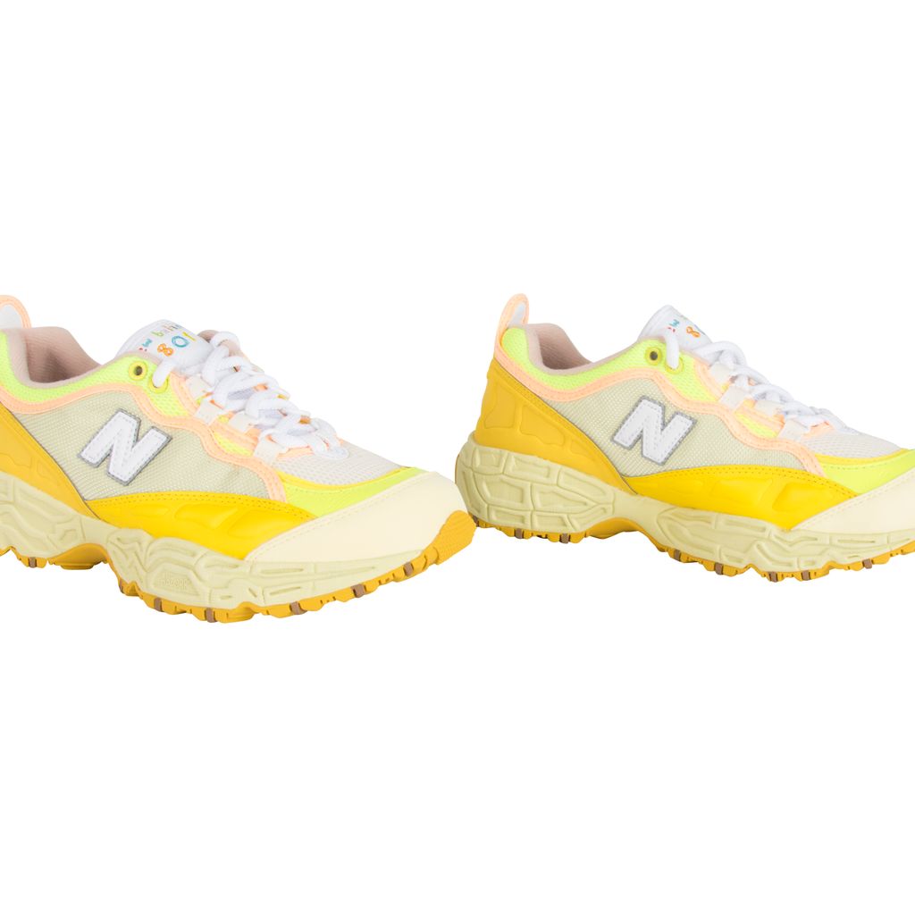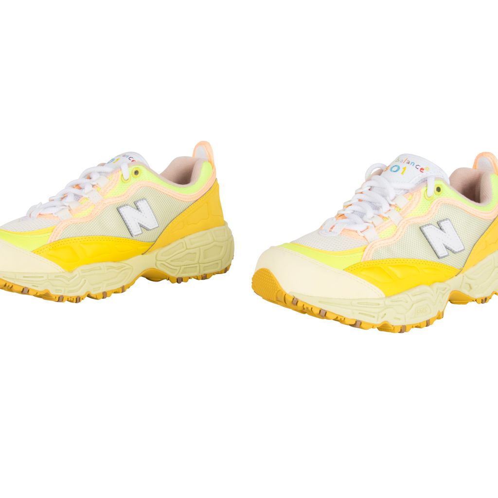 These New Balance Paperboy 801 sneakers in Ginger Lemonade feature a fluorescent upper with a mix of yellow and orange hues with a mustard yellow rubber sole. In excellent condition, no signs of wear.