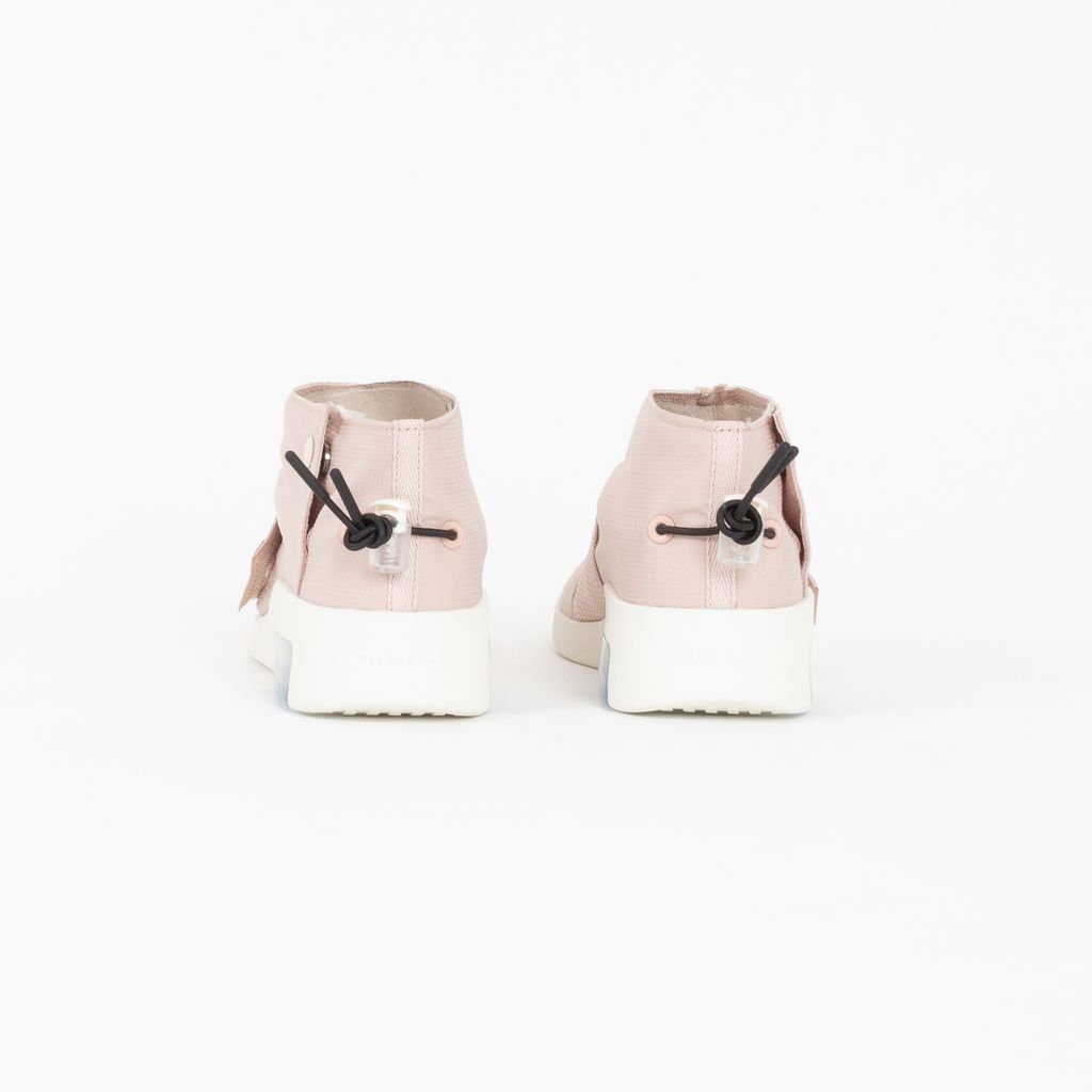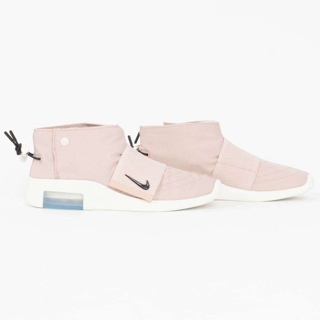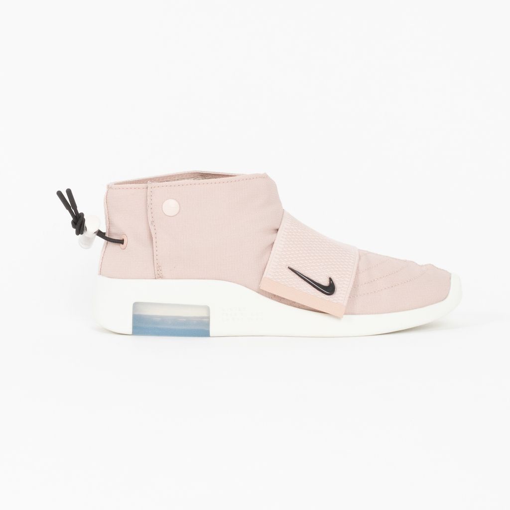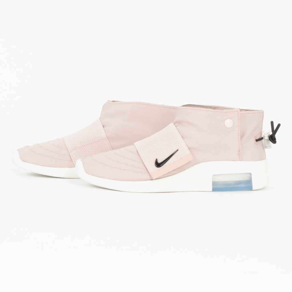 A super unique piece from Nike designed by luxury basic titans Fear of God, these shoes are a hybrid that combines the bodies of both a sneaker and a moccasin. Features tonal seaming on toe box, knit top strap with velcro closure and enamel Nike swoosh logo, snap closure on side, contrast colored sole with collaboration text transparent panel, and adjustable cord lock toggle at heel.