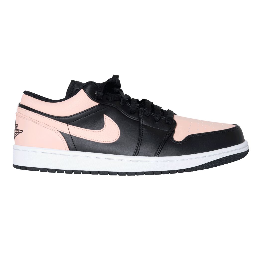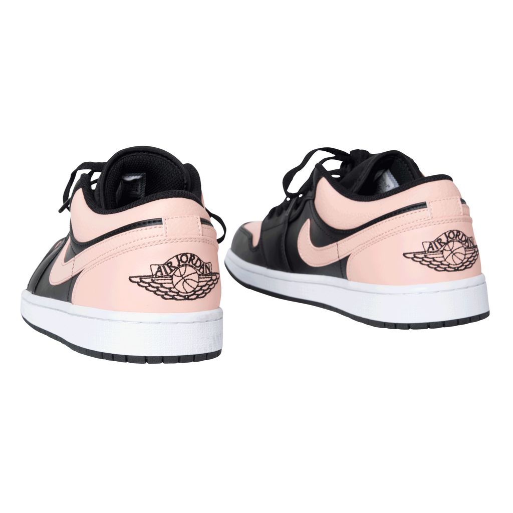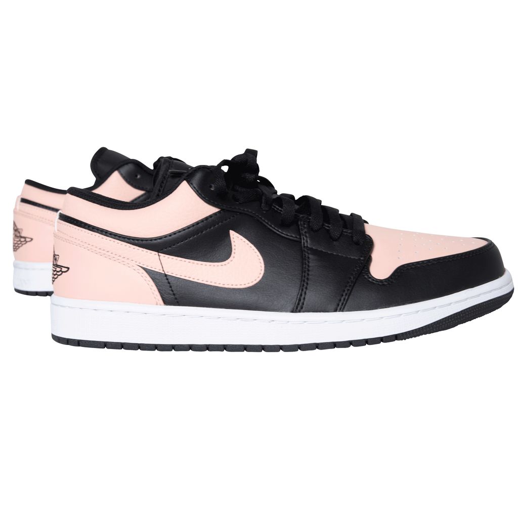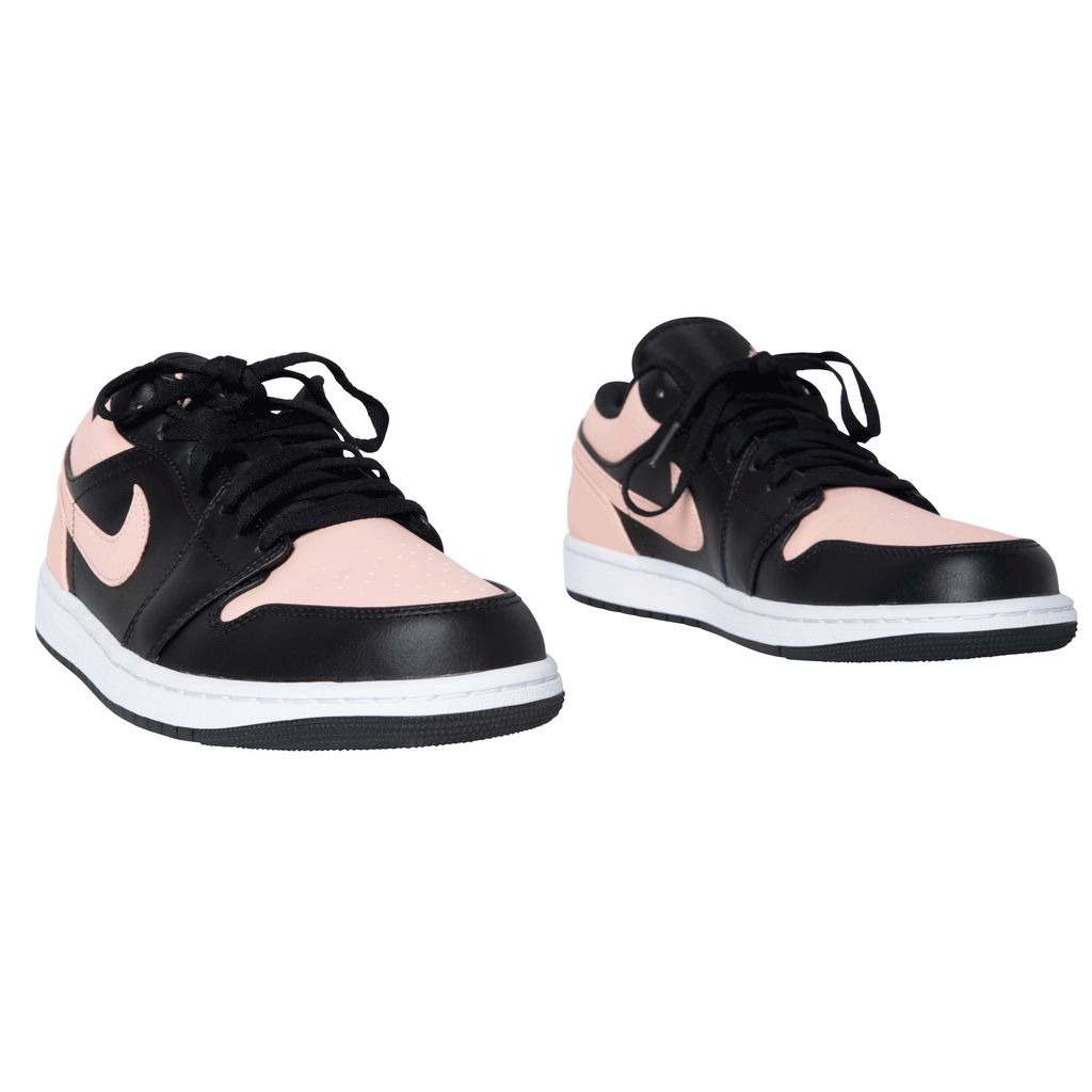Nike Air Jordan 1 low-top leather sneakers feature black and light pink coloring, Mens Size 11.