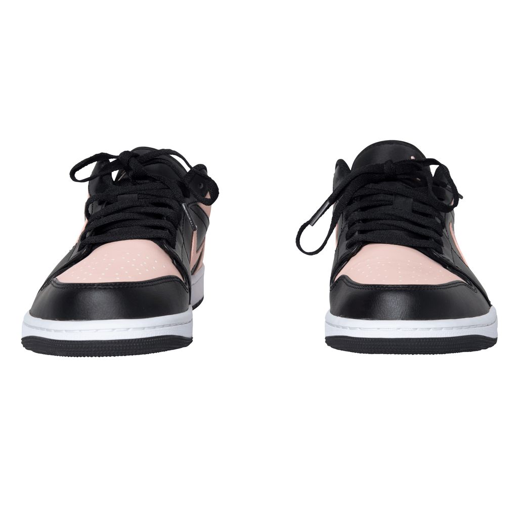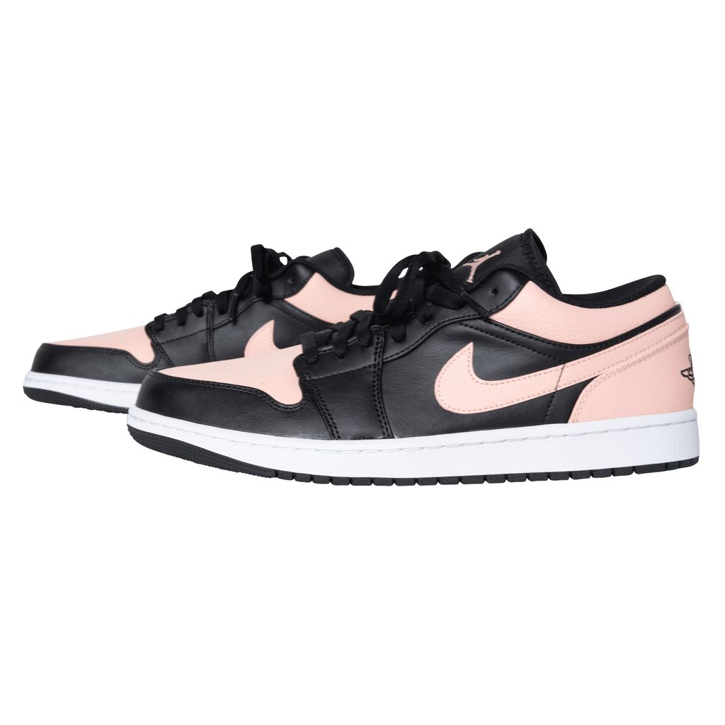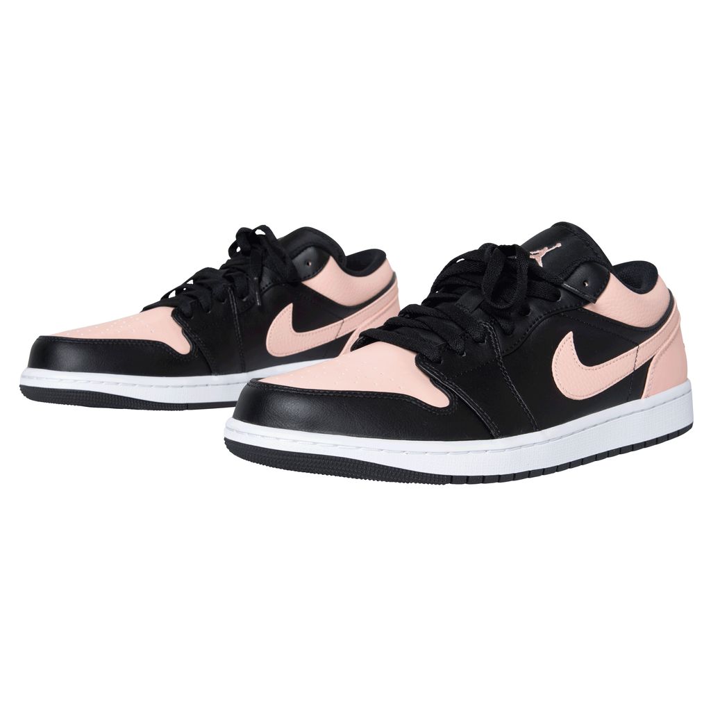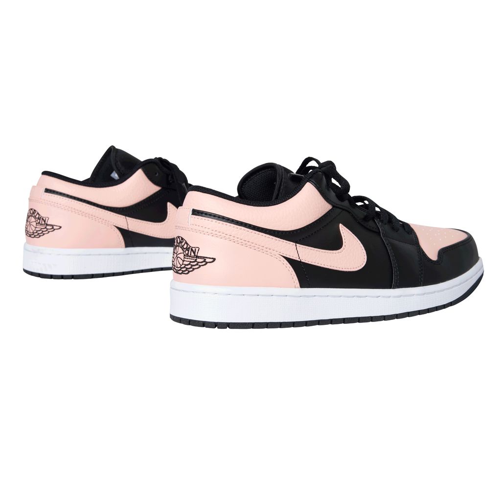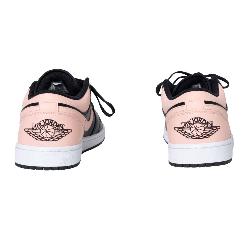 Nike Air Jordan 1 low-top leather sneakers feature black and light pink coloring, Mens Size 11.