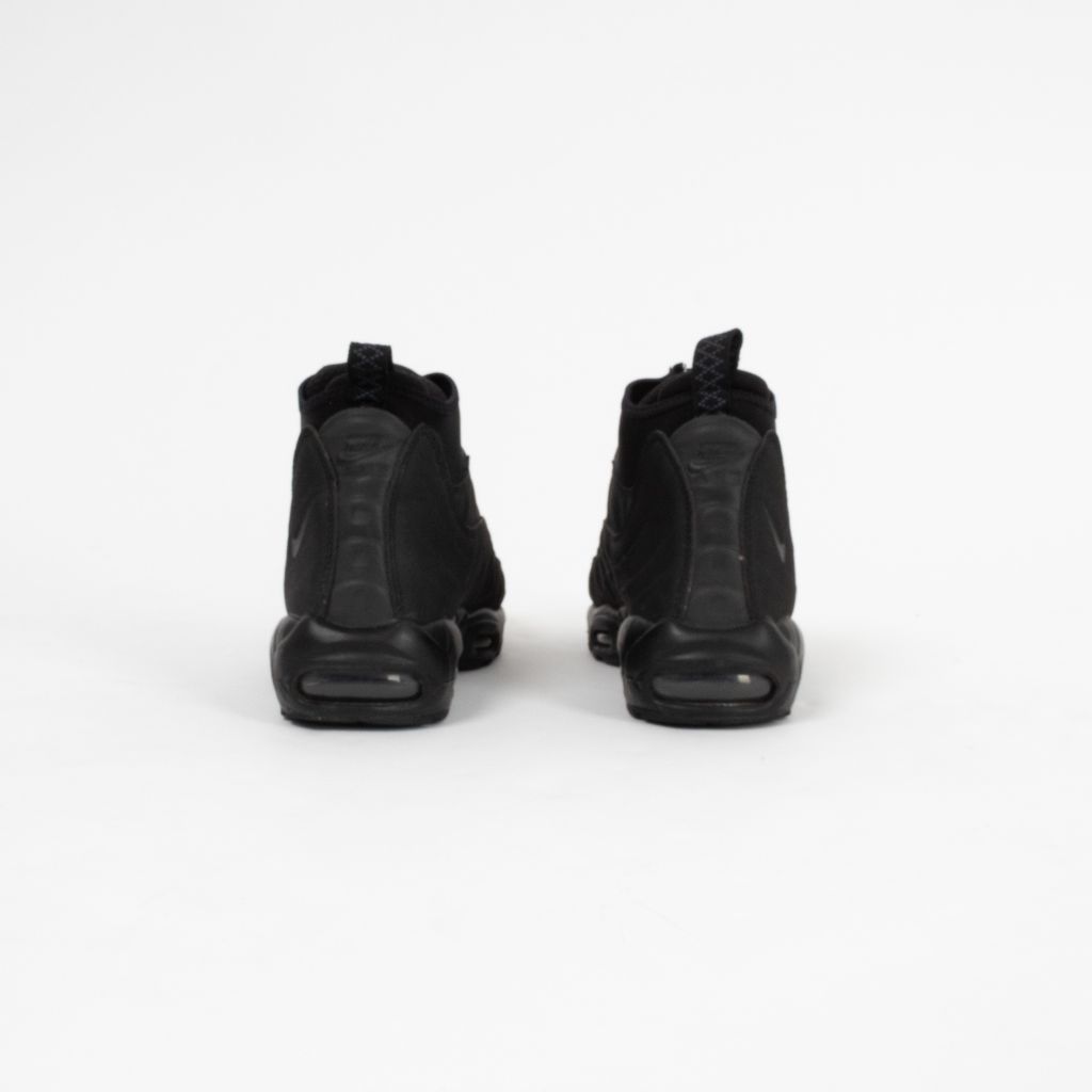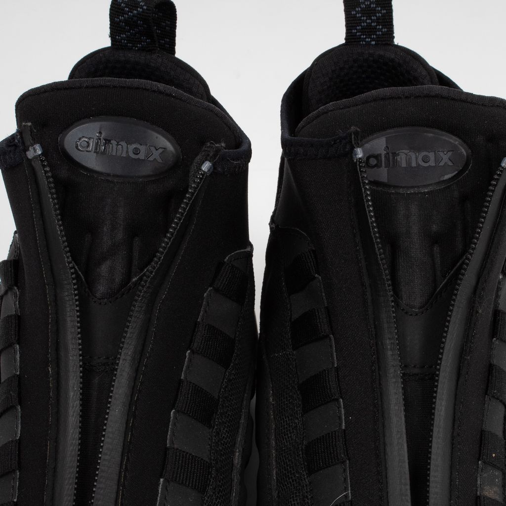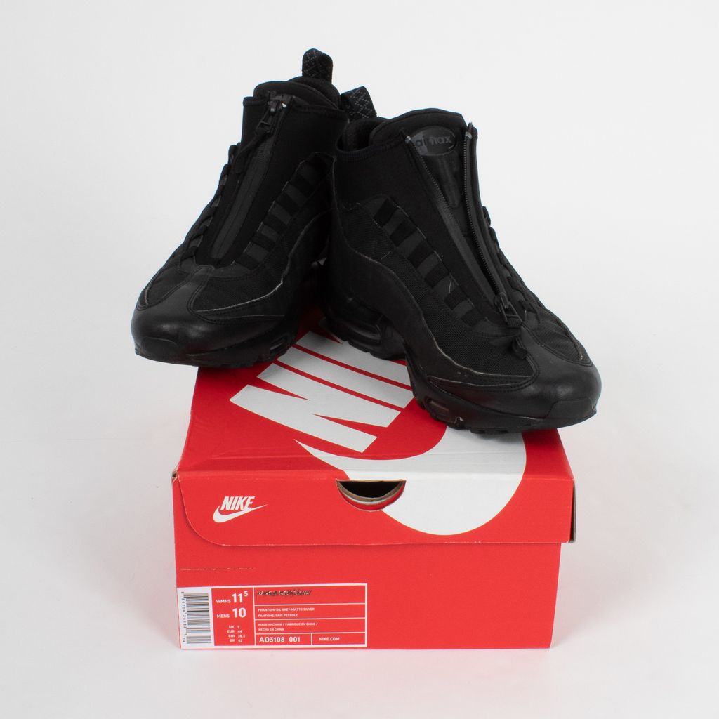 A unique hybrid shoe, the Nike Air Max 95 Tech will have you looking cool on and off court. Features high top body with zip front closure, multi-material body fabrication, curved and paneled design, bubbled rubberized sole, pull tab at heel for ease of wear, and Nike Air logo embossed on heel.
