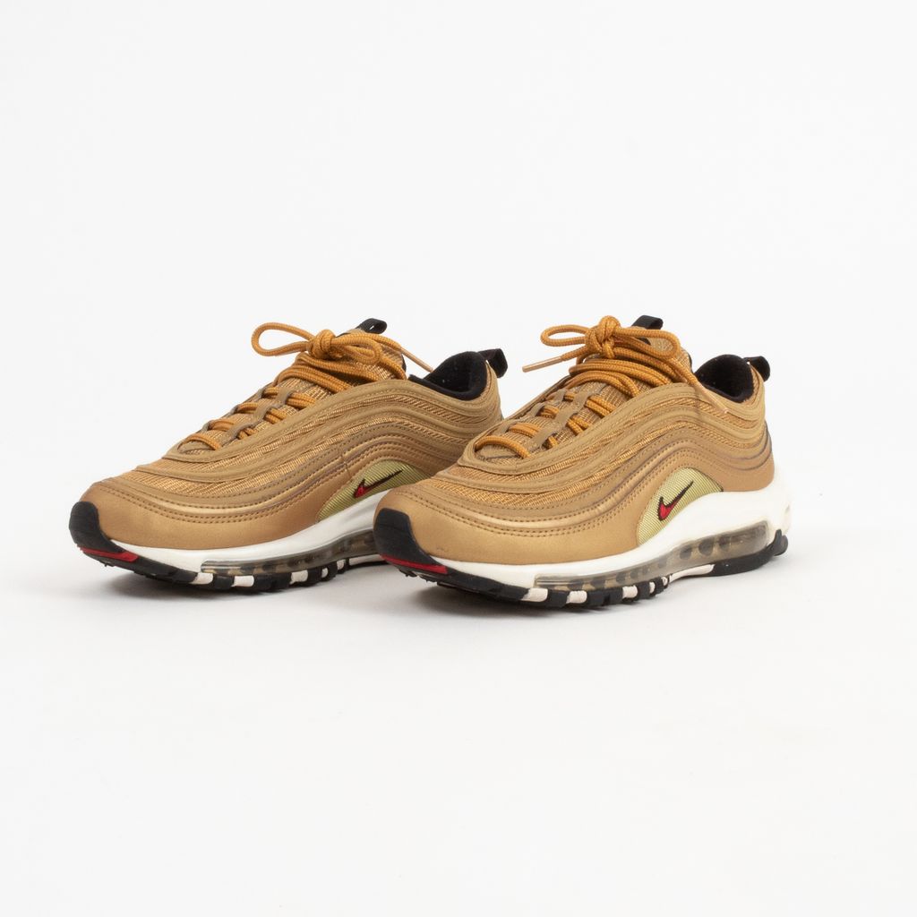 A reboot of the beloved 90's classic, these Gold Bullet Air Max's are proven stylish. The fluid lining details were designed to represent the flowing lines of the Shinkansen bullet trains of Japan, giving you the perfect icebreaker for your next mixer. Dress them up or dress them down, these shoes will shine no matter where you go.