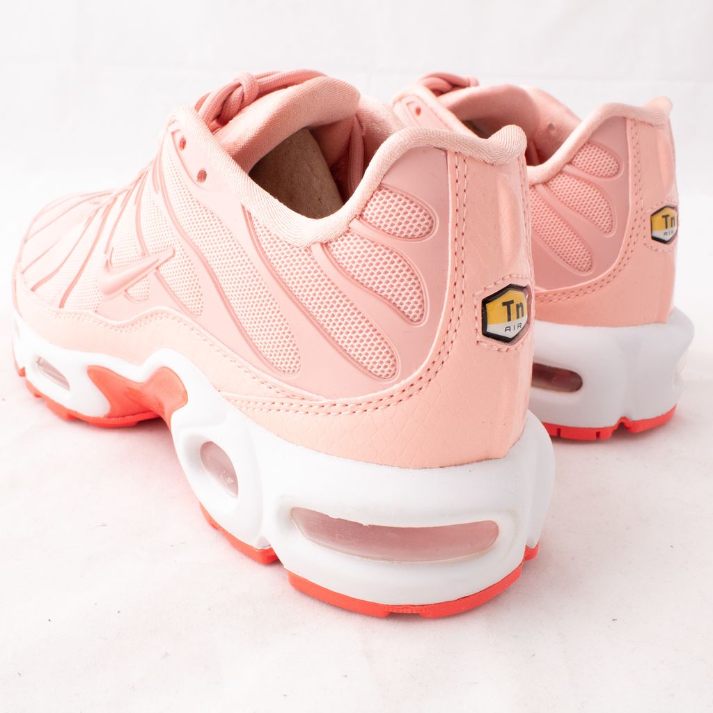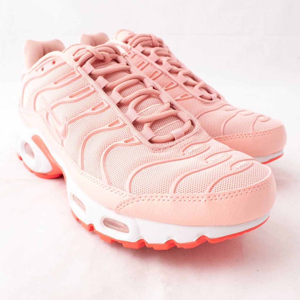 Brand new in box, coral Nike Air Max Plus SE. Feature a double-lasted stretch synthetic upper provides breathability and features bold injected ribs for an edgy look and better fit. Max Air units in the forefoot and heel give lightweight comfort. Rubber outsole provides traction and durability.