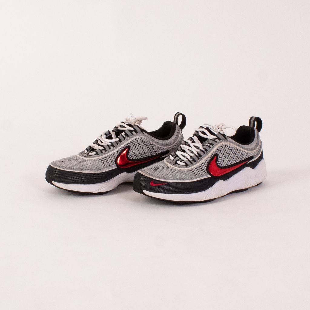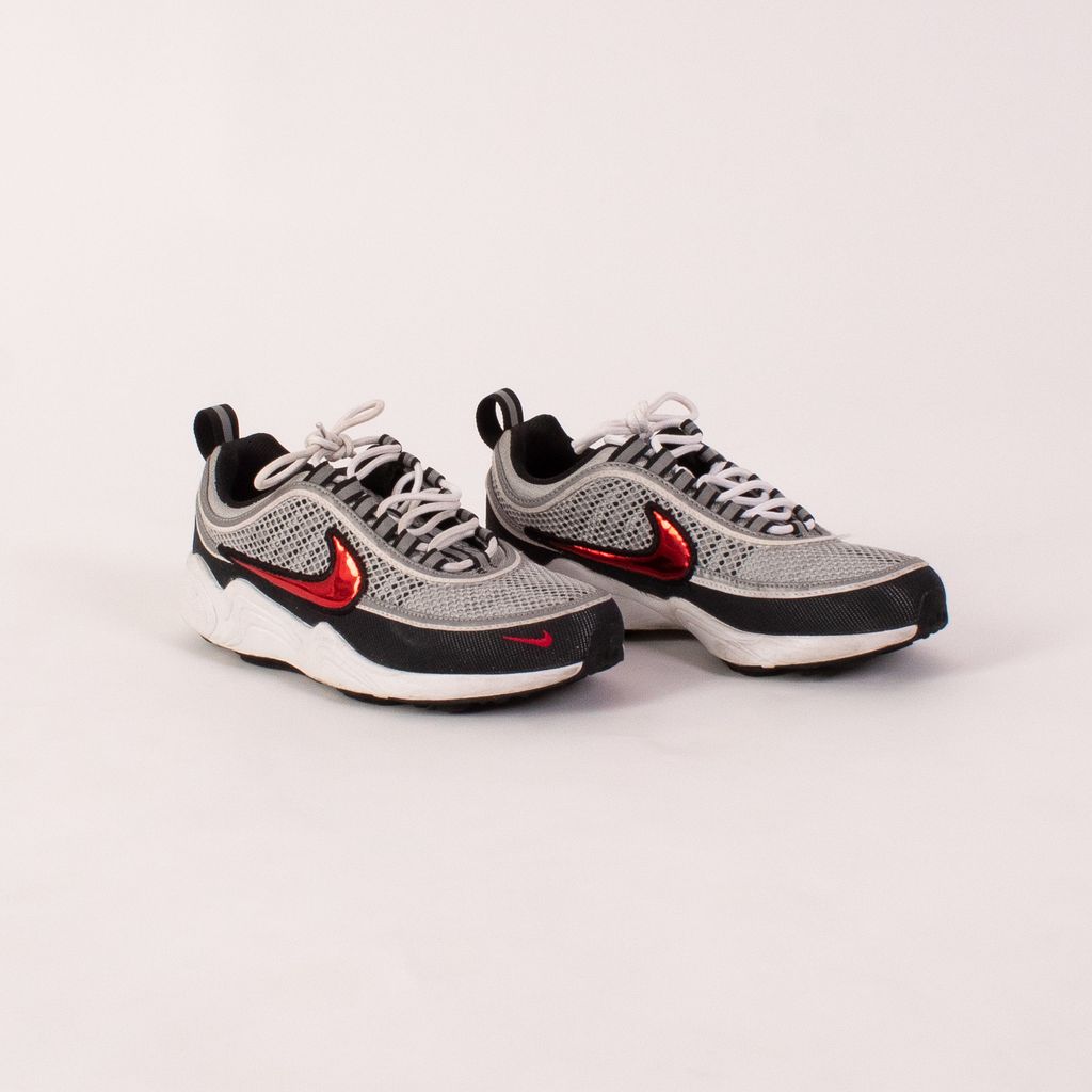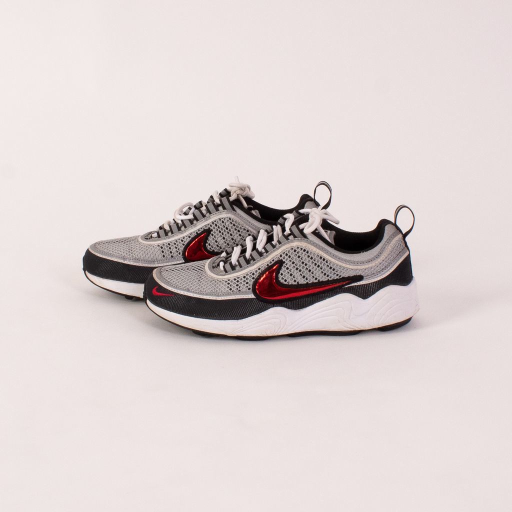 The Nike Spiridon is designed as a functional running shoe with a fashion flair and futuristic design. Features breathable netted upper, metallic Swoosh logo, tri tone color scheme, and thick rubber sole.