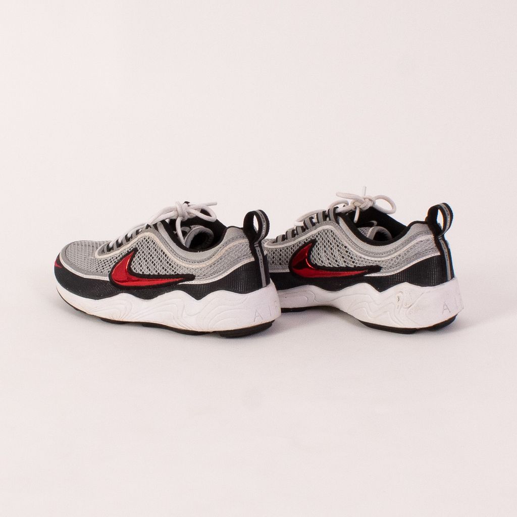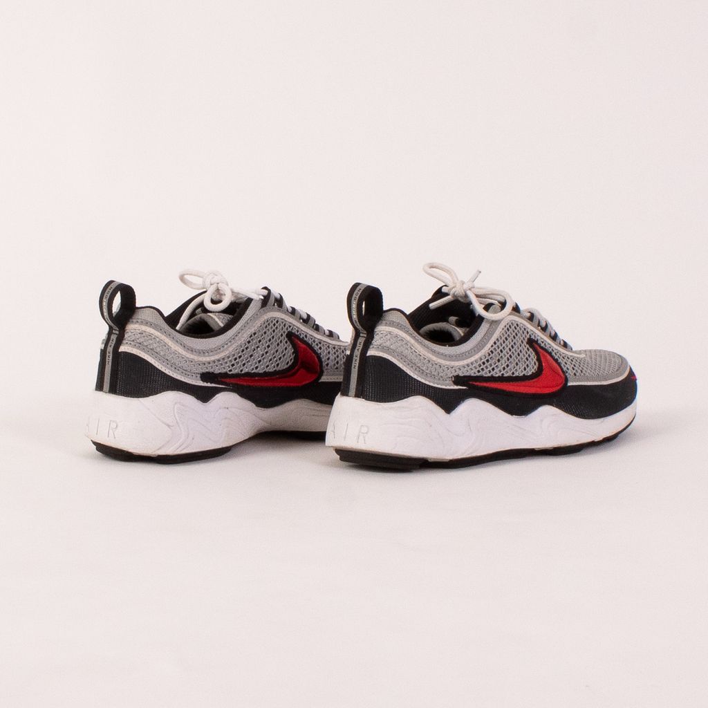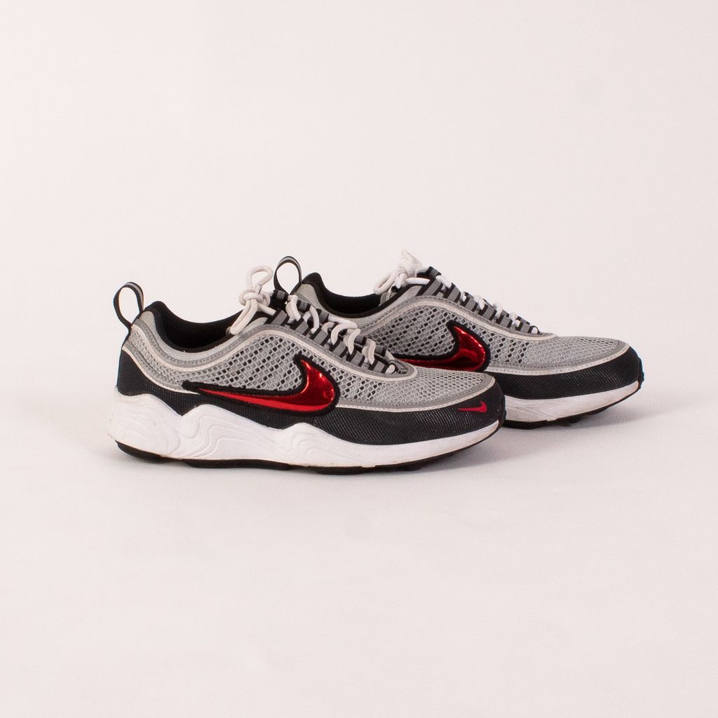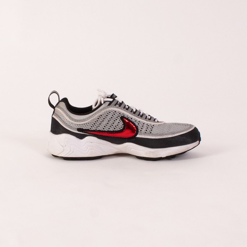 The Nike Spiridon is designed as a functional running shoe with a fashion flair and futuristic design. Features breathable netted upper, metallic Swoosh logo, tri tone color scheme, and thick rubber sole.