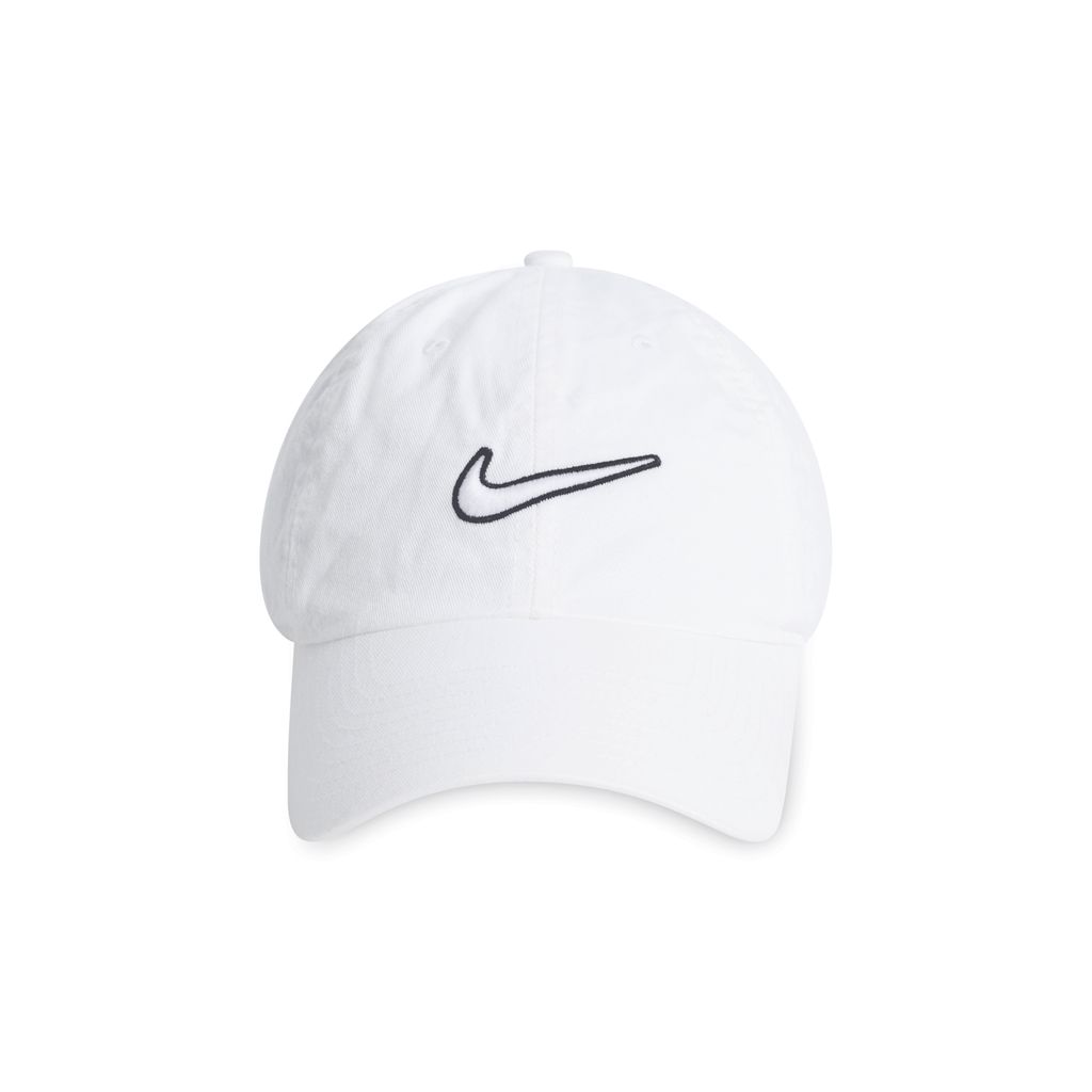 Sporty white baseball cap, embroidered with the black Nike logo on front. Adjustable back strap to ensure a comfortable fit.