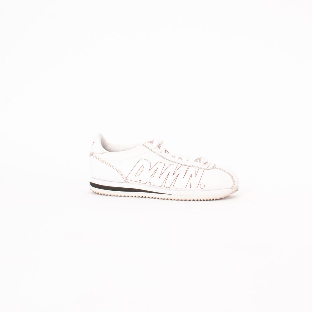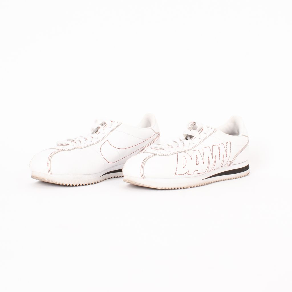 Part of Kendrick Lamar's collaboration with Nike, this pair draws heavy inspiration from his album with the Damn. logo taking center stage. Features tricolor design, Damn text in Nike font, tonal laces, red Nike logo on heels, and contrast stitching all over.