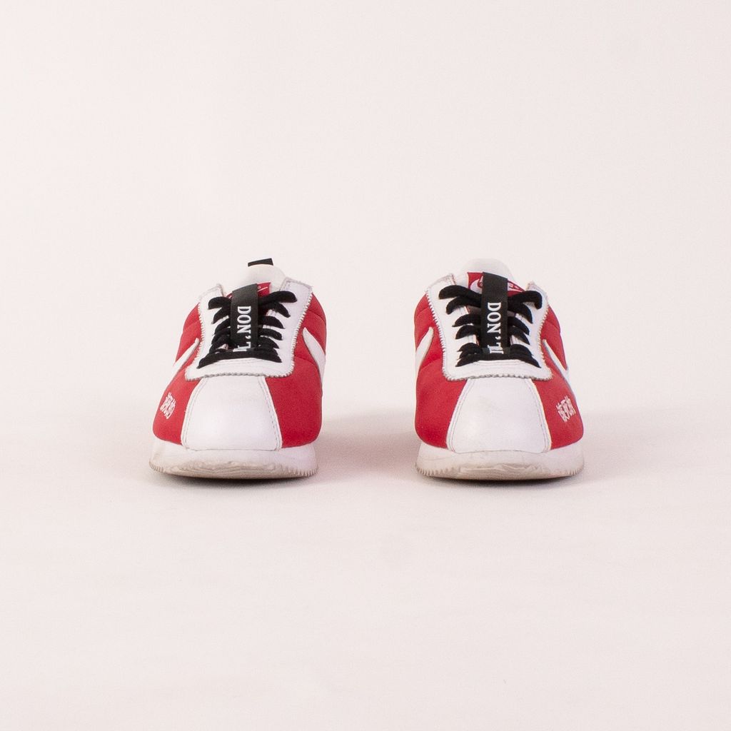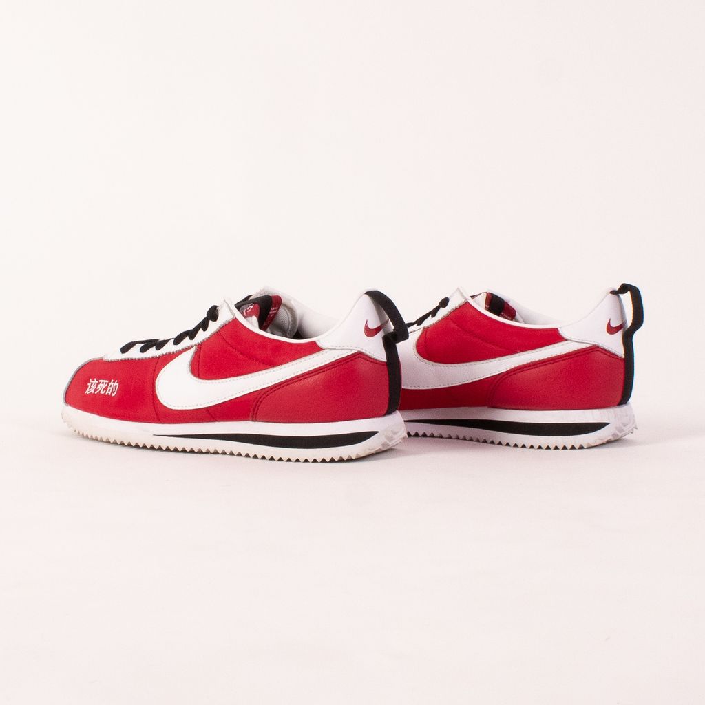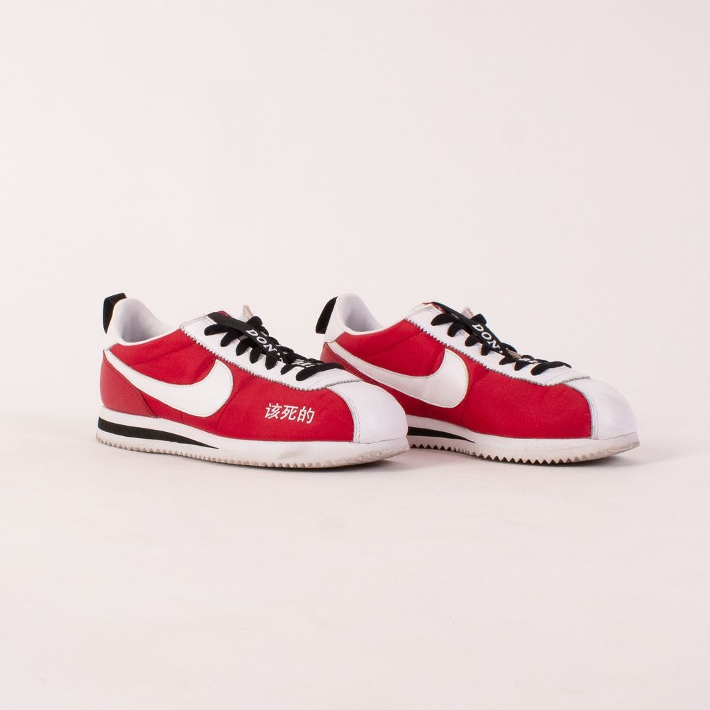 Released exclusively in LA for All Star Weekend in 2018, these special edition pair of Cortez sneakers are designed with the motifs of Kendrick Lamar's album Damn, more notably those for Kung Fu Kenny. Features red and white color way, Don't Trip lace cover, side embroidery, and leather accent pieces.
