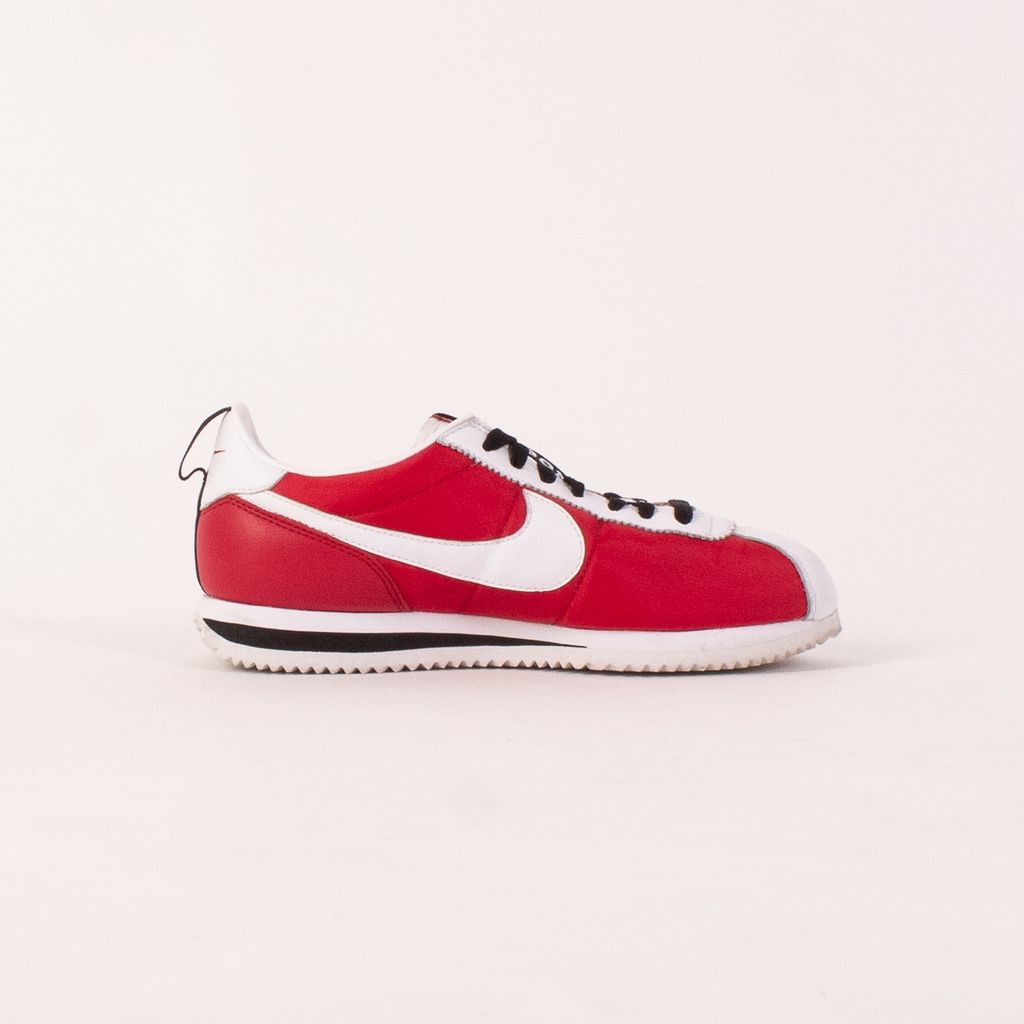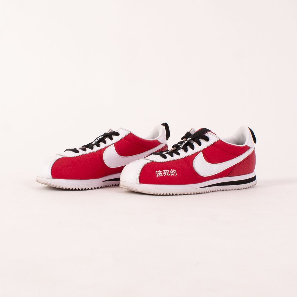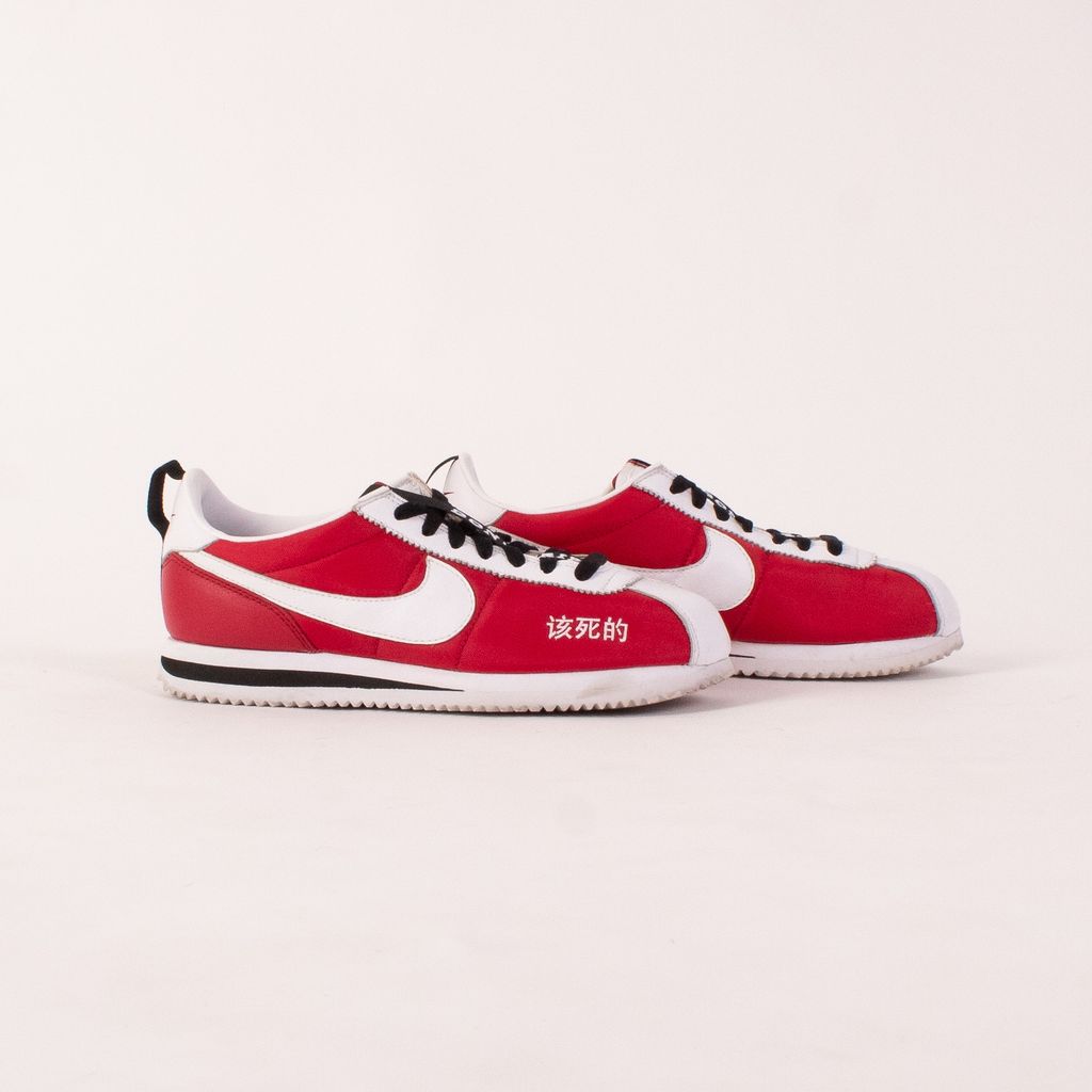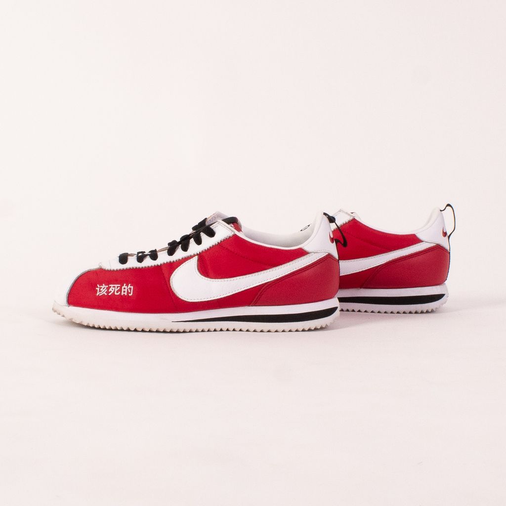 Released exclusively in LA for All Star Weekend in 2018, these special edition pair of Cortez sneakers are designed with the motifs of Kendrick Lamar's album Damn, more notably those for Kung Fu Kenny. Features red and white color way, Don't Trip lace cover, side embroidery, and leather accent pieces.