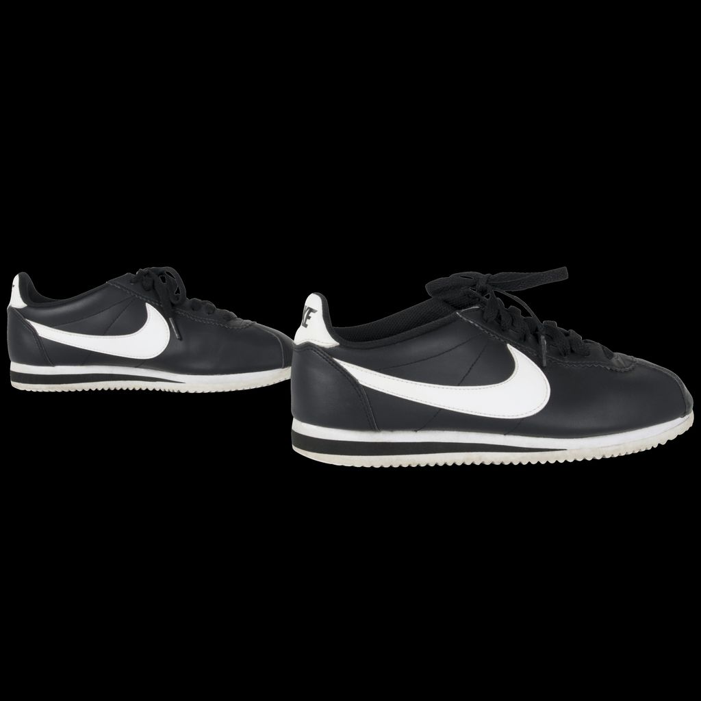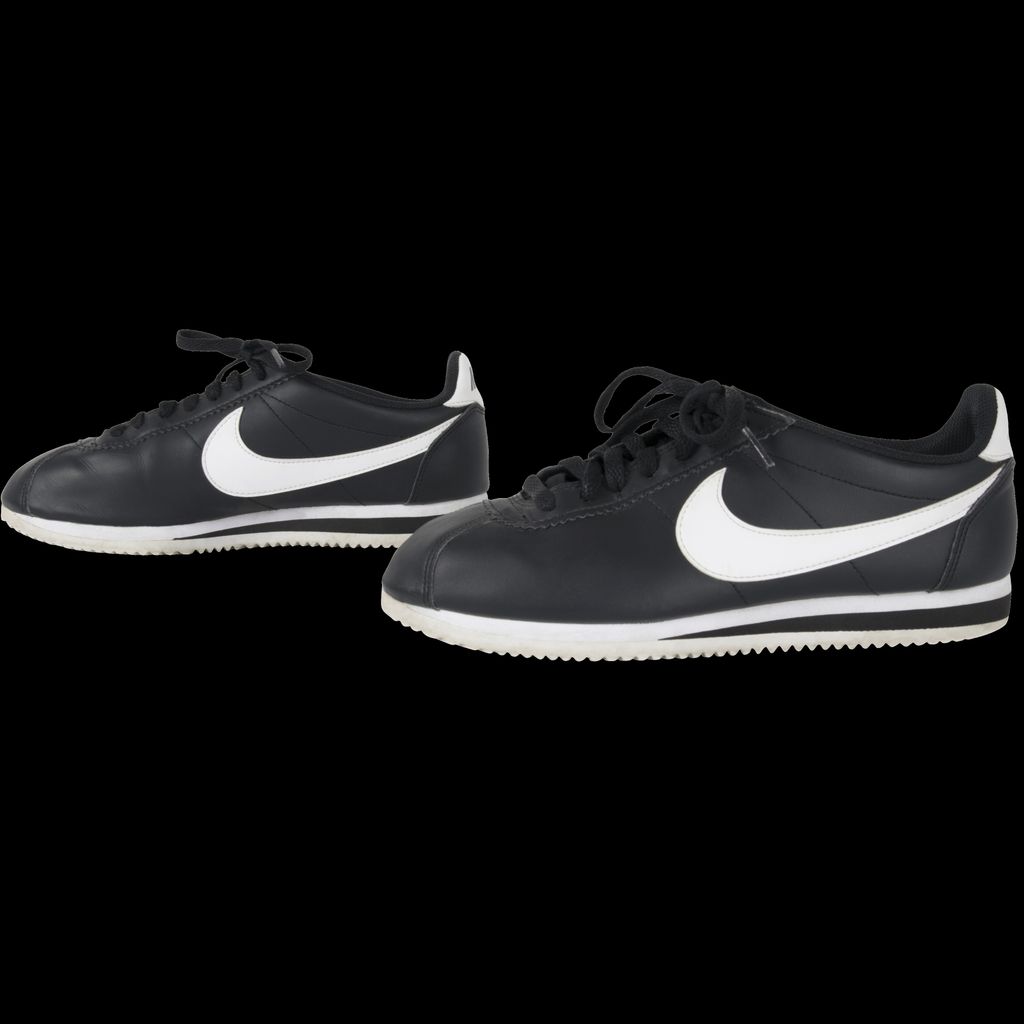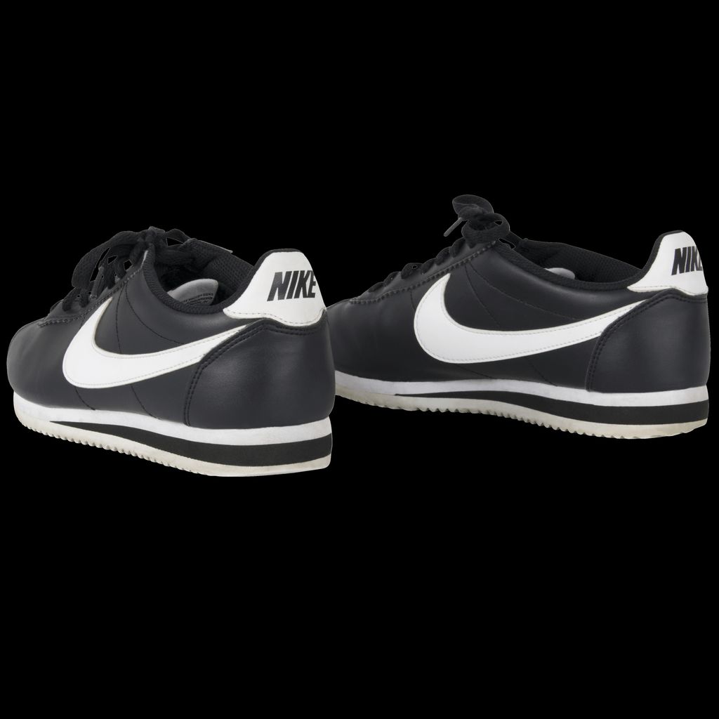 Designed in 1979, the Nike Cortez sneaker has remained a staple for the company and an effortless style icon since. This shoe features a leather body, tonal laces, rounded toe, contrast colored swoosh and heel, and foam based sole with contrast stripe. Gently worn, in good condition. Marks and scuff as pictured.