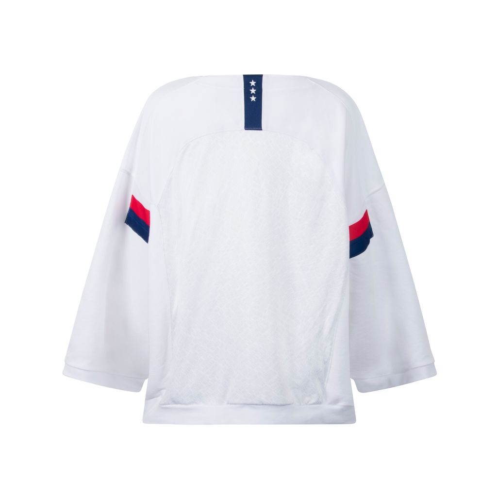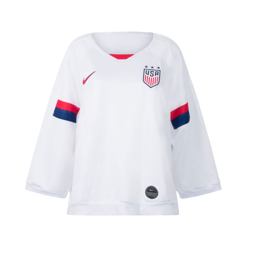 This Nike pullover features the USA Men's Soccer team logo on the front chest and has a boxy silhouette. This pullover has 3/4 sleeves and has an overall jersey and french terry cotton construction. Gently worn, in amazing condition.