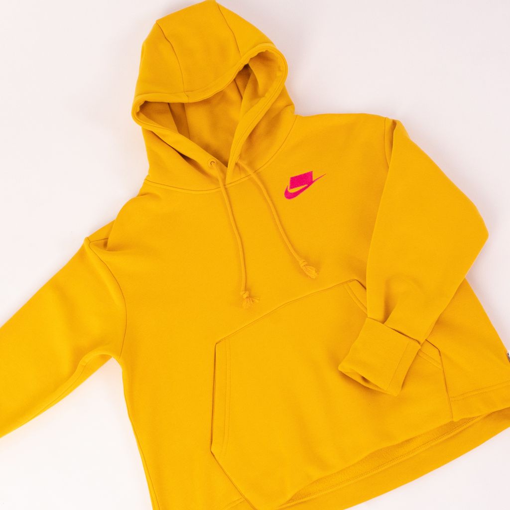 This sunny pullover from Nike's more lifestyle positioned brand, NSW, is a great pop of color to make your winter wardrobe a little less dreary. Features NSW branded embroidery on chest and back near bottom hem, doubled up cuff design, full hood, and kangaroo pocket.