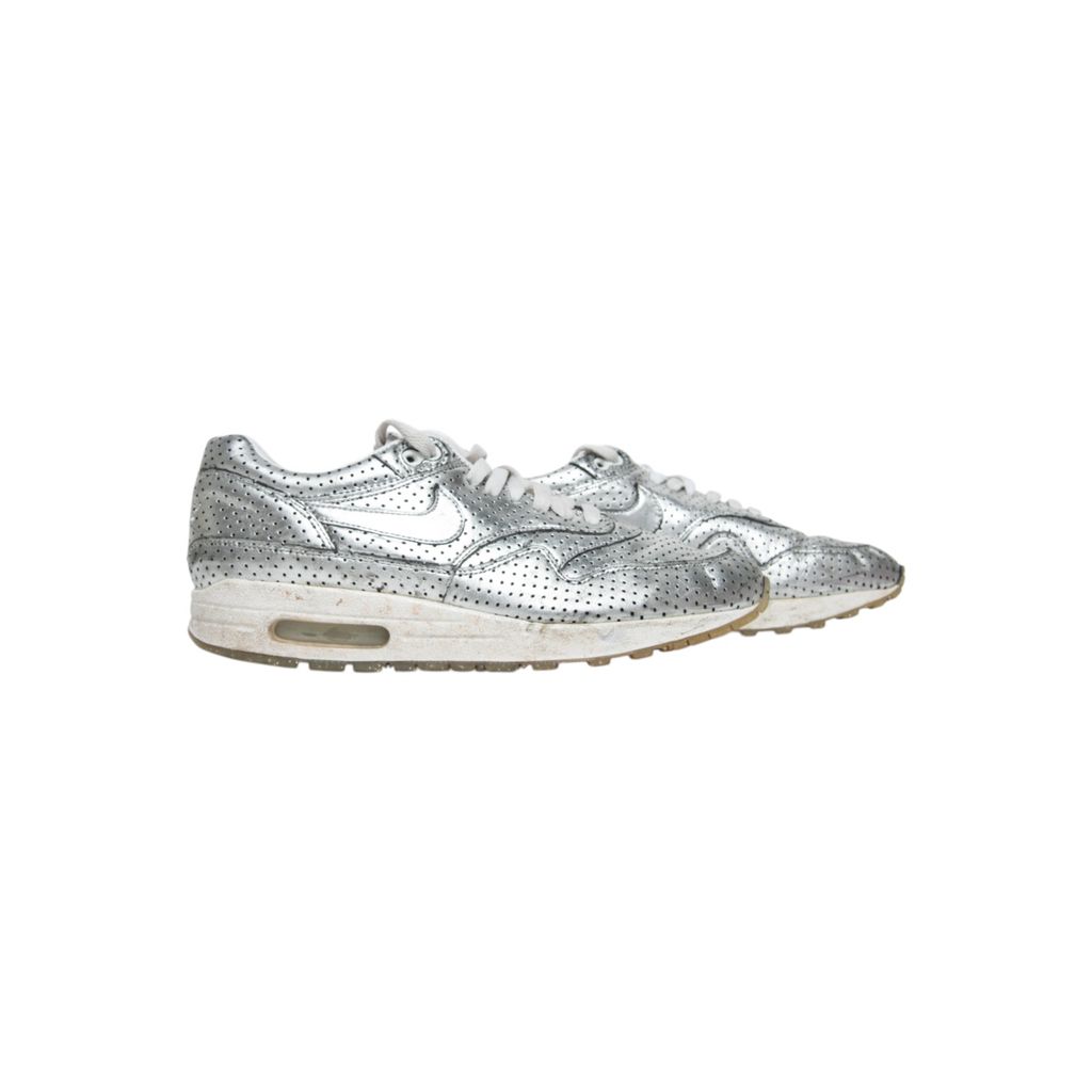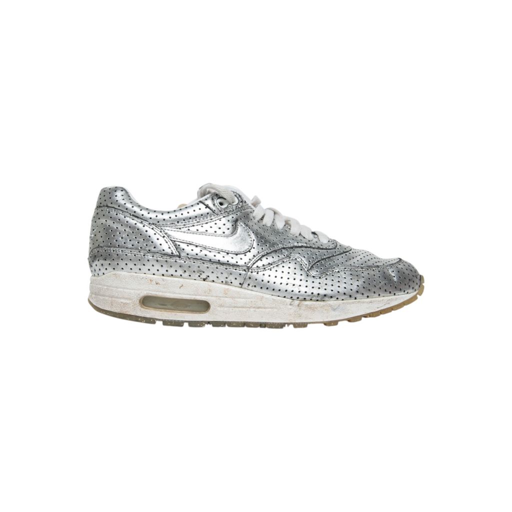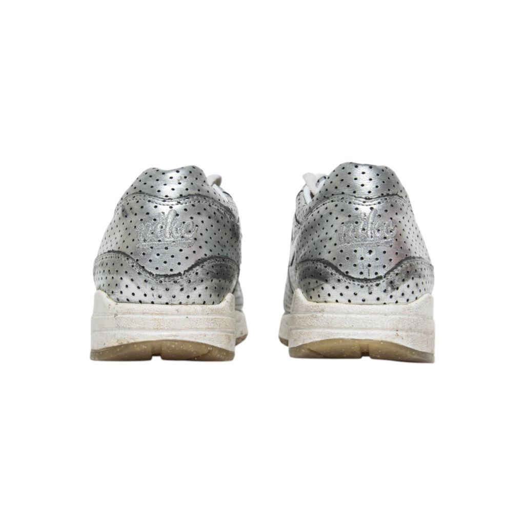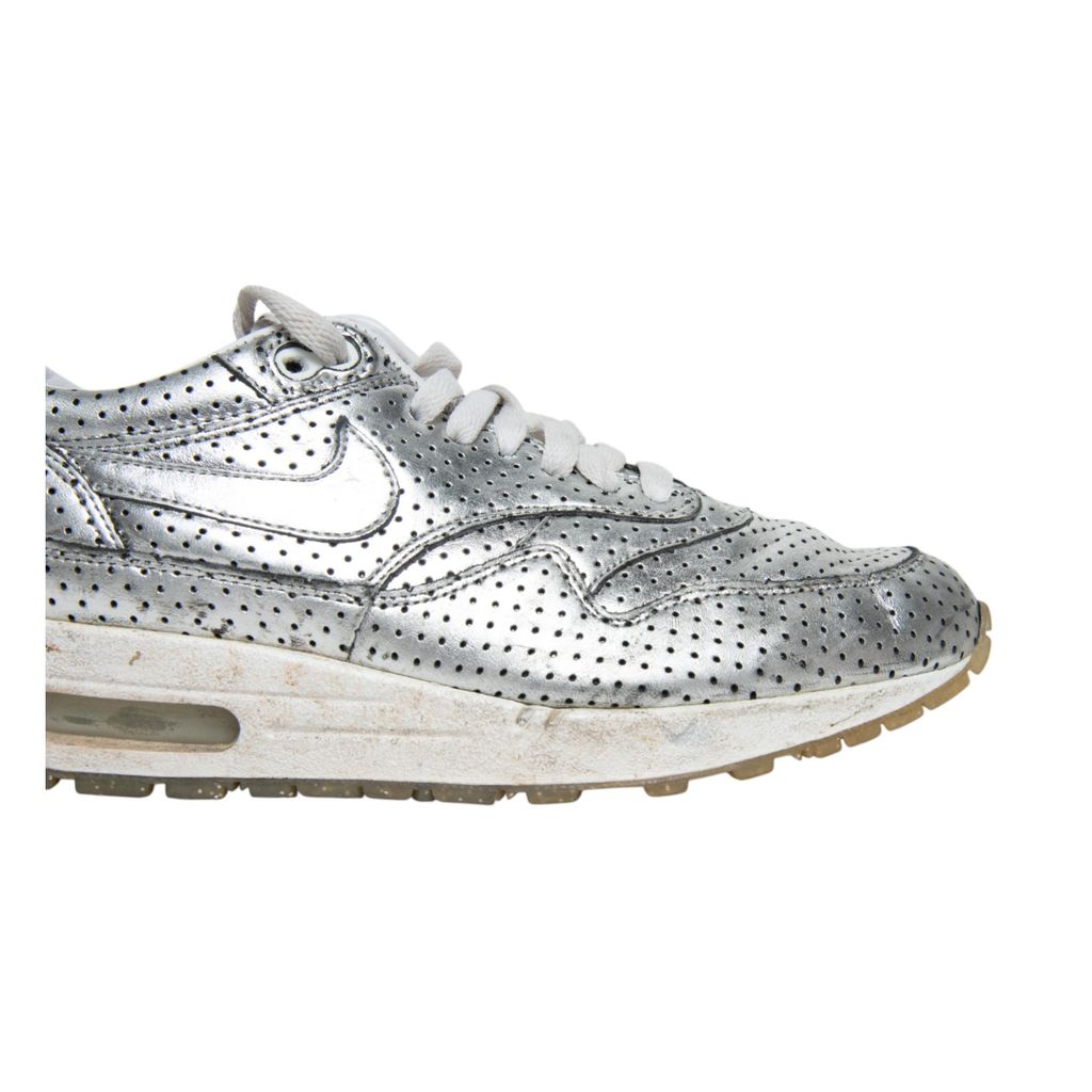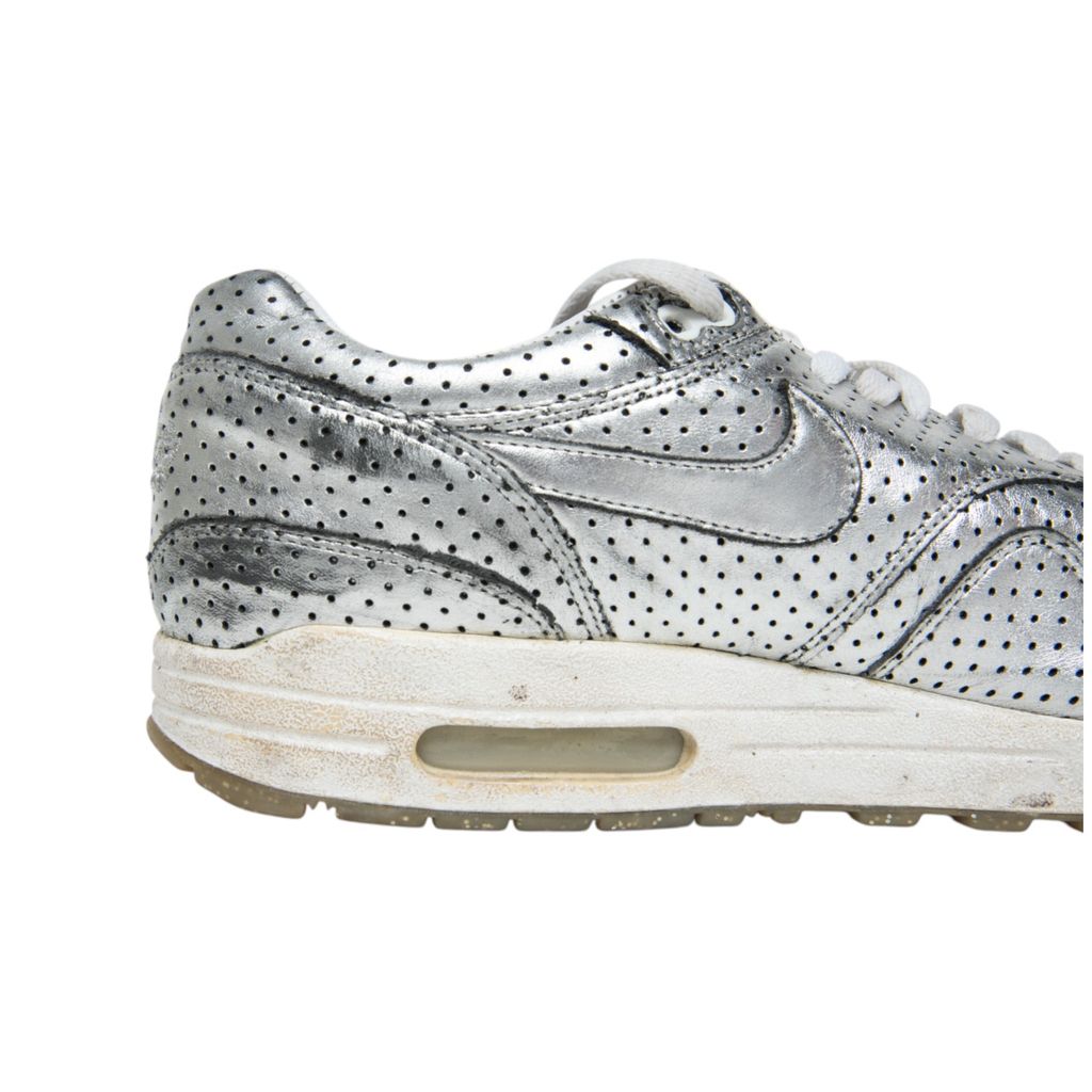 Nike Silver 2008 Olympic Air Max 1 features embroidered logo on back and white laces.