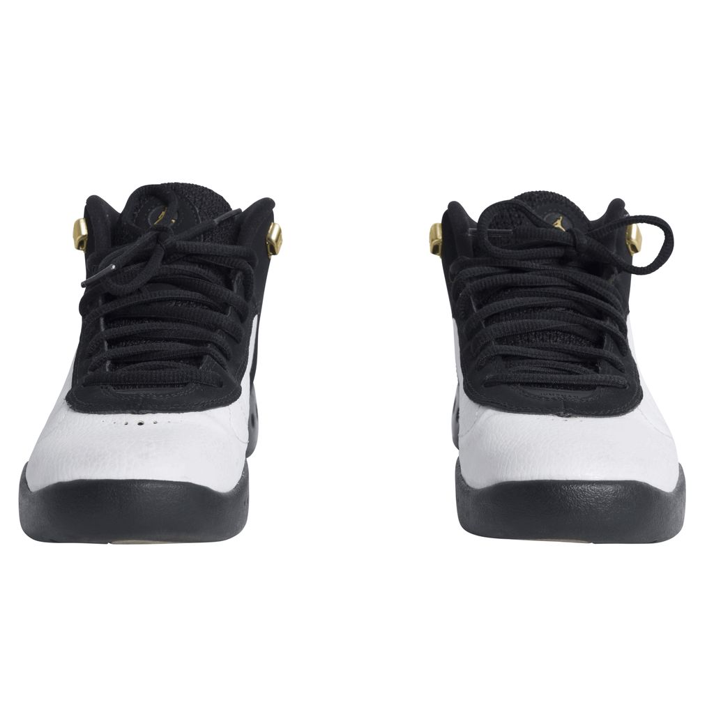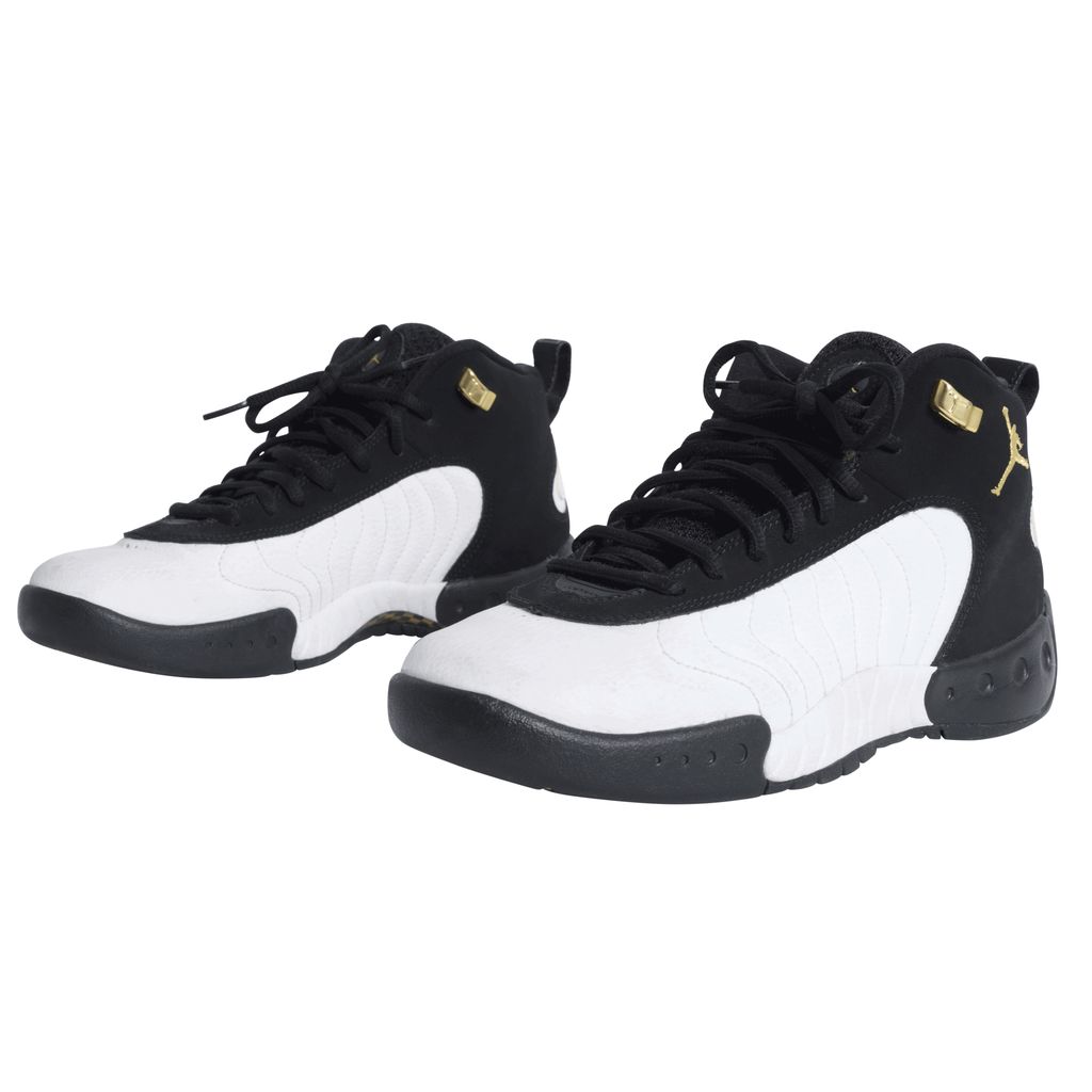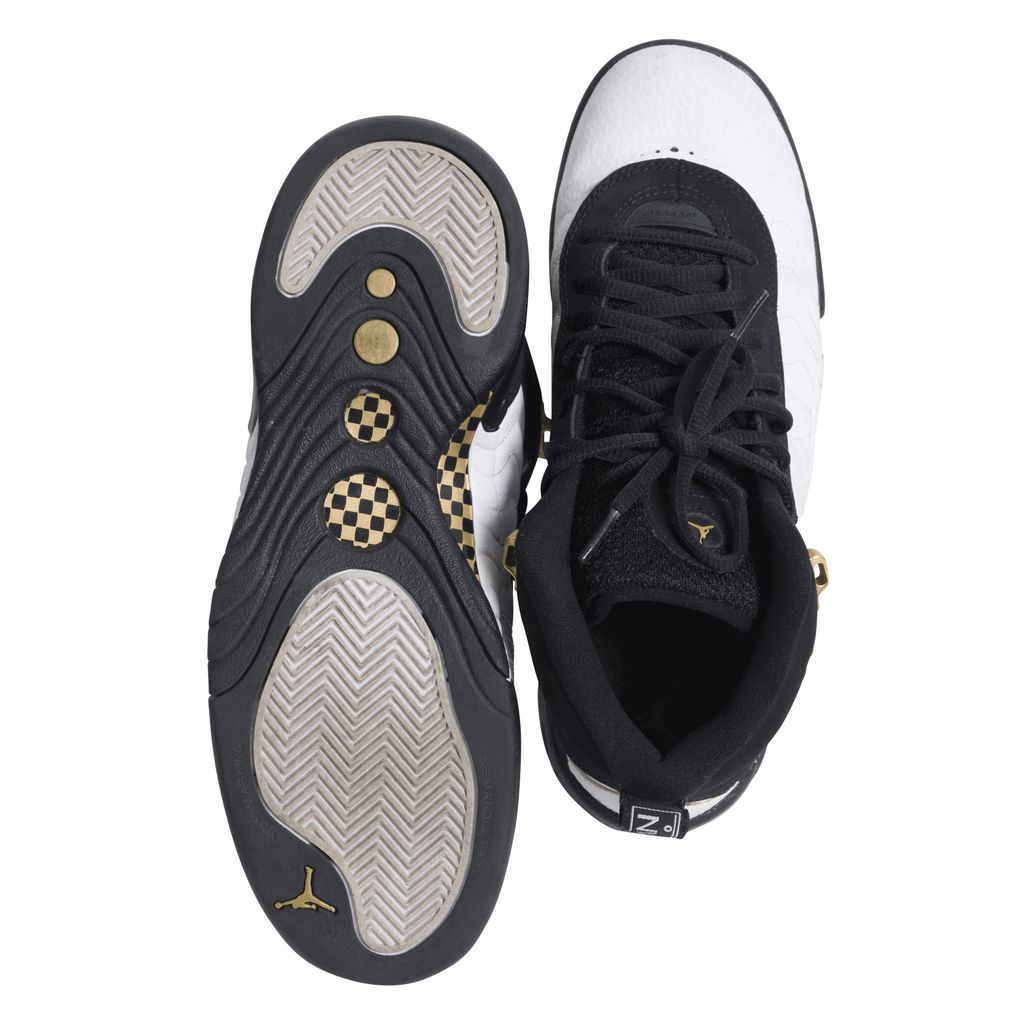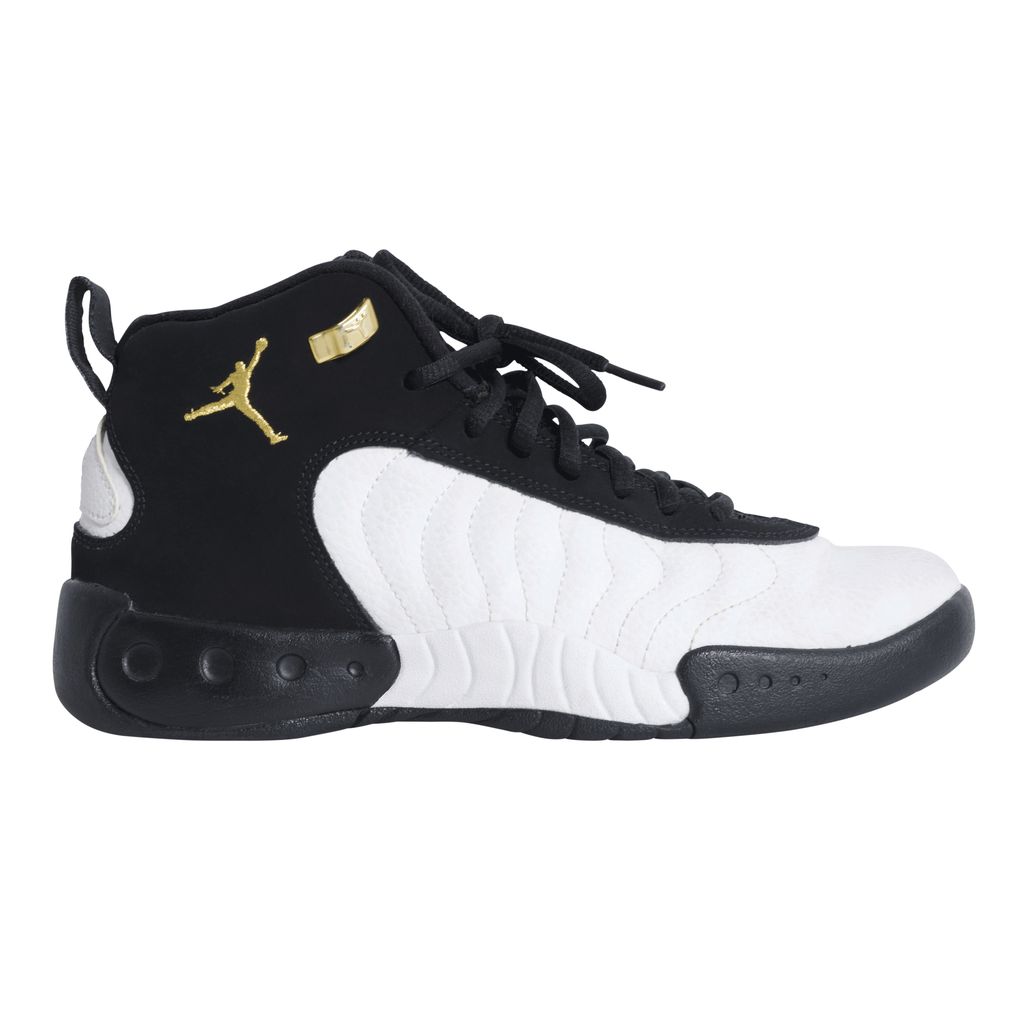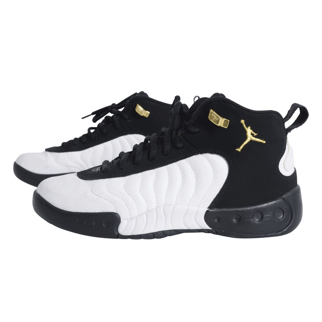 Another iconic release from Air Jordan, the Jumpman Pro was launched in 2017 inspired by the original Air Jordan 12 high-top. Black and white wave texture sneaker, featuring black laces over a mesh tongue, and gold basketball players are embroidered onto the outer ankle. Soles of the shoe are black, white, and featured gold and black checkered circles.