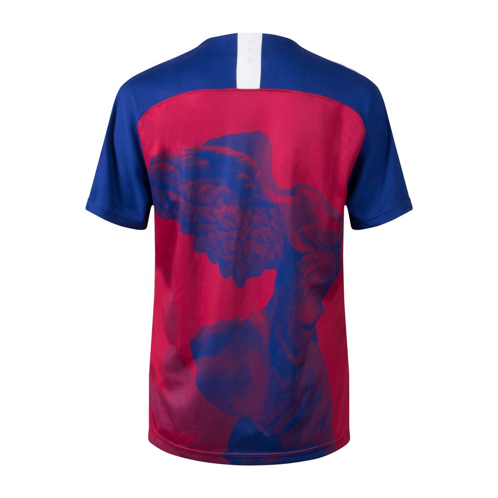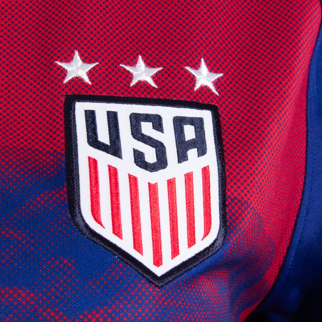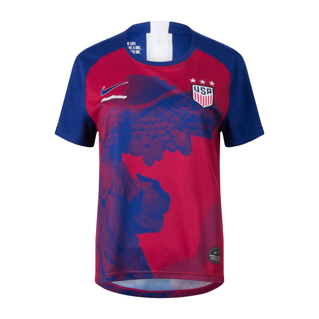 Taking a cue from the US women’s teams of the late ‘90s, Erin Magee head designer of MadeMe, updates the classic stadium jersey with a graphic featuring the Goddess of Victory. Dri-FIT technology helps you stay dry, comfortable and focused. This jersey has short raglan sleeves, ribbed round neckline, sublimated Nike Goddess of Victory graphic and the US team crest at the left chest. Brand new, tags attached.