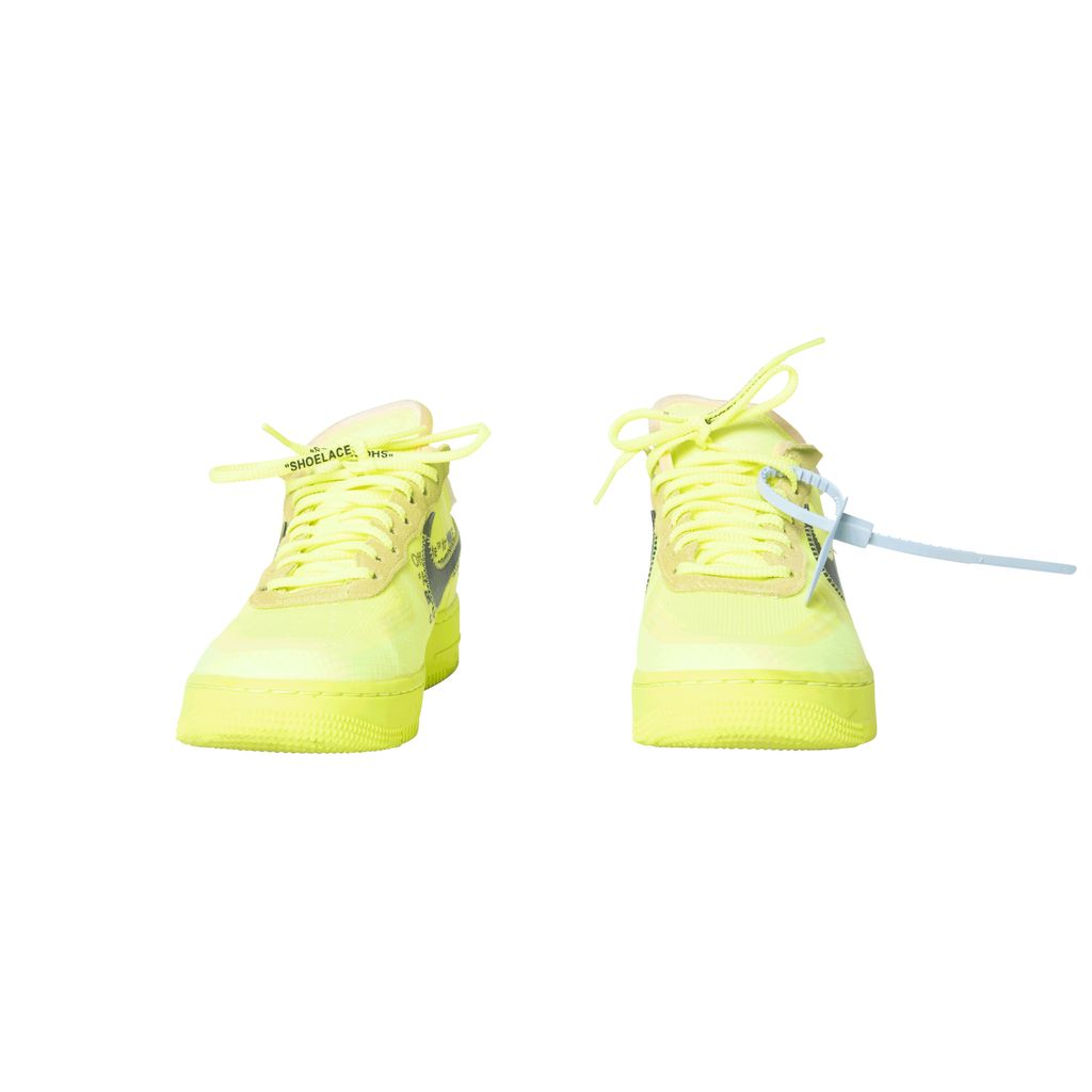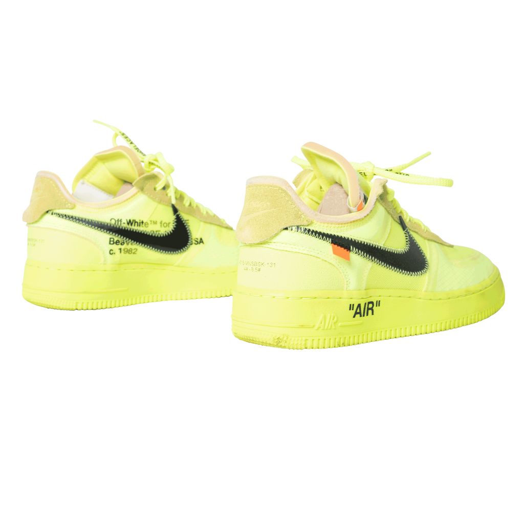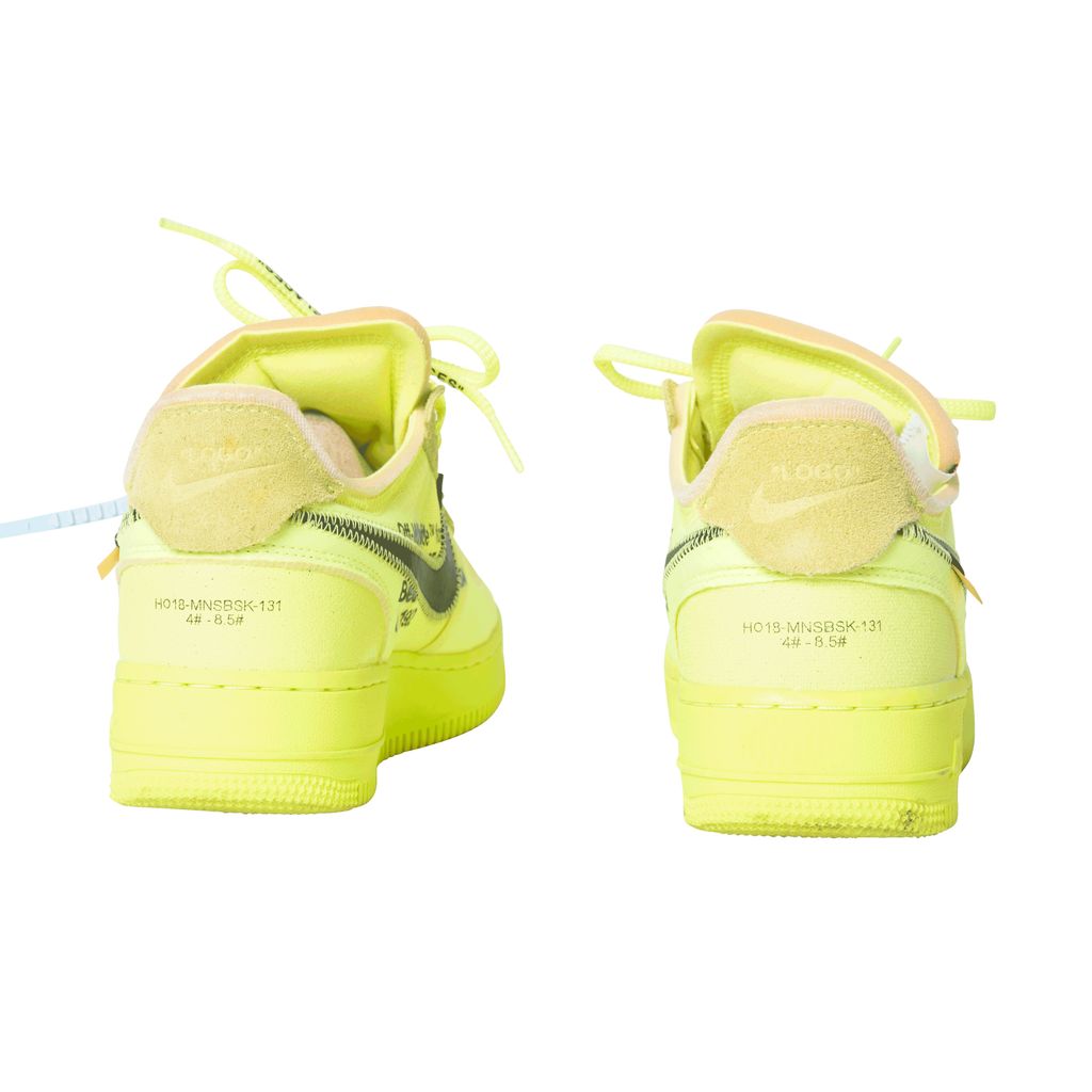 Nike x Off White Air Force 1 “Volt” is gently worn.