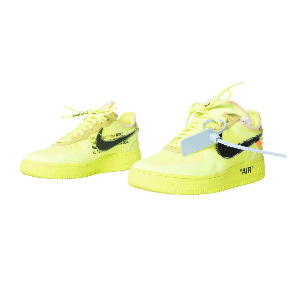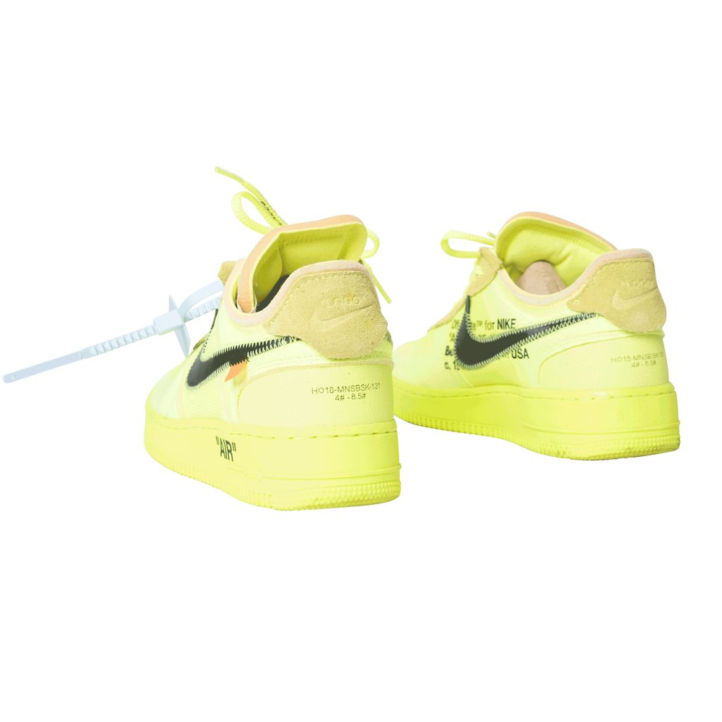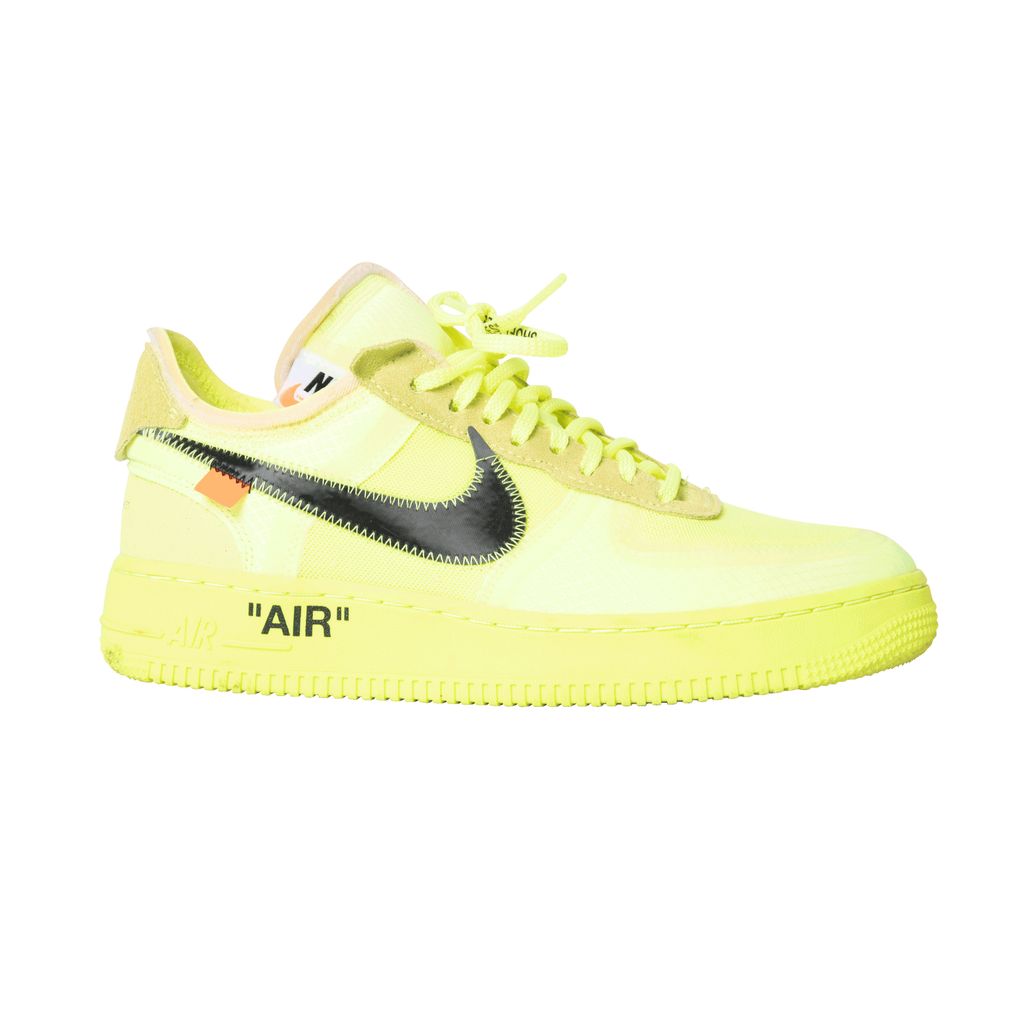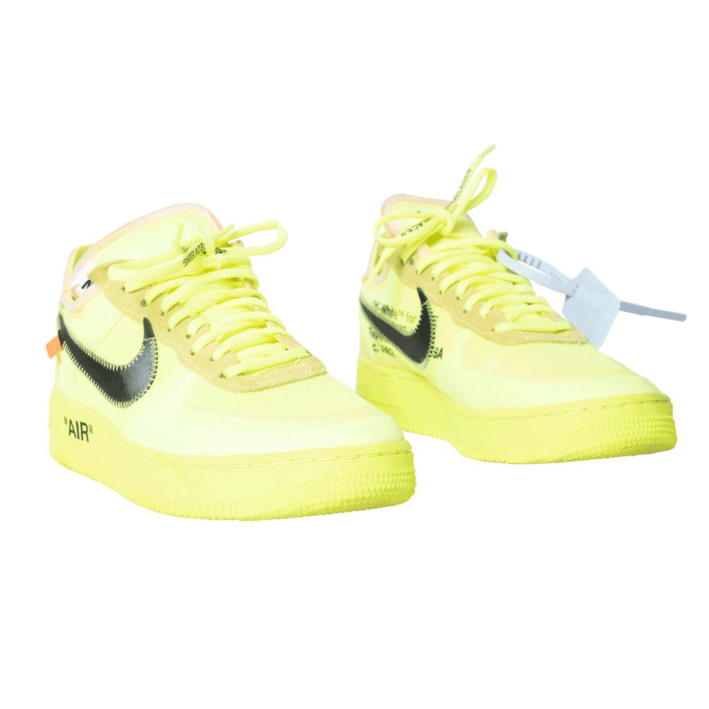 Nike x Off White Air Force 1 “Volt” is gently worn.