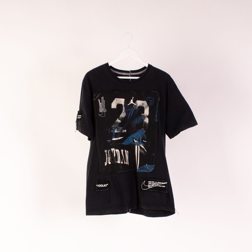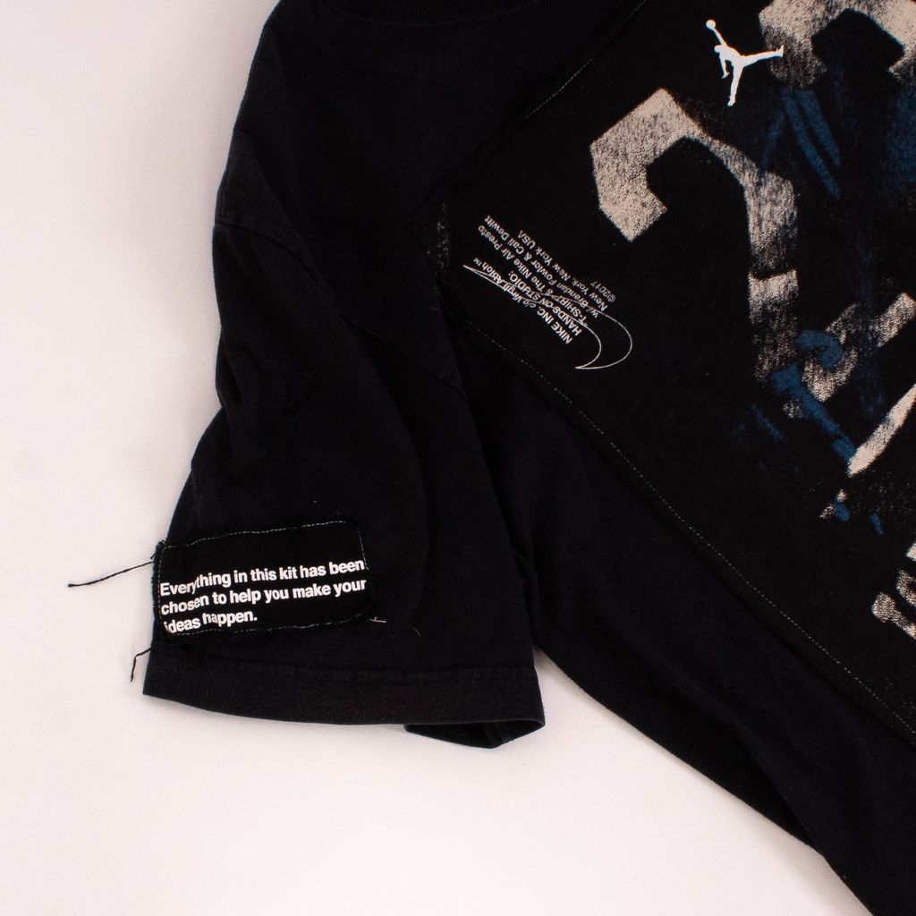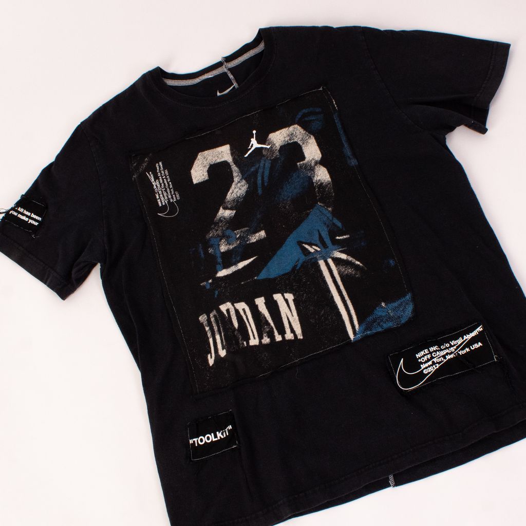 This piece comes from the Off Campus project created to celebrate the release of Off-White's Ten collection for Nike. With its DIY aesthetic and functionality, it is the perfect blend of both brands. Features all over patchwork, reconstruction seam down back, and respective logos for Nike and Off-White.