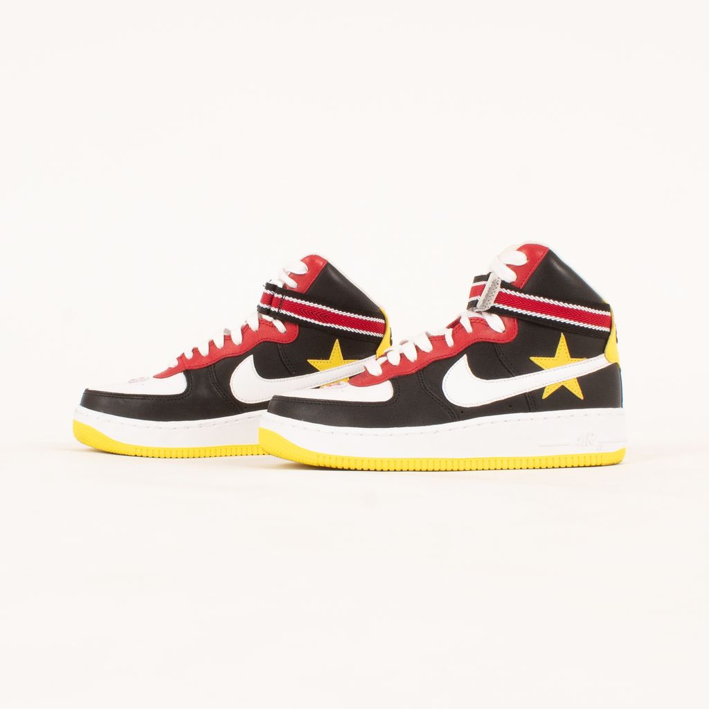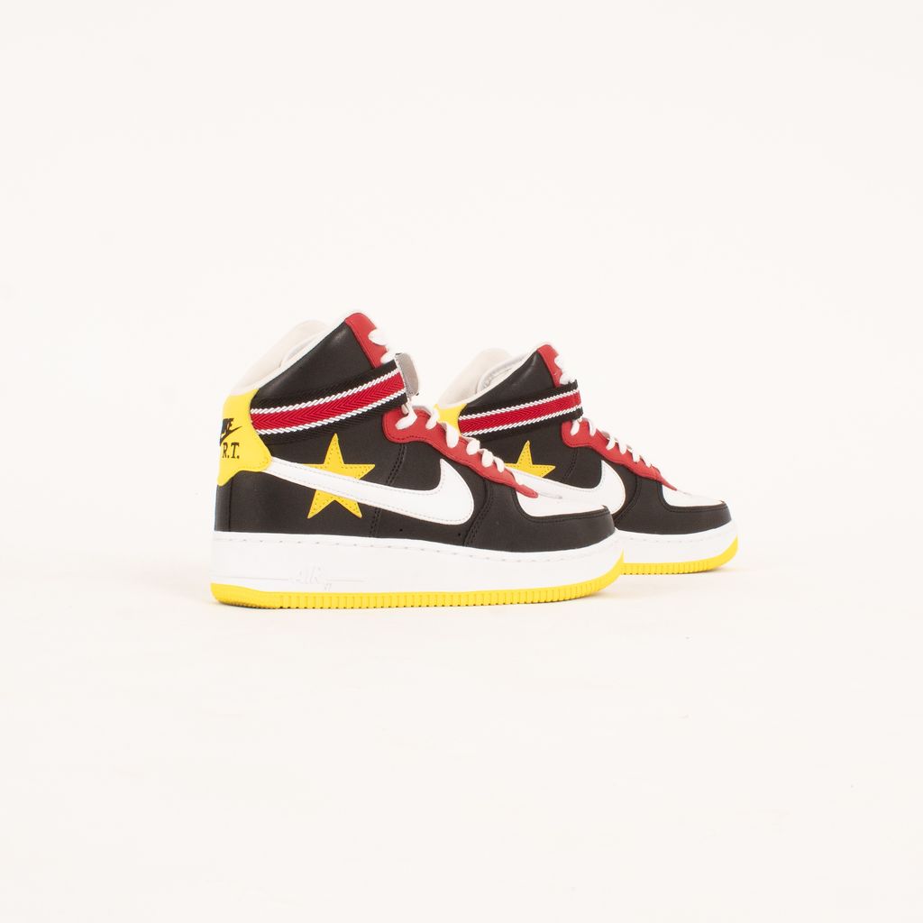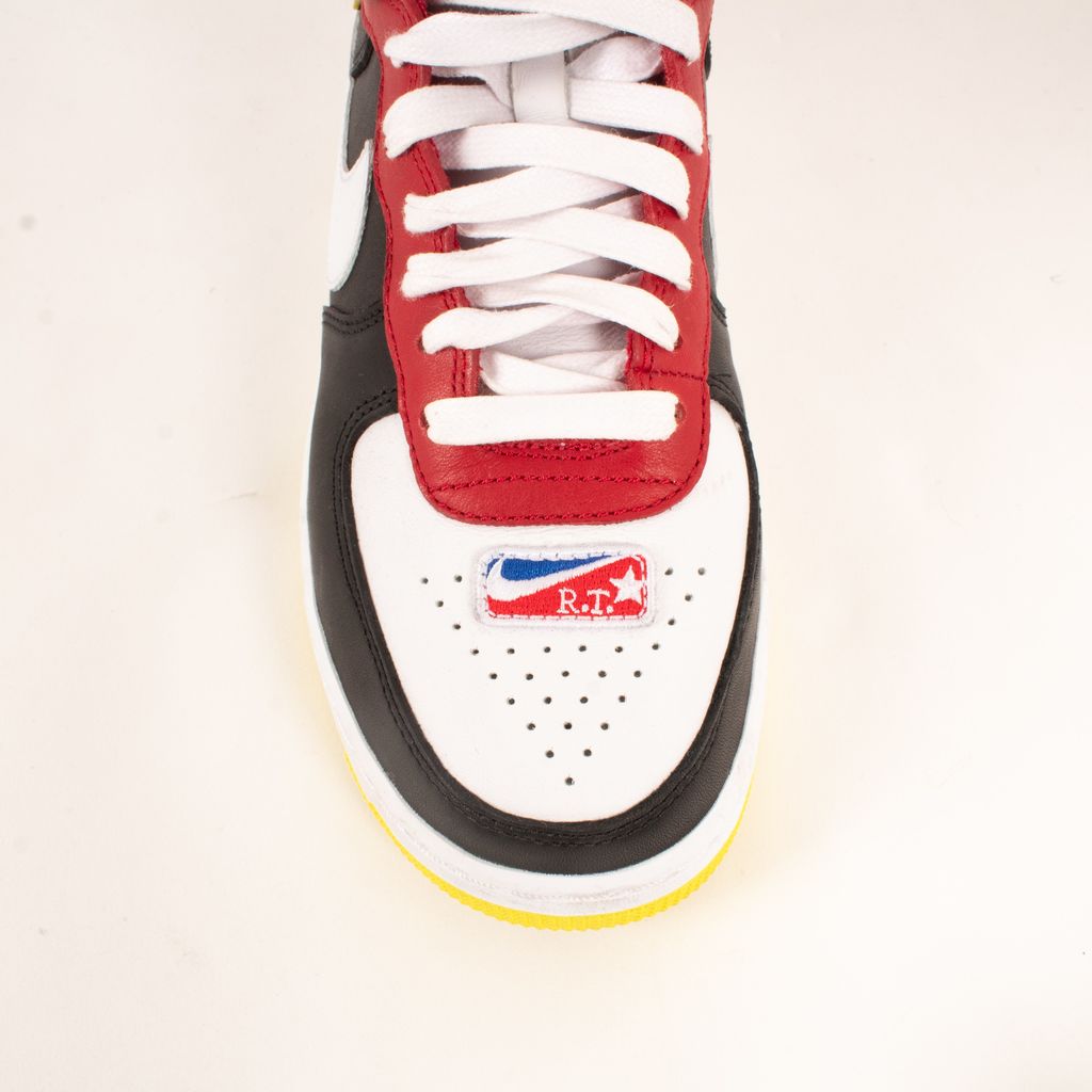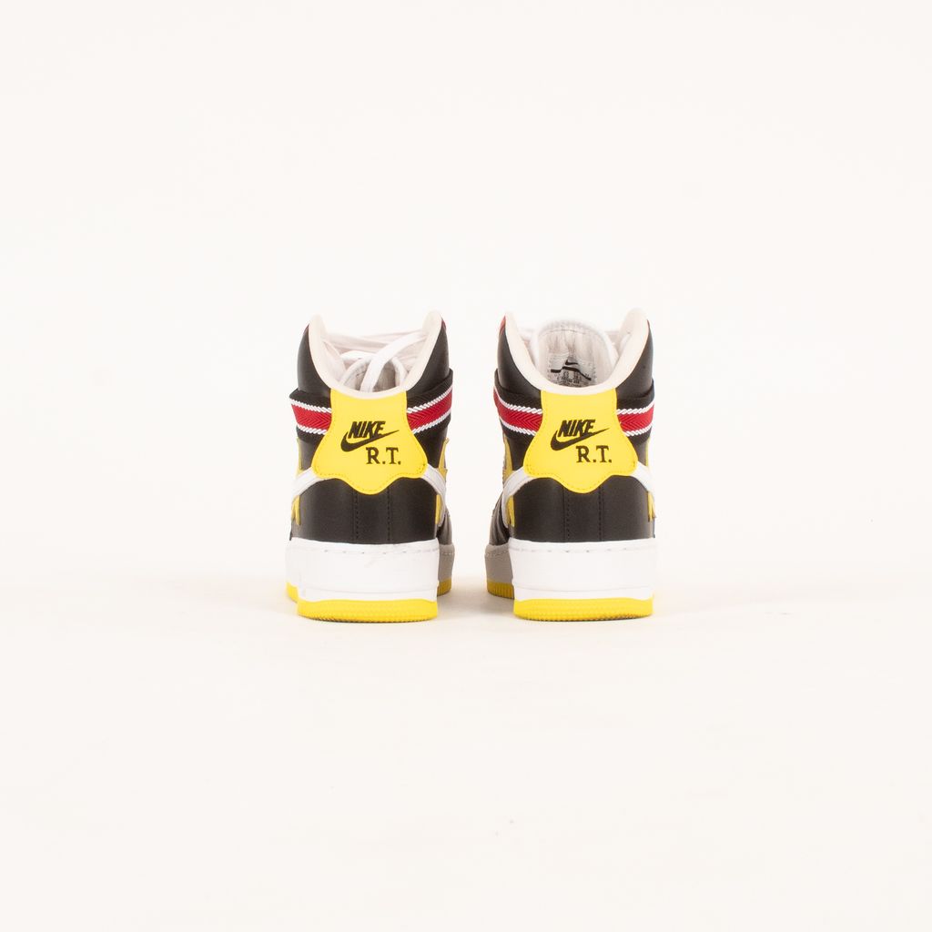 Following the theme of the collaborations between Nike and Riccardo Tisci, these shoes are both athletic and luxurious. Features high top body, quadcolor design, Nike X RT logo on back, and striped ankle strap.