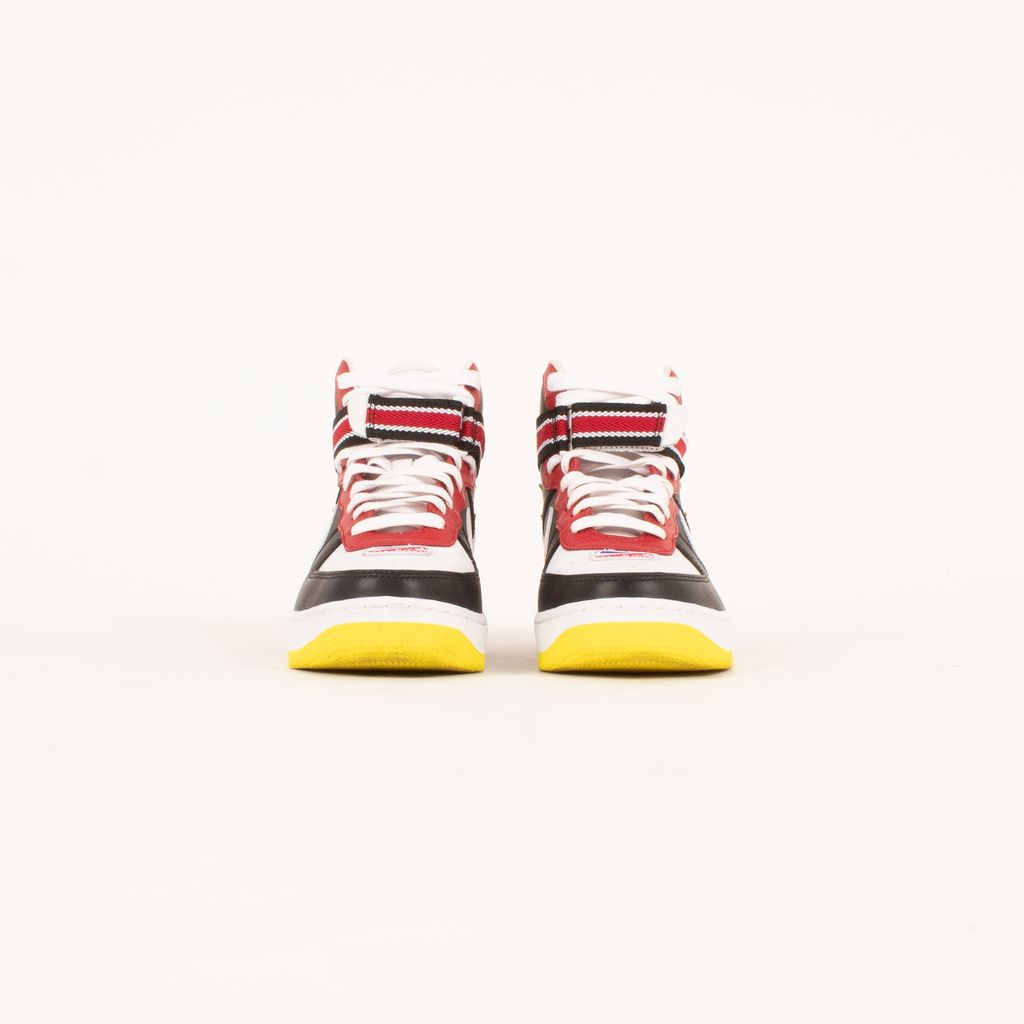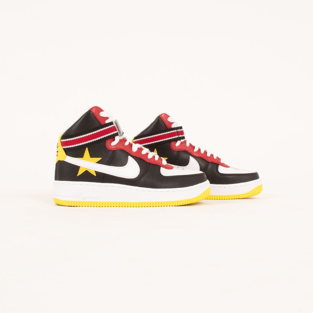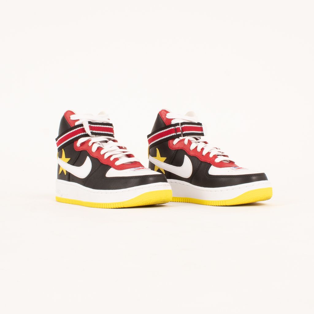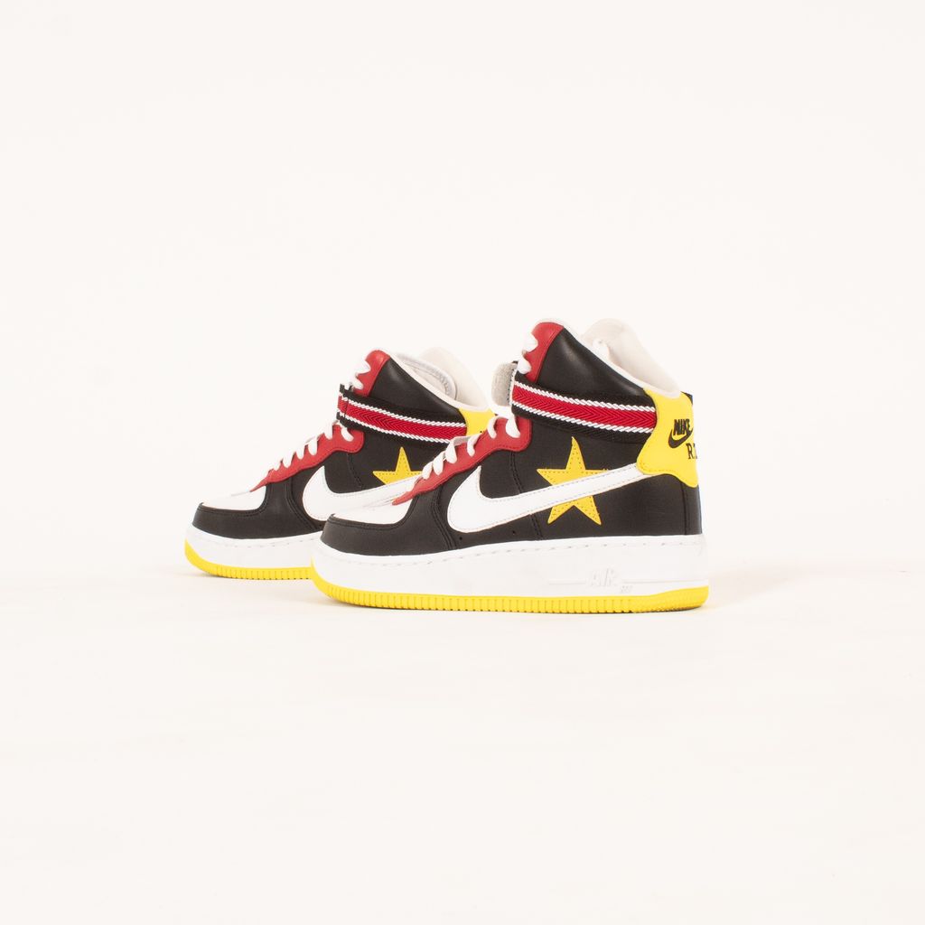 Following the theme of the collaborations between Nike and Riccardo Tisci, these shoes are both athletic and luxurious. Features high top body, quadcolor design, Nike X RT logo on back, and striped ankle strap.