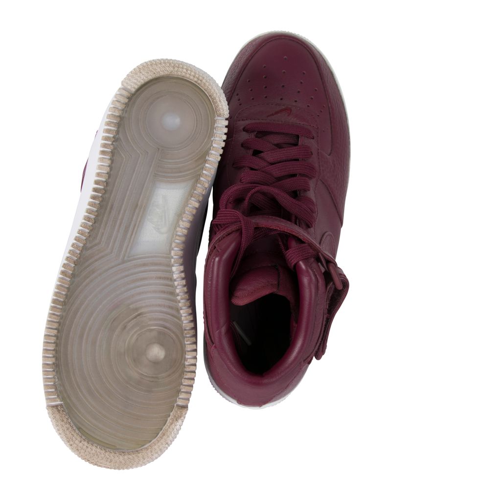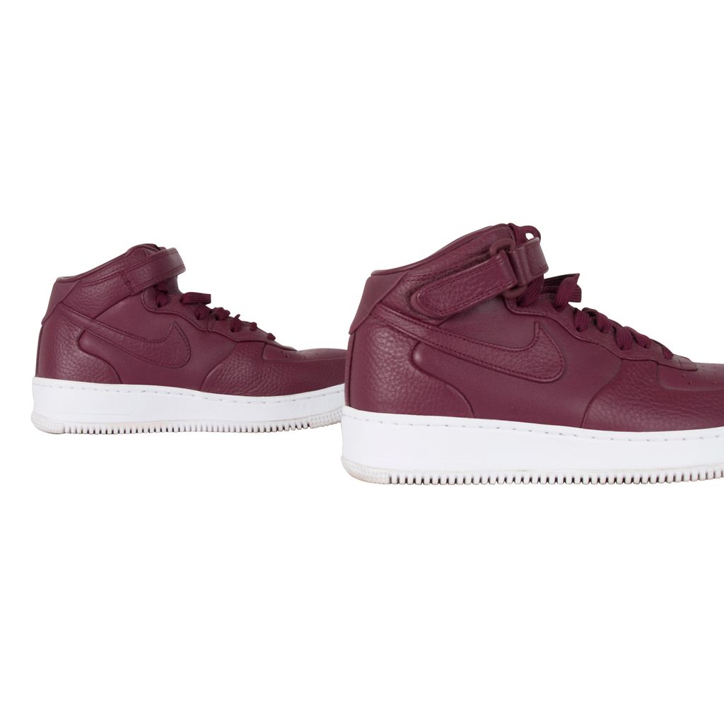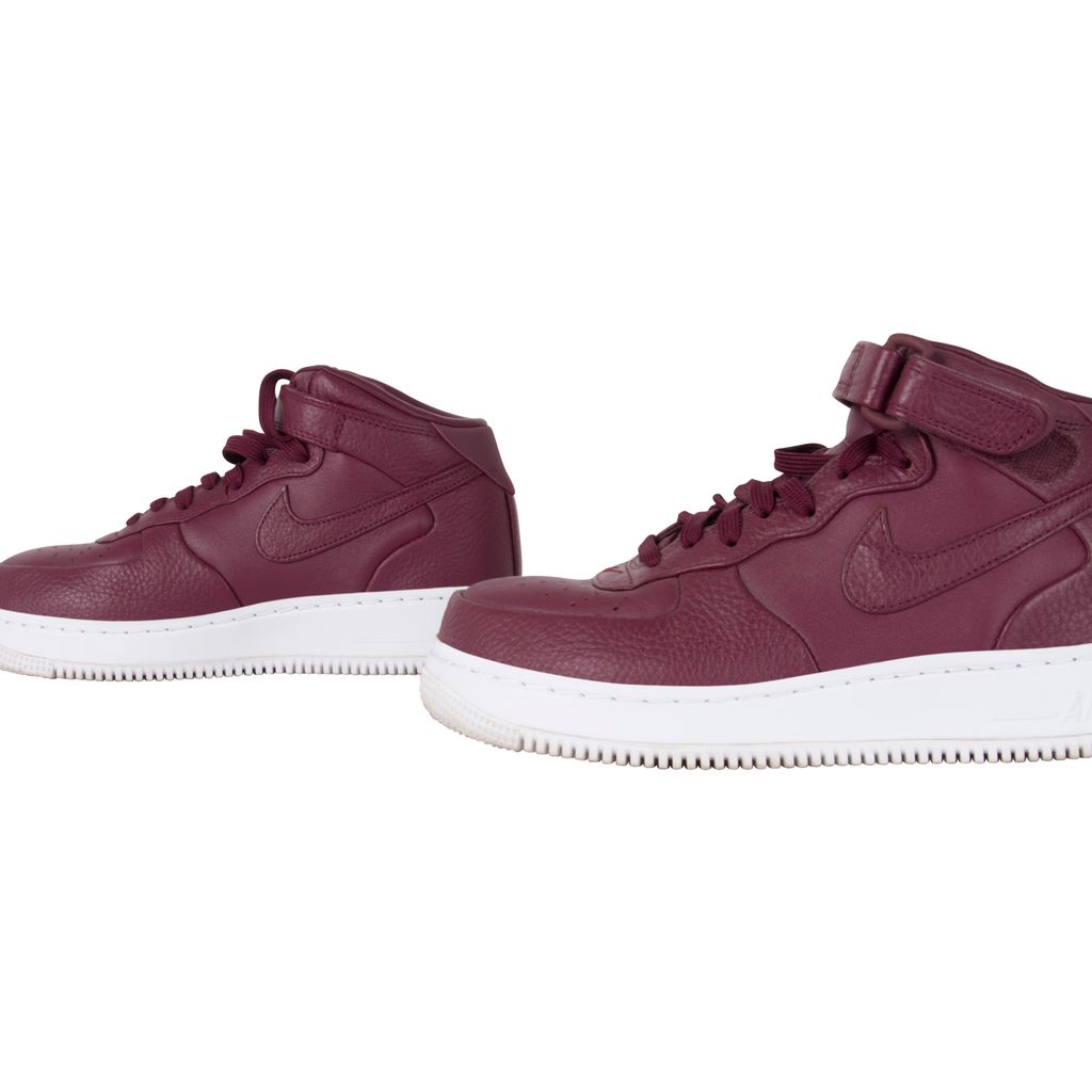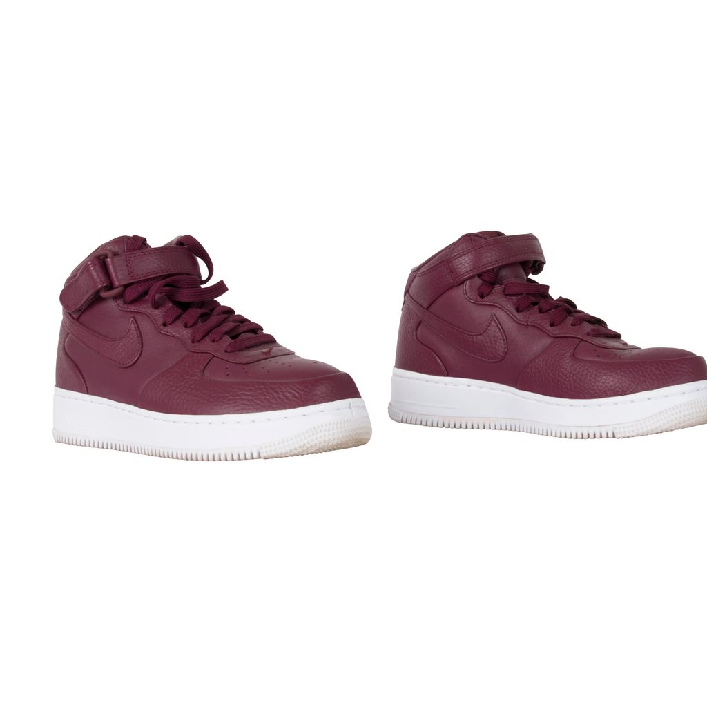 Nike’s iconic Air Force 1 Mid silhouette receives a deluxe update courtesy of the perennially-experimental NikeLab. Premium leather adorns the sneakers’ upper, which is perched expertly atop a Nike Air-Sole for lightweight yet functional cushioning. The drop-in midsole further enhances the underfoot wellbeing, which is supported by a translucent rubber outsole with flex grooves for unparalleled flexibility and traction. Gently worn in excellent condition. Marks and scuffs as pictured.