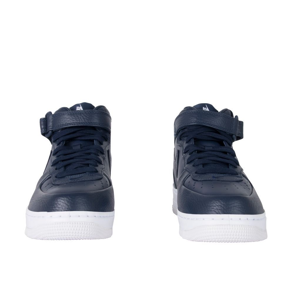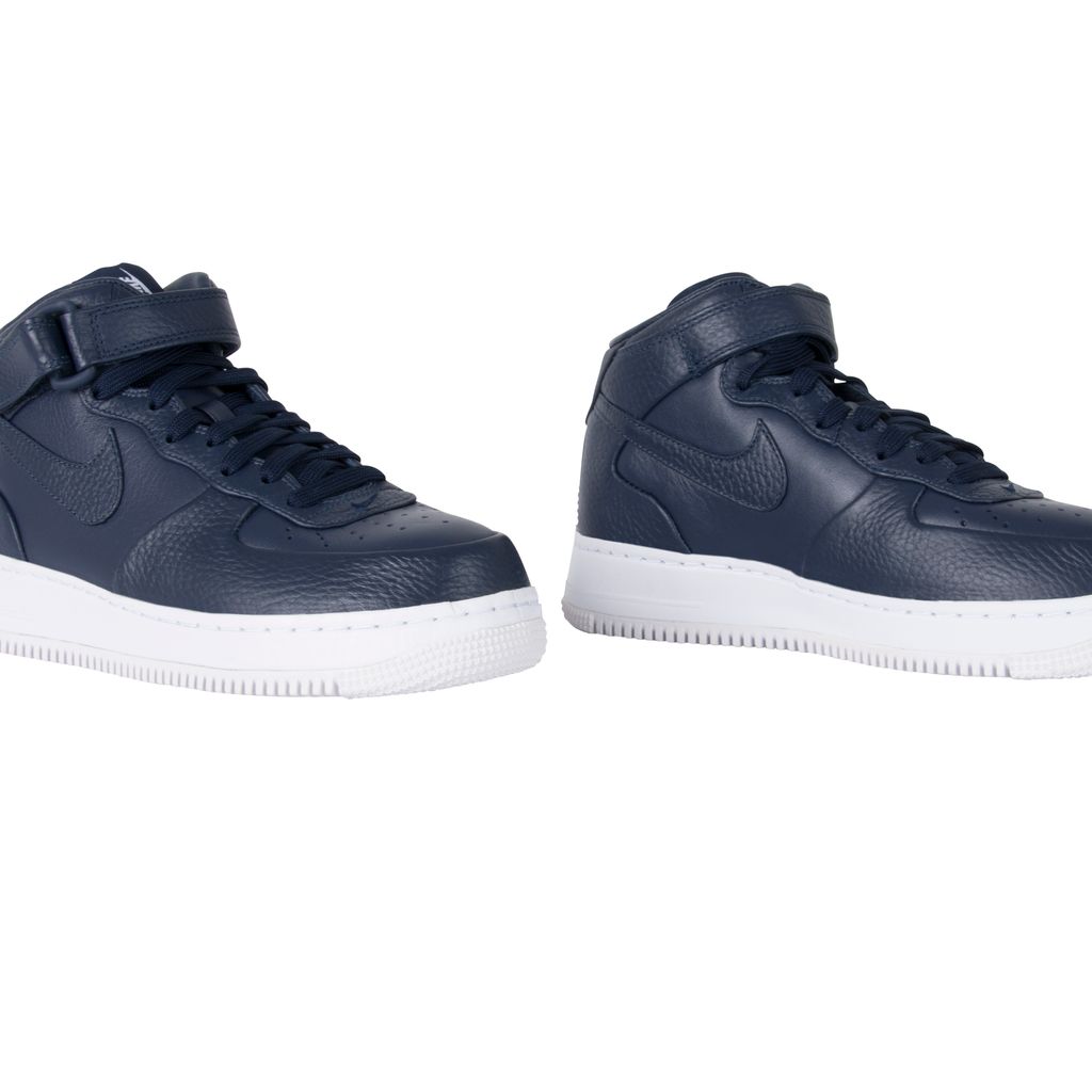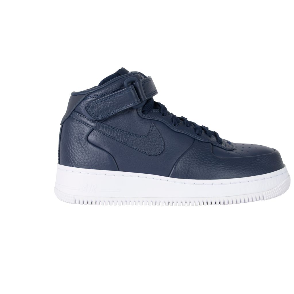 The NikeLab Air Force 1 Mid sneaker, unveiled in January 2016, brings rich, premium leather to update the coveted classic. This variation of the AF1 was designed by NikeLab, in 2014. This model was released as one of five colorways, each with a mix of smooth and pebbled leather, a tuck and seam construction, and a leather-wrapped midsole. In excellent condition comes in original packaging.