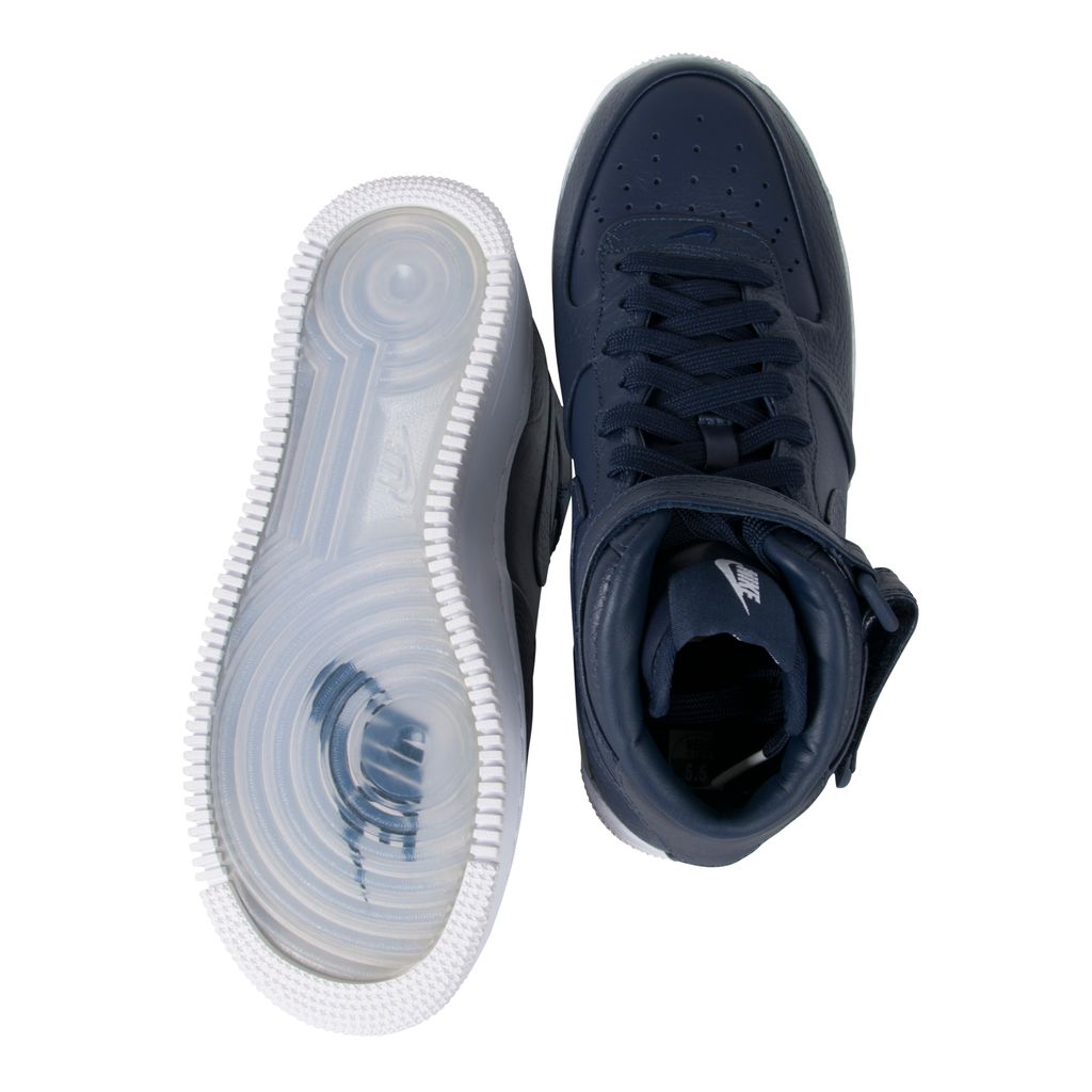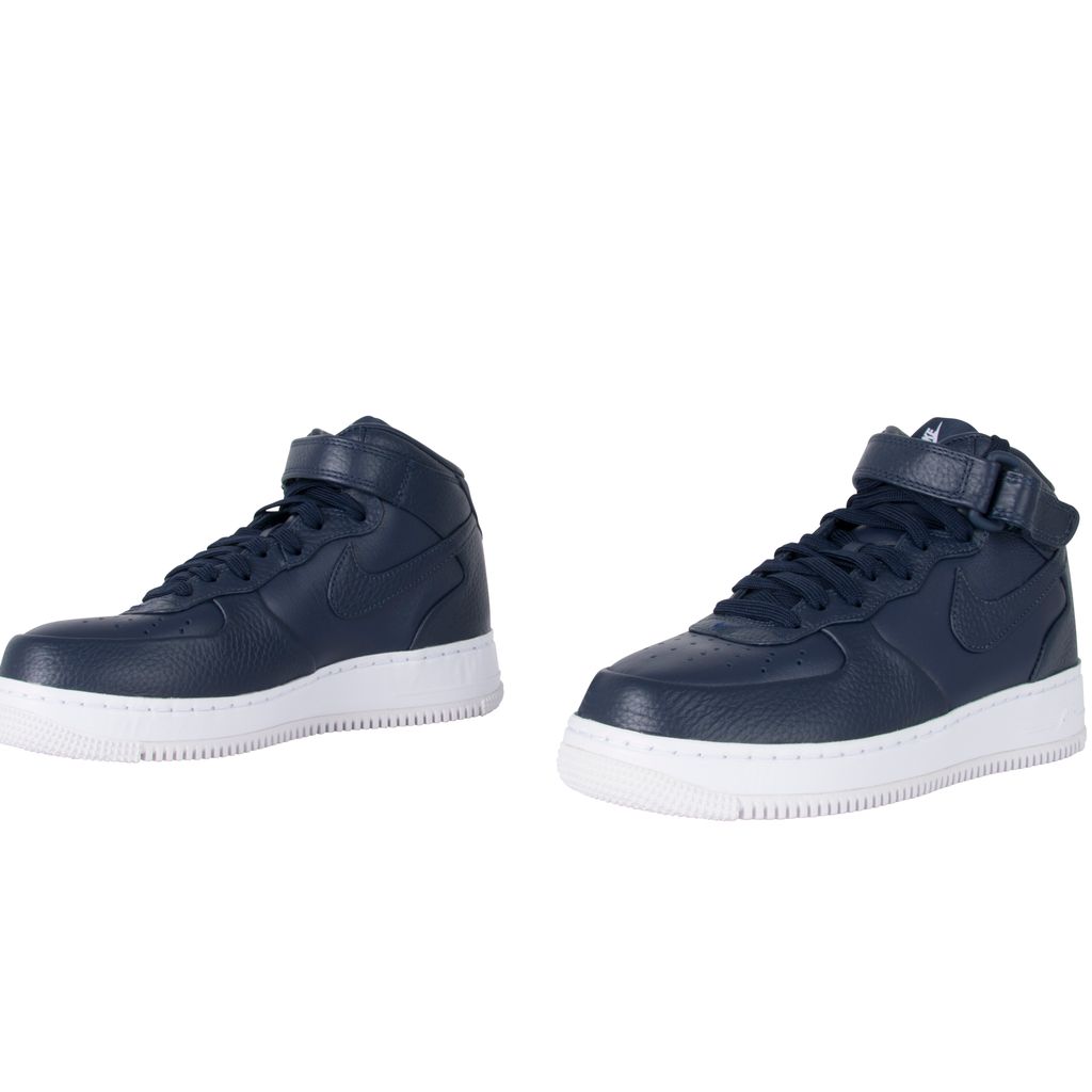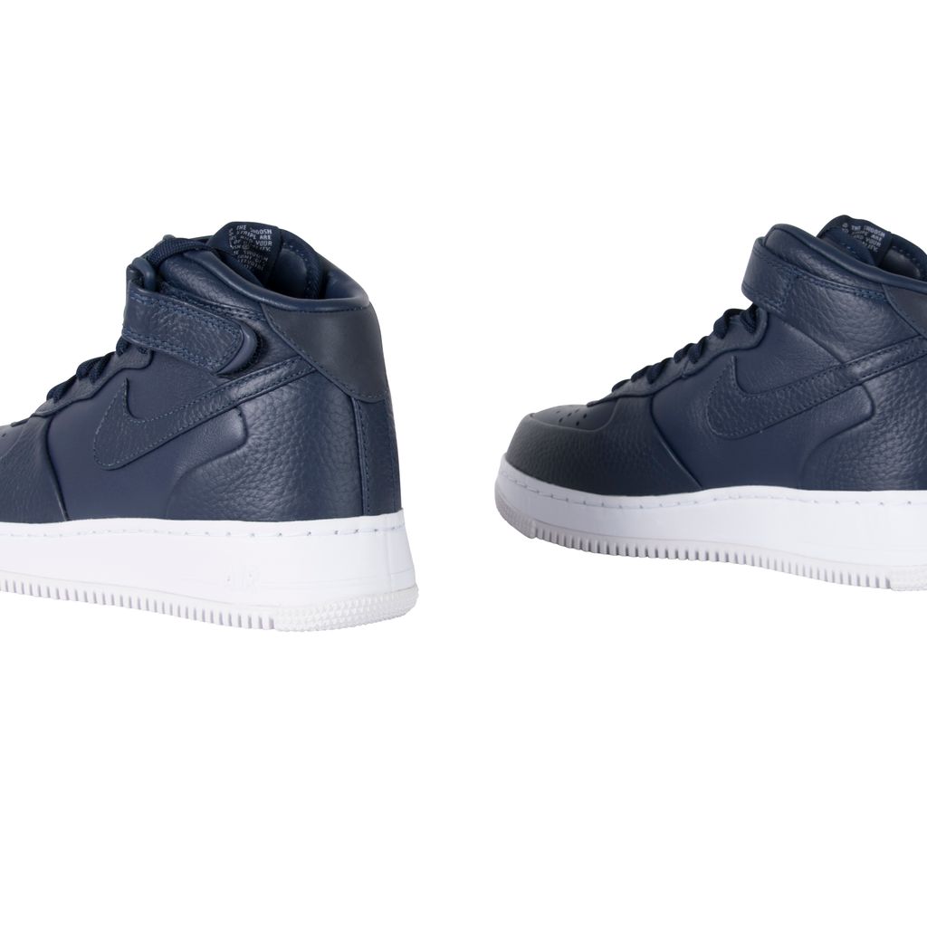 The NikeLab Air Force 1 Mid sneaker, unveiled in January 2016, brings rich, premium leather to update the coveted classic. This variation of the AF1 was designed by NikeLab, in 2014. This model was released as one of five colorways, each with a mix of smooth and pebbled leather, a tuck and seam construction, and a leather-wrapped midsole. In excellent condition comes in original packaging.