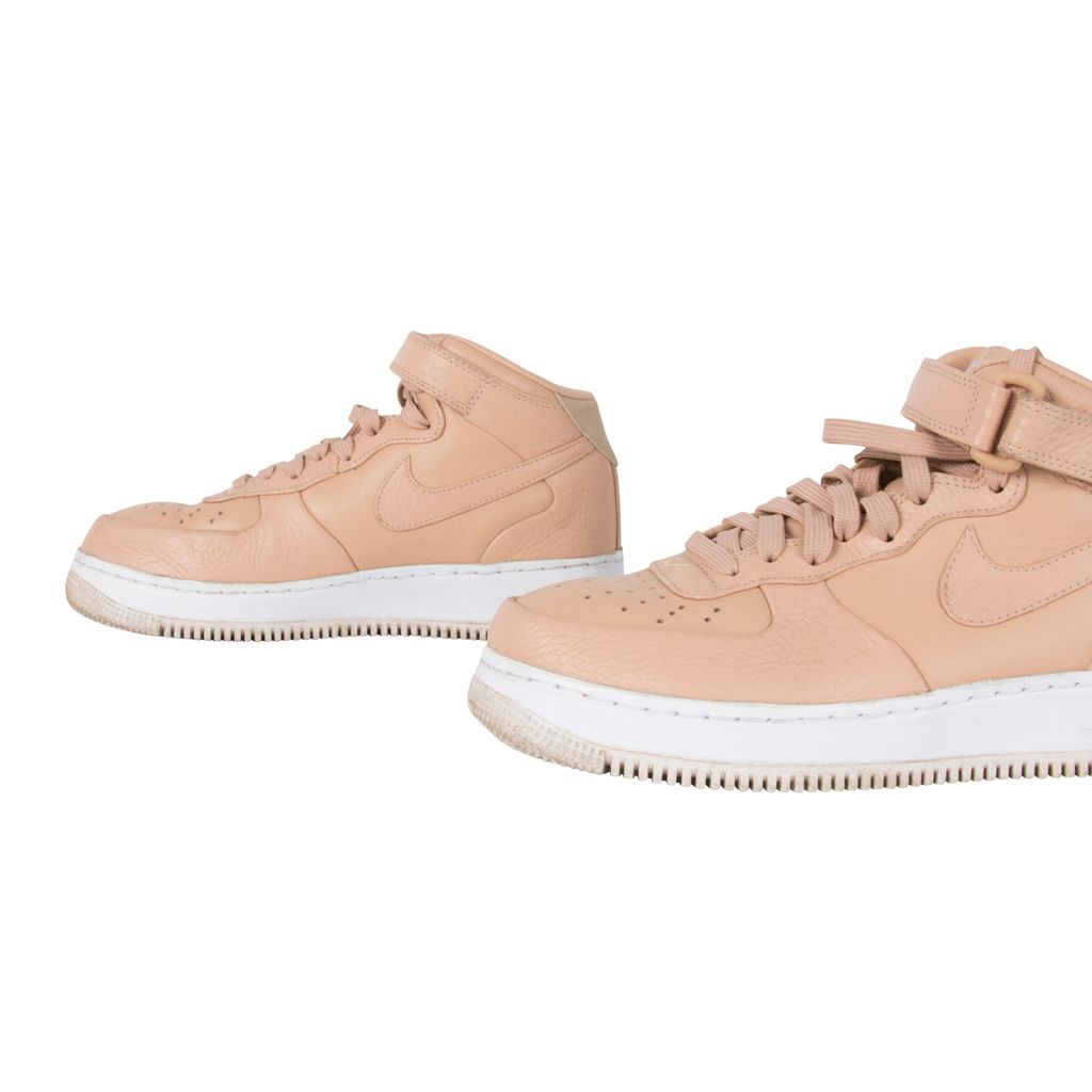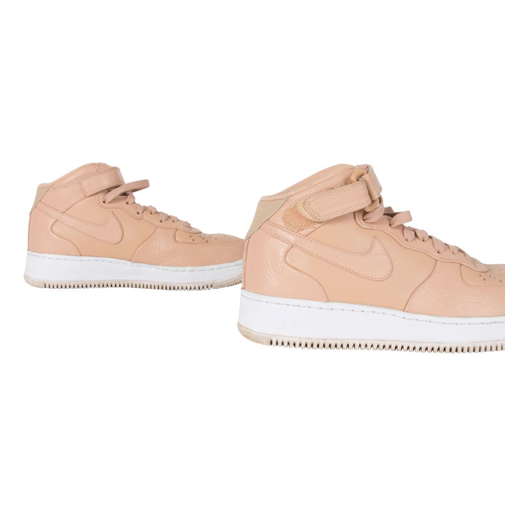 Nike’s iconic Air Force 1 Mid silhouette receives a deluxe update courtesy of the perennially-experimental NikeLab. Premium leather adorns the sneakers’ upper, which is perched expertly atop a Nike Air-Sole for lightweight yet functional cushioning. The drop-in midsole further enhances the underfoot wellbeing, which is supported by a translucent rubber outsole with flex grooves for unparalleled flexibility and traction. Gently worn in good condition. Marks and scuffs as pictured.