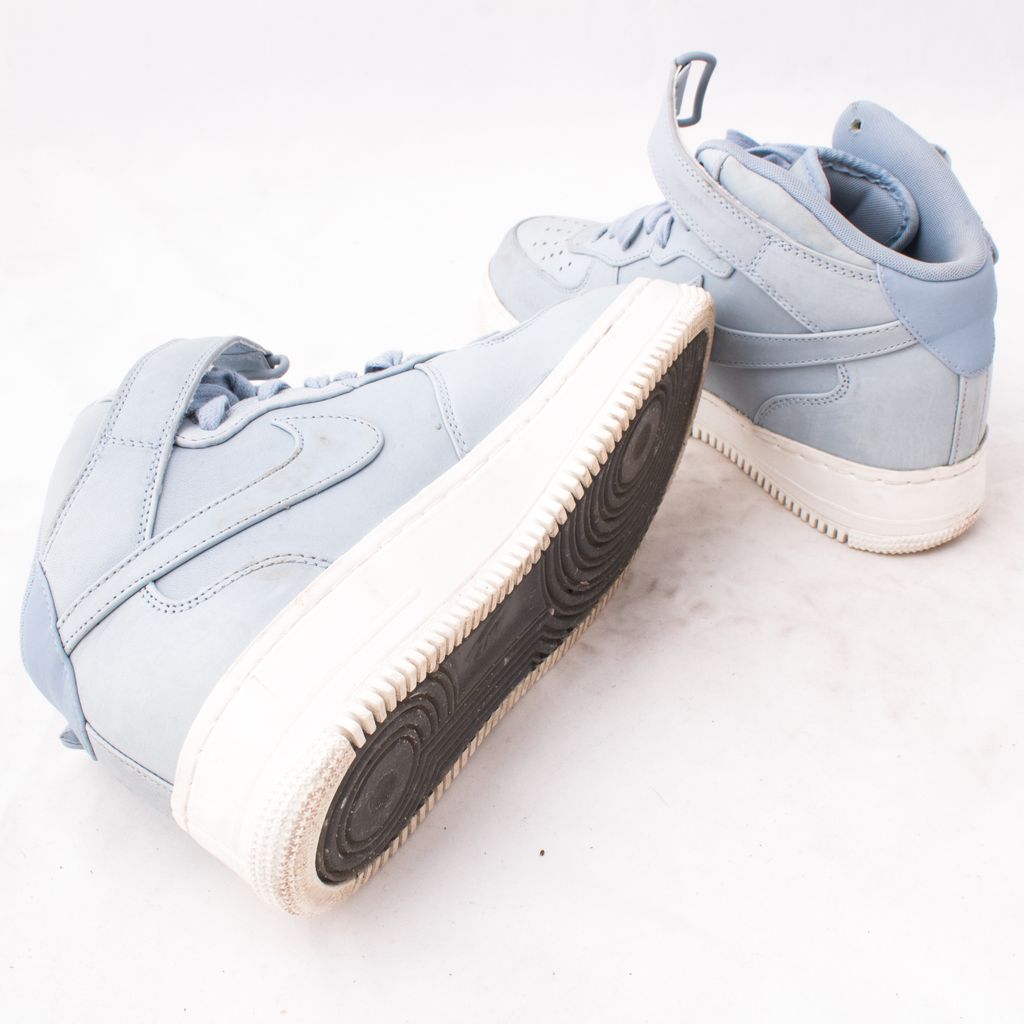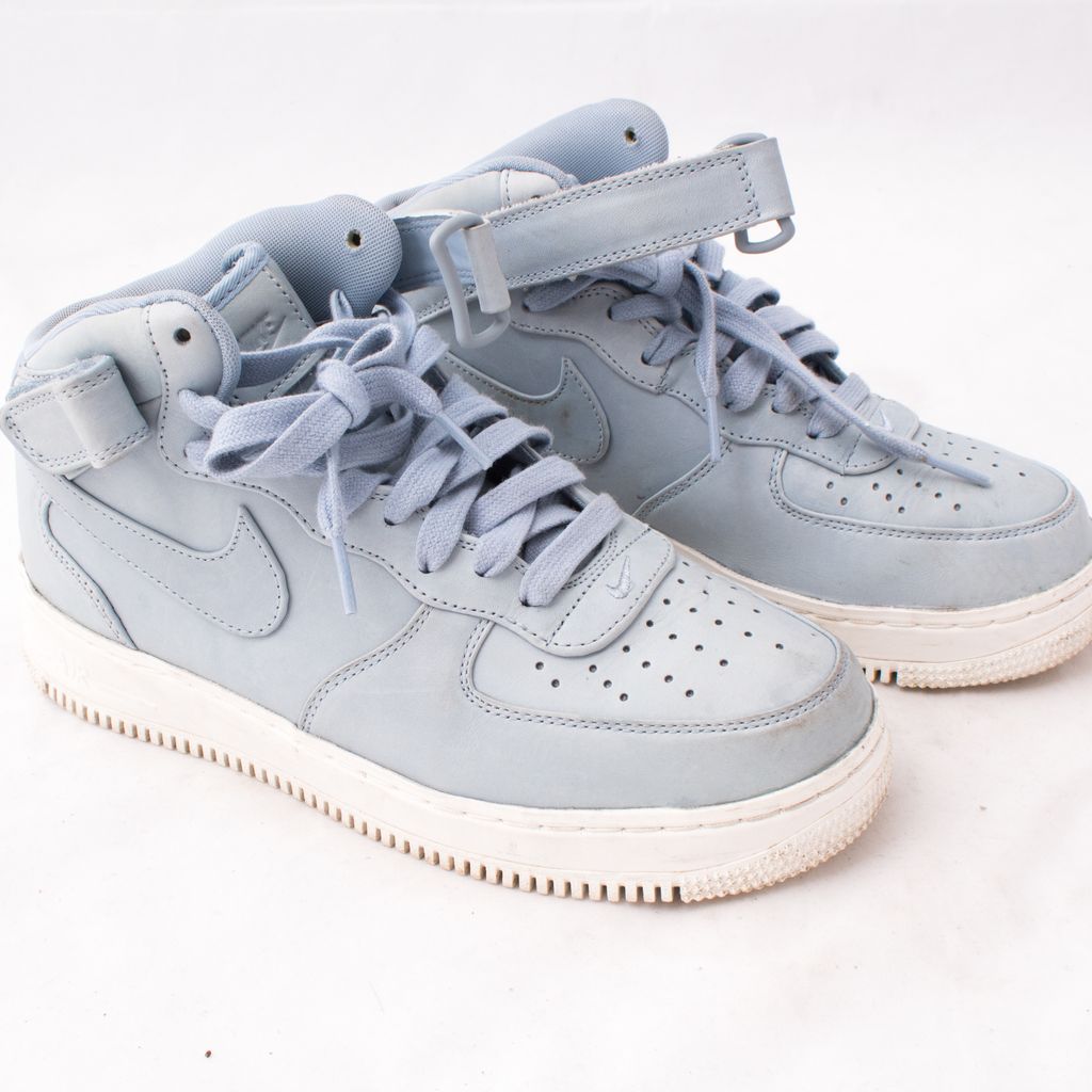 Nikelab AF1 Mid, gently worn, in blue grey color way with white sole, photos included to show signs of wear.