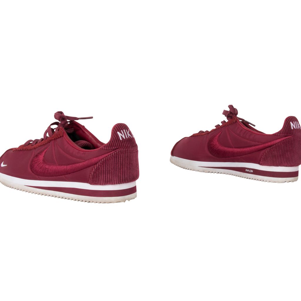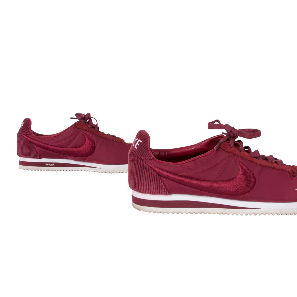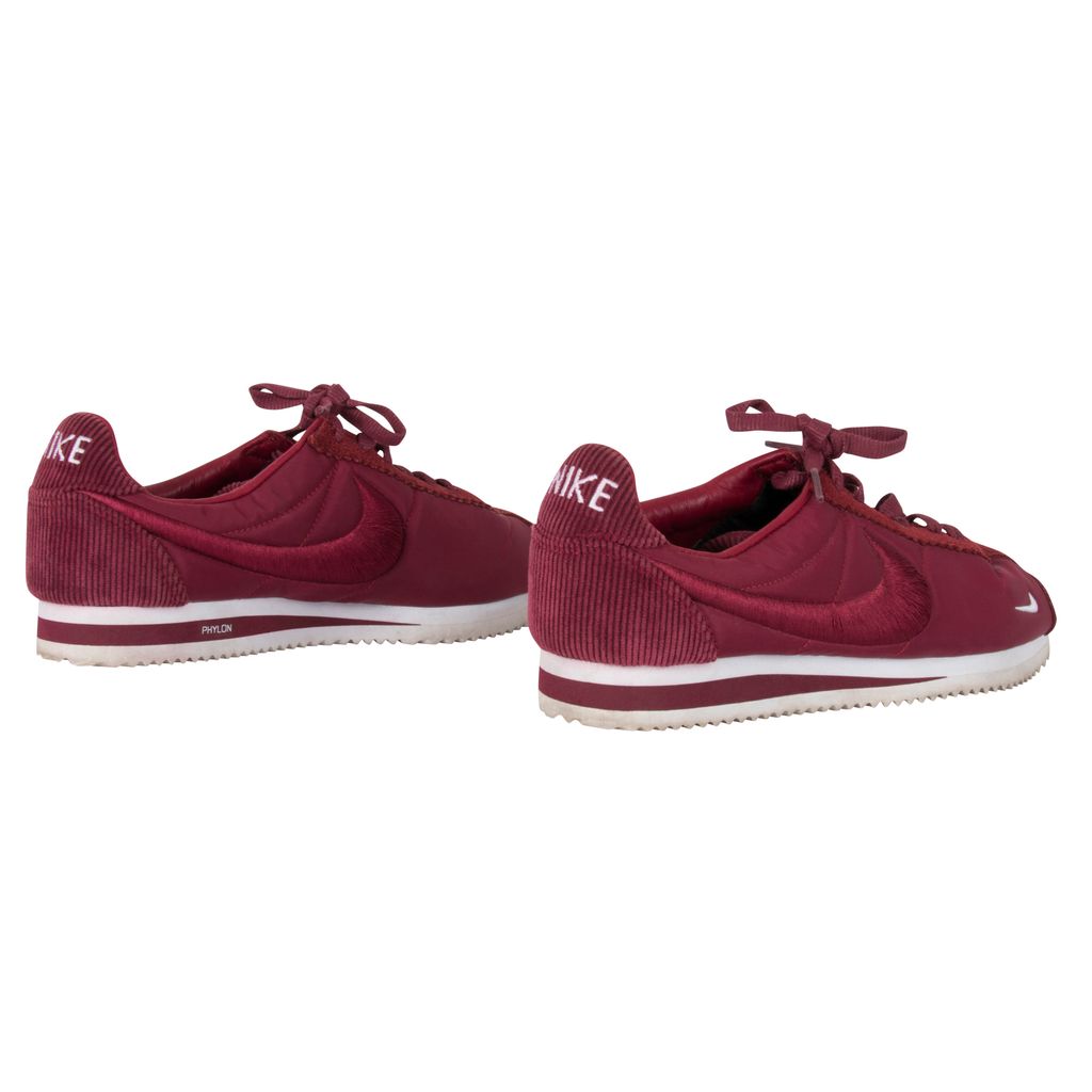 Paying tribute to Bill Bowerman’s experimentation in sneaker design and the birth of visible innovation, the Nike Classic Cortez stays true to the original track shoe with upgrades from NikeLab including luxurious textures and materials. The nylon upper features suede and corduroy enhancements for a premium look, with a super-sized embroidered Swoosh for extra pop, plus leather-lined tongue and sockliner for a smooth finish. Gently worn, in good condition.