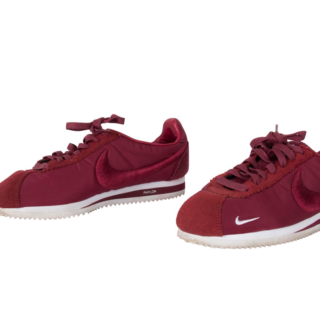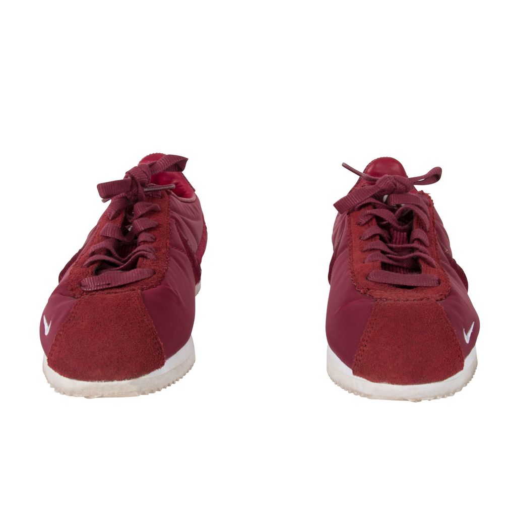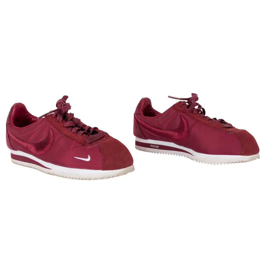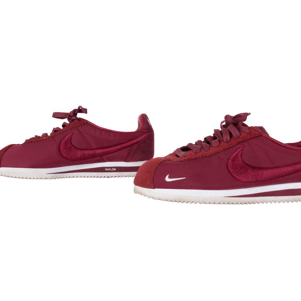 Paying tribute to Bill Bowerman’s experimentation in sneaker design and the birth of visible innovation, the Nike Classic Cortez stays true to the original track shoe with upgrades from NikeLab including luxurious textures and materials. The nylon upper features suede and corduroy enhancements for a premium look, with a super-sized embroidered Swoosh for extra pop, plus leather-lined tongue and sockliner for a smooth finish. Gently worn, in good condition.