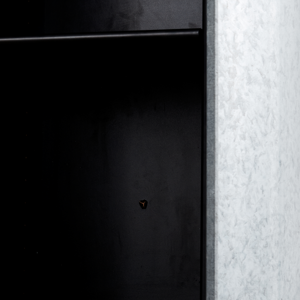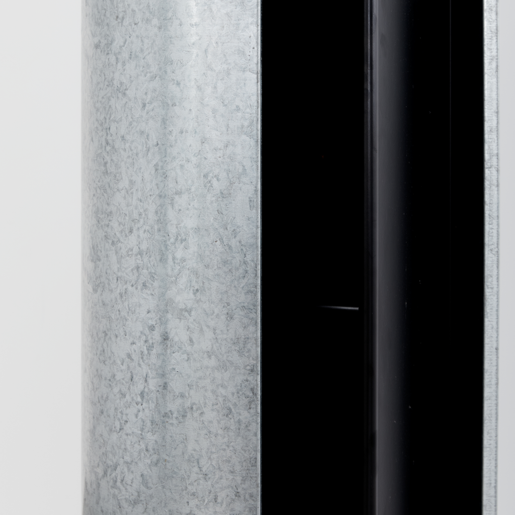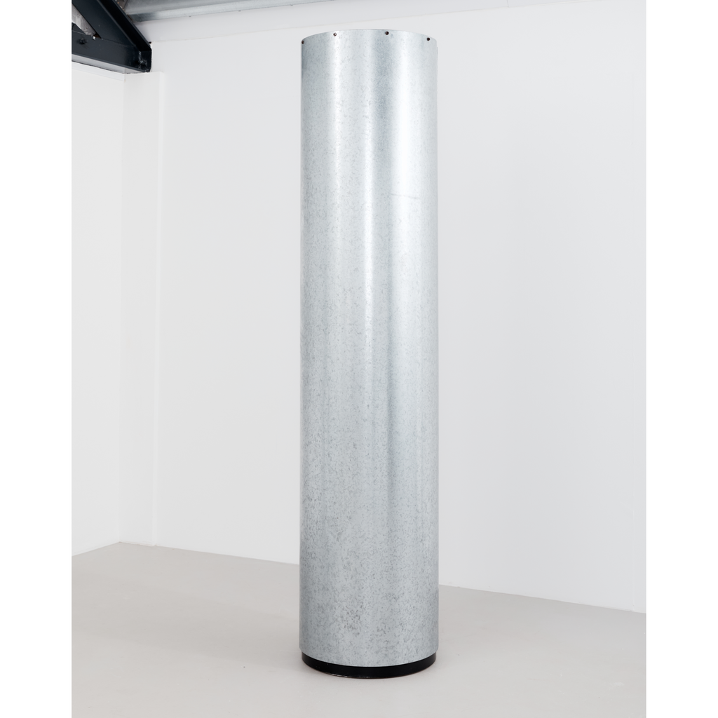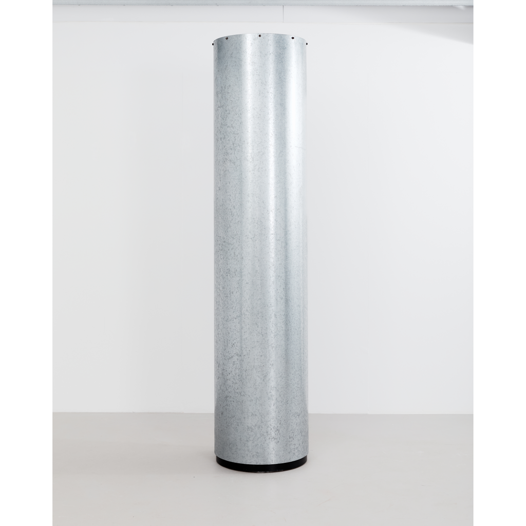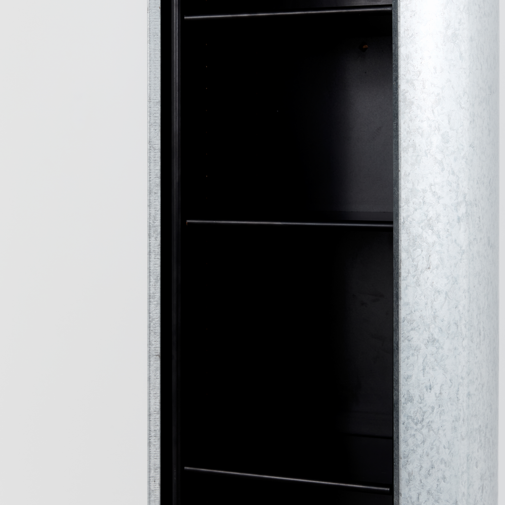 No. 13 pillar cabinet in galvanised steel by Hans Eichenberger for Swiss manufacturer, Wogg. Designed in 1994, this design classic cylinder shelving unit features adjustable shelves and distinctive rotating magnetic outer shell that slides around the fixed interior, giving you the option of discreet display.