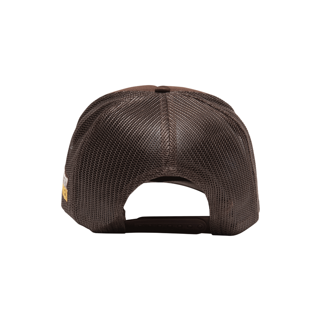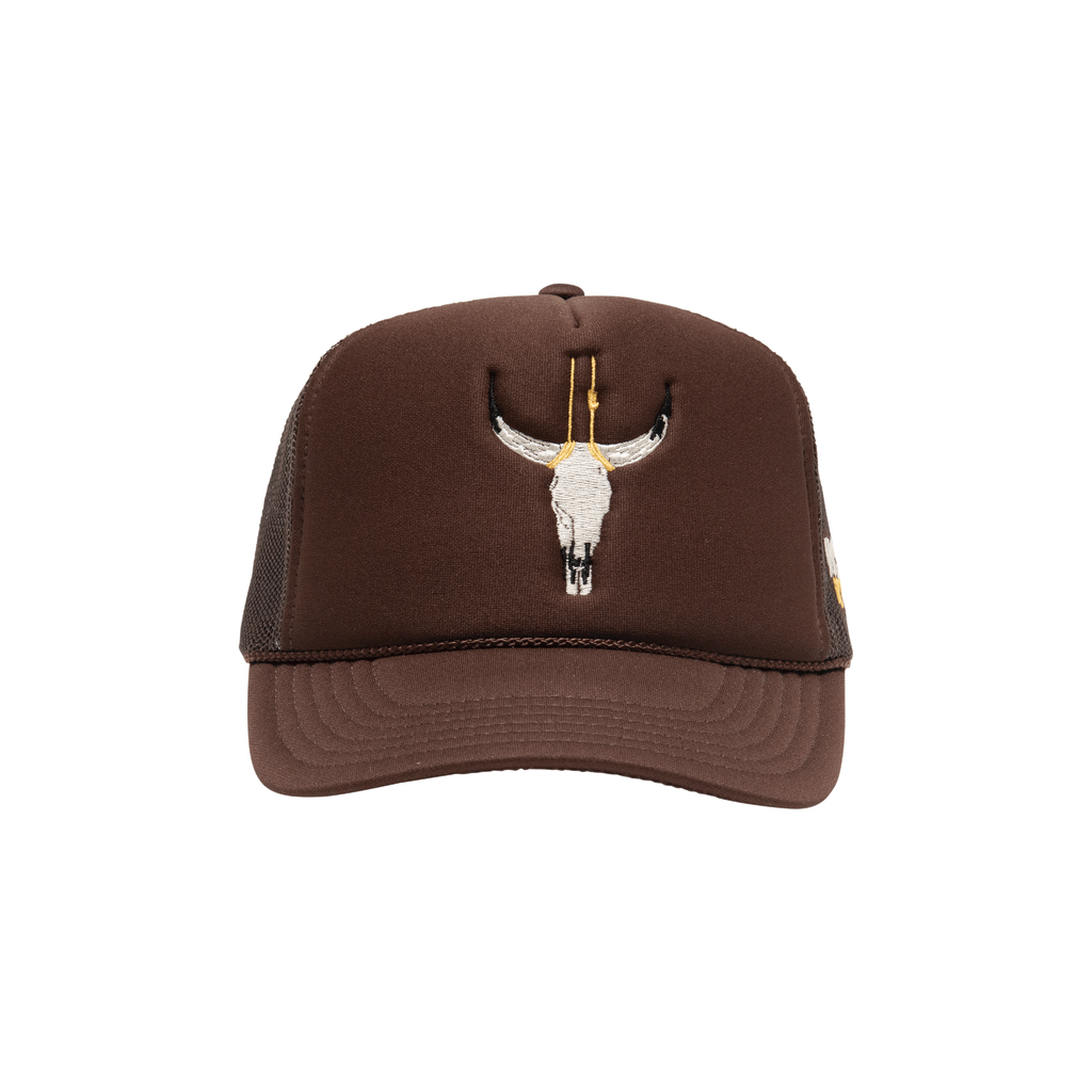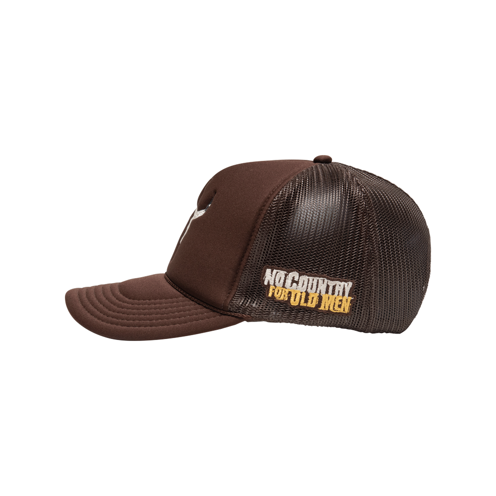 No Country For Old Men Tucker Hat features embroidered detail on the front and snap back closure.