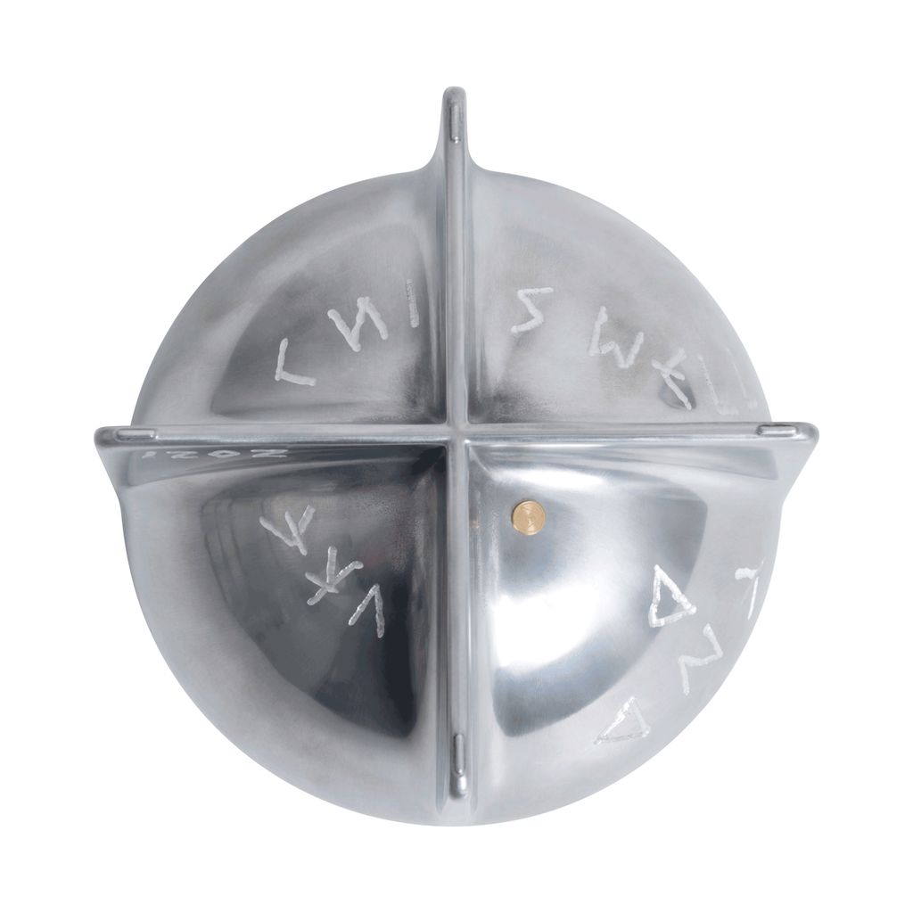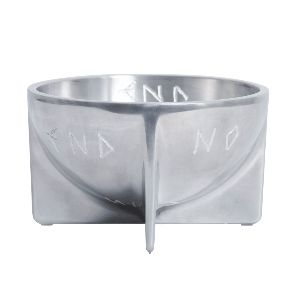 The die cast aluminum Standing Bowl is elevated off the table surface by its architecturally inspired planar legs. Each bowl is polished aluminum that is intentionally left unfinished so that it will naturally develop a patina with time and touch.