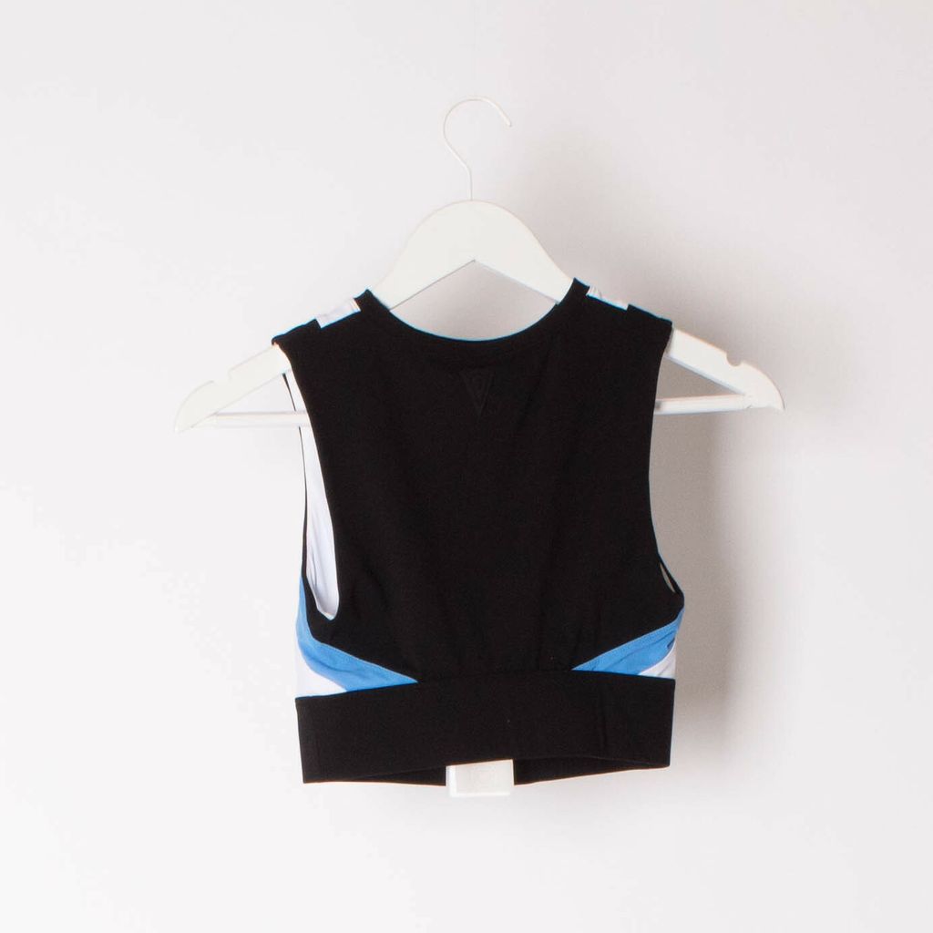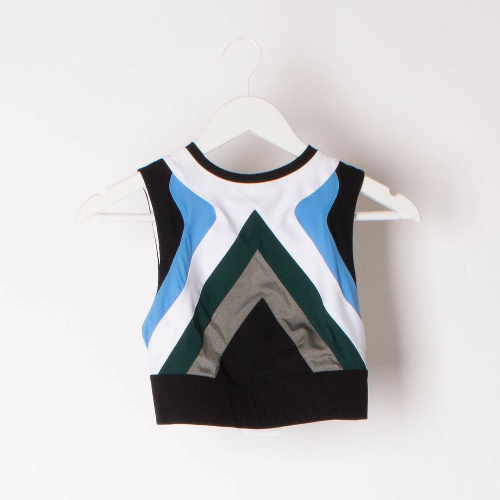 Brand new with tags, athletic bra from No Ka'Oi. Features high neck shape, color-blocked graphics, and fast-drying fabric. 55% nylon, 25% elastane, and 20% polyester.