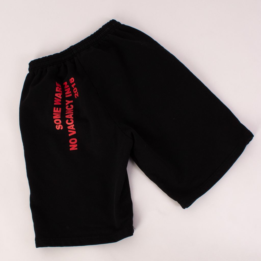 These sweatshorts from streetwear brands No Vacancy Inn and Some Ware, were made as part of a collaboration capsule to be sold exclusively through men's retailer Mr Porter. Features front and back unique screened graphics, elastic waistband, and extra long short length.