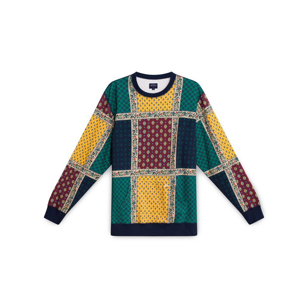 Noah NY Provence Paisley Floral Crewneck Sweatshirt features all over paisley print, font pocket, and elastic waistband.