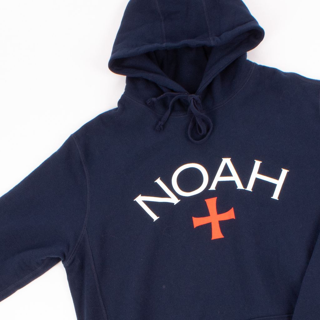 NYC brand Noah is known for their well made basics, and this pullover hoodie from them does not disappoint. Features Noah logo and text on chest, kangaroo pocket, and full hood with pull strings.