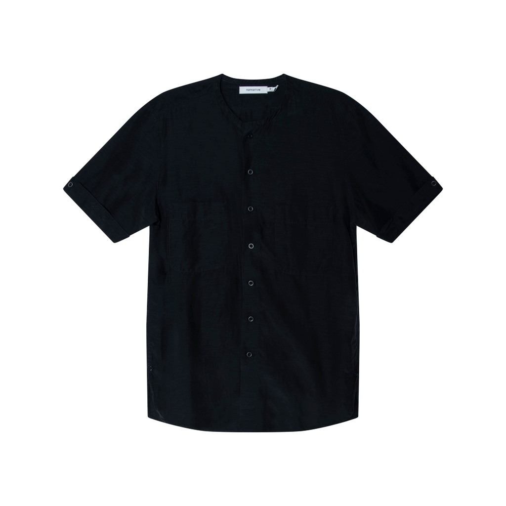 Nonnative SS Button Up features front button closure, two front pockets on the chest, and Mandarin collar.