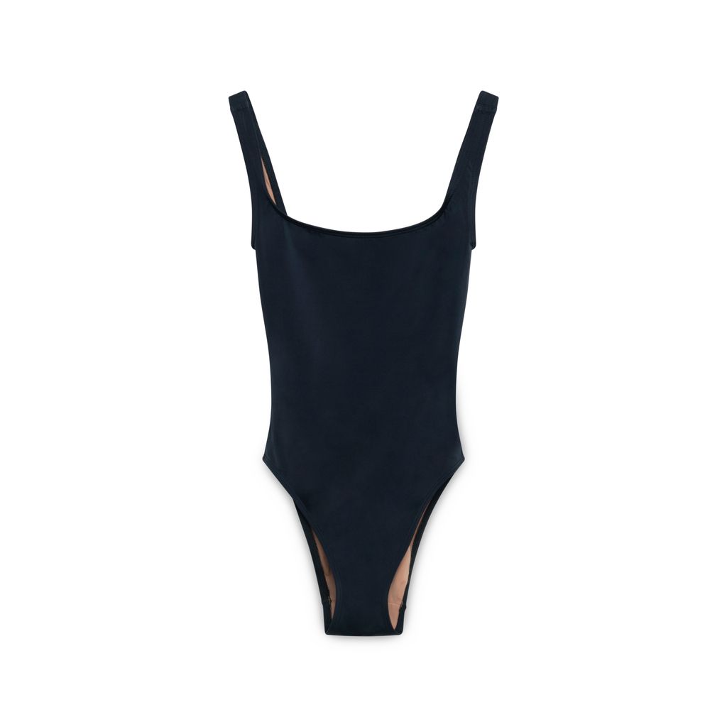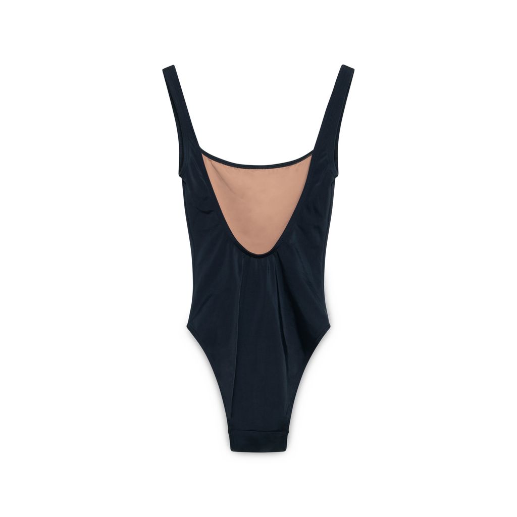 Nu Swim Black One Piece features a low back with tan inner lining.